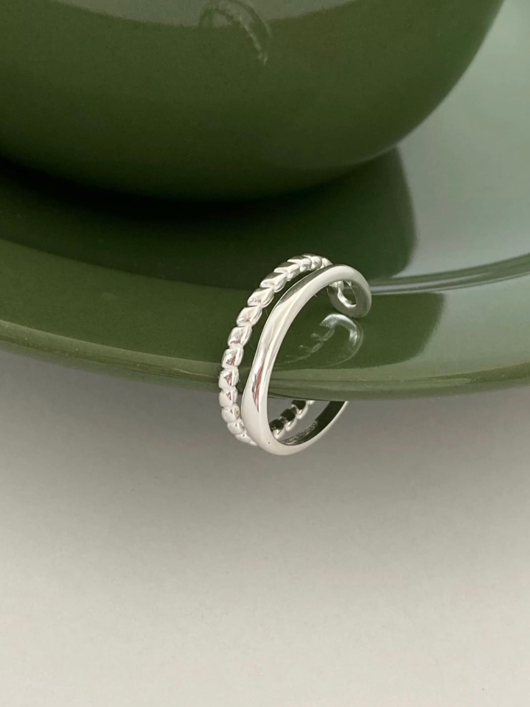 シンプルなねじりラインとウェーブ感のあるラインの組み合わせがシンプルながらも上品さを演出し、どんなスタイルにも合わせやすいアイテムです。