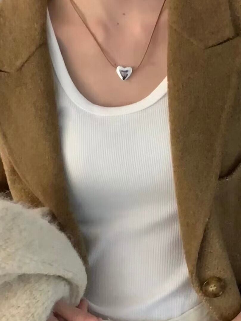 ブラウンにシルバーのハートチャームがモードな雰囲気のアイテムです。