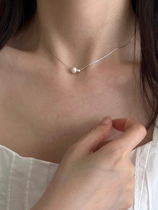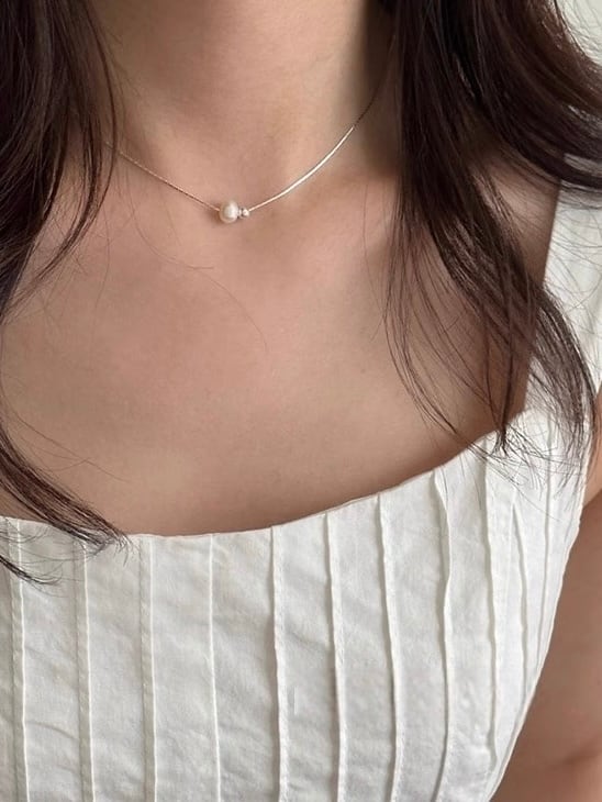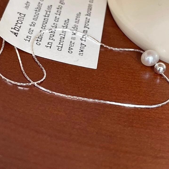 さりげないパールとシルバービーズがエレガントなネックレス。