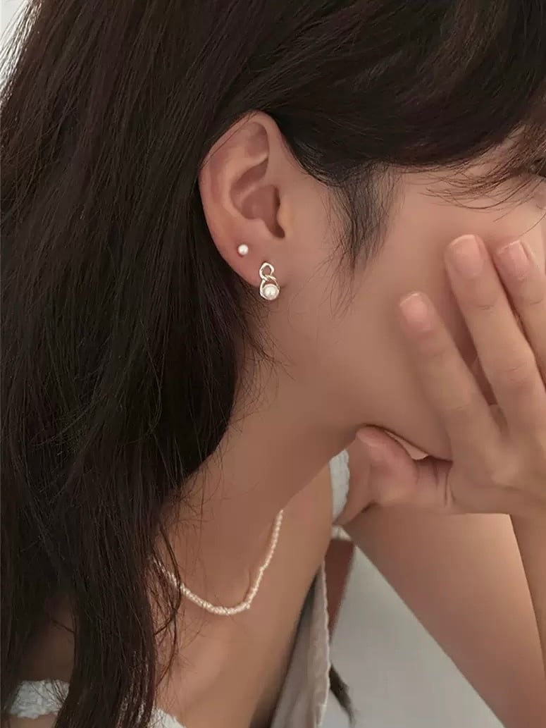 チェーンとパールの組み合わせが大人っぽいピアス。