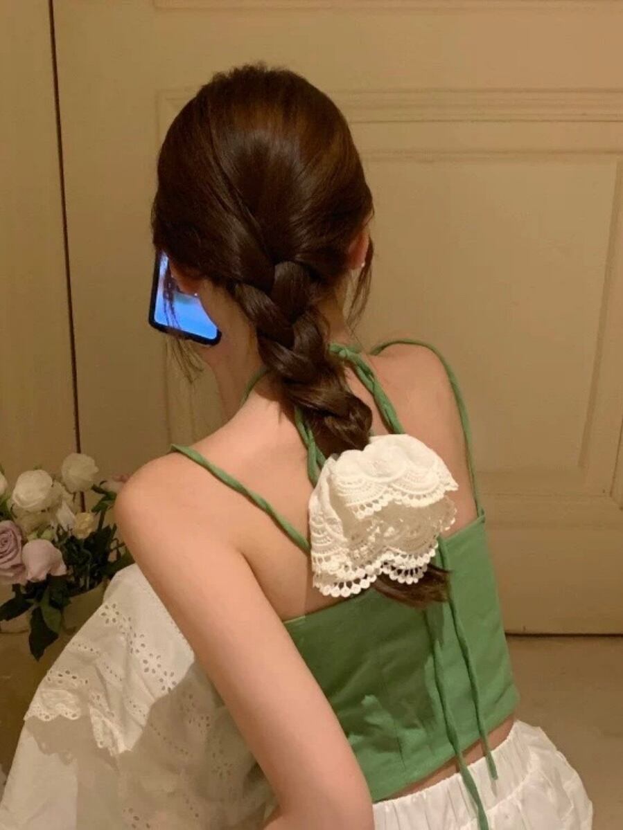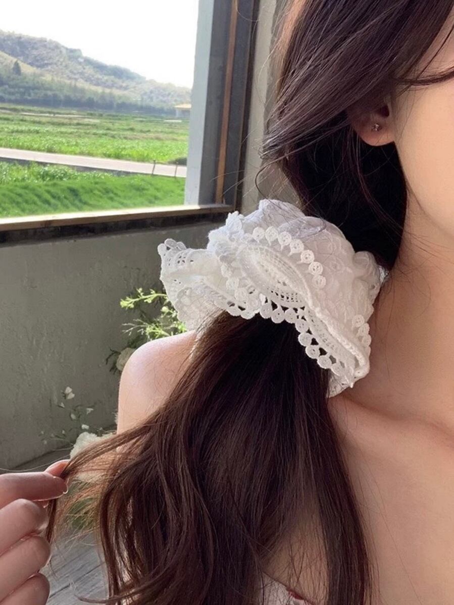 細かいレースが可愛らしいコットン素材のシュシュ。
