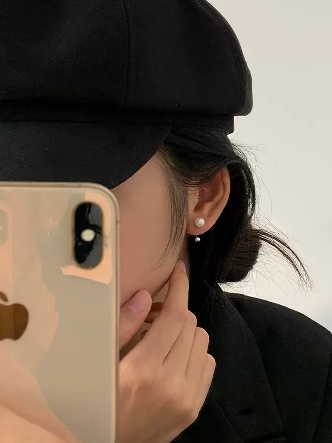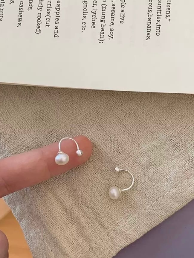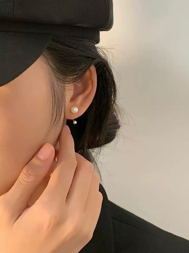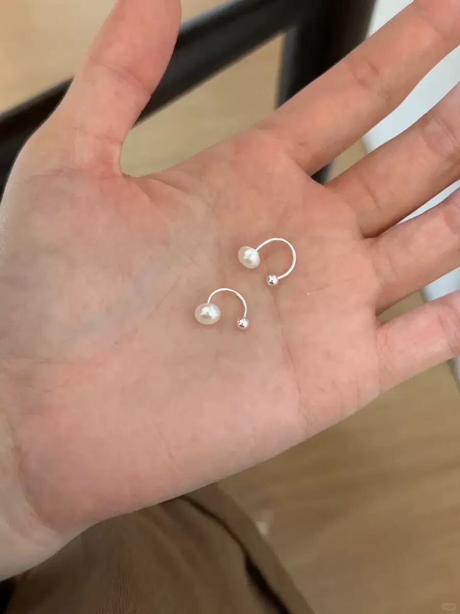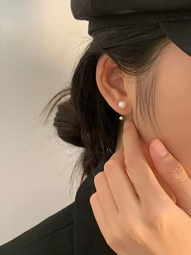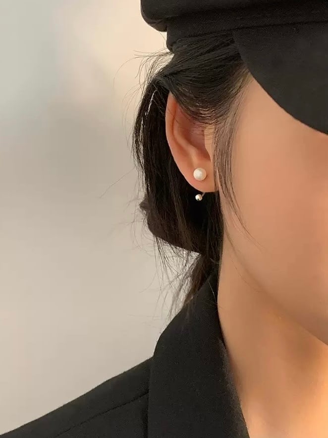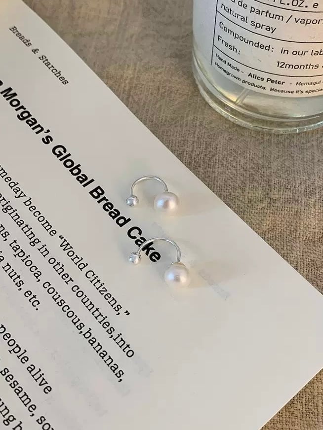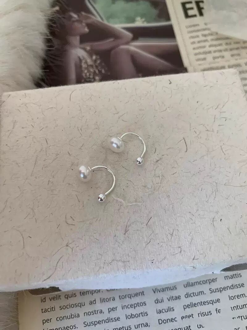 小ぶりなパールとシルバーボールが顔まわりをきれいに引き立ててくれるアイテムです。