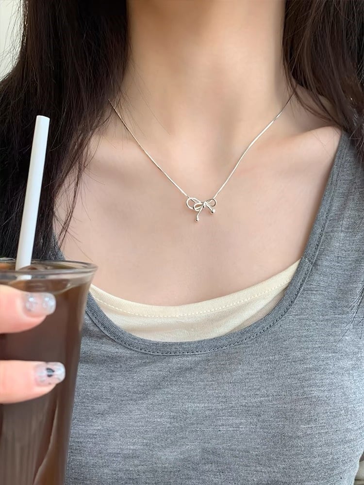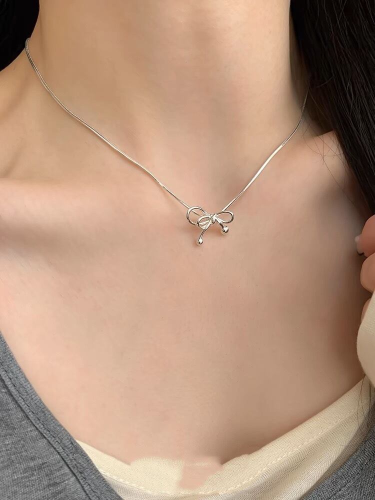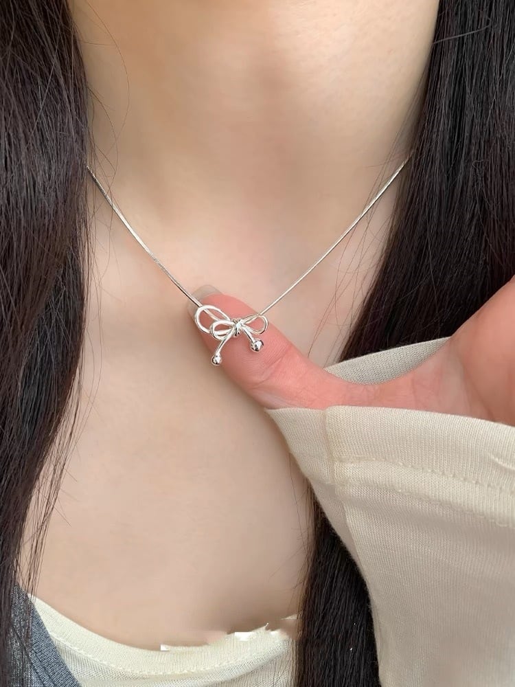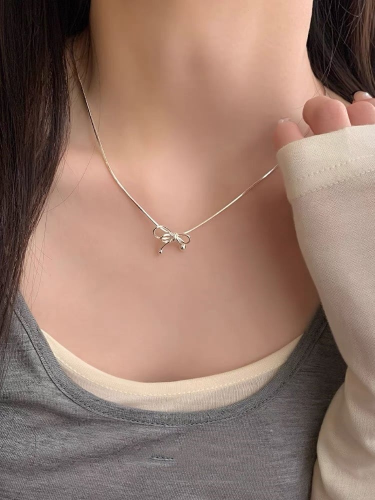 リボンが重なったようなデザインがかわいらしいネックレス。