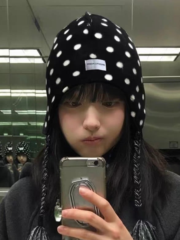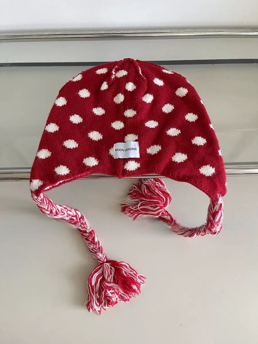 ドット柄が可愛らしく被るだけでトレンド感のあるニットビーニー。