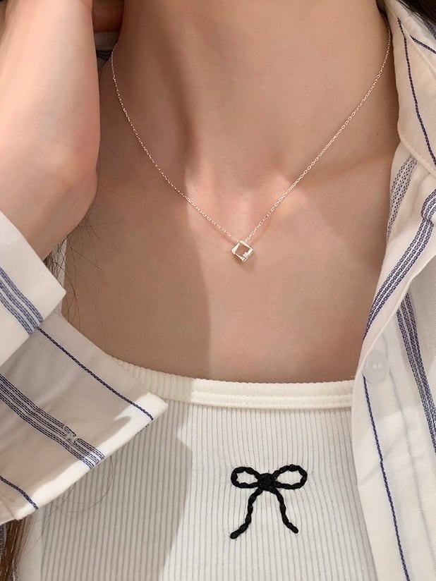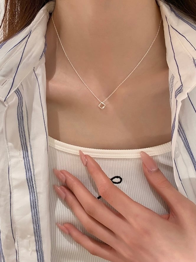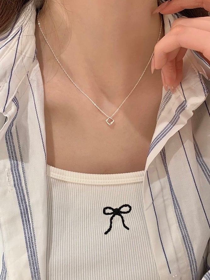 さりげないひし形のチャームが上品なネックレス。