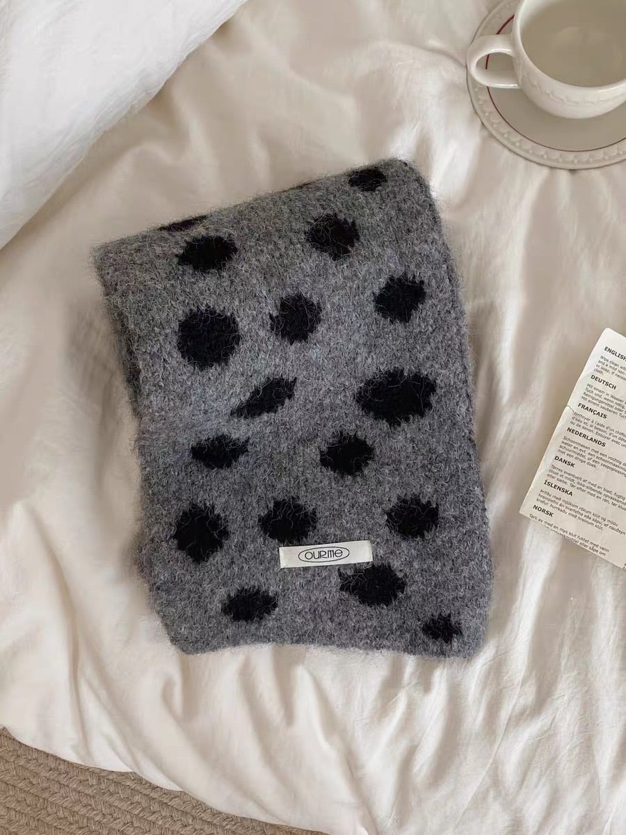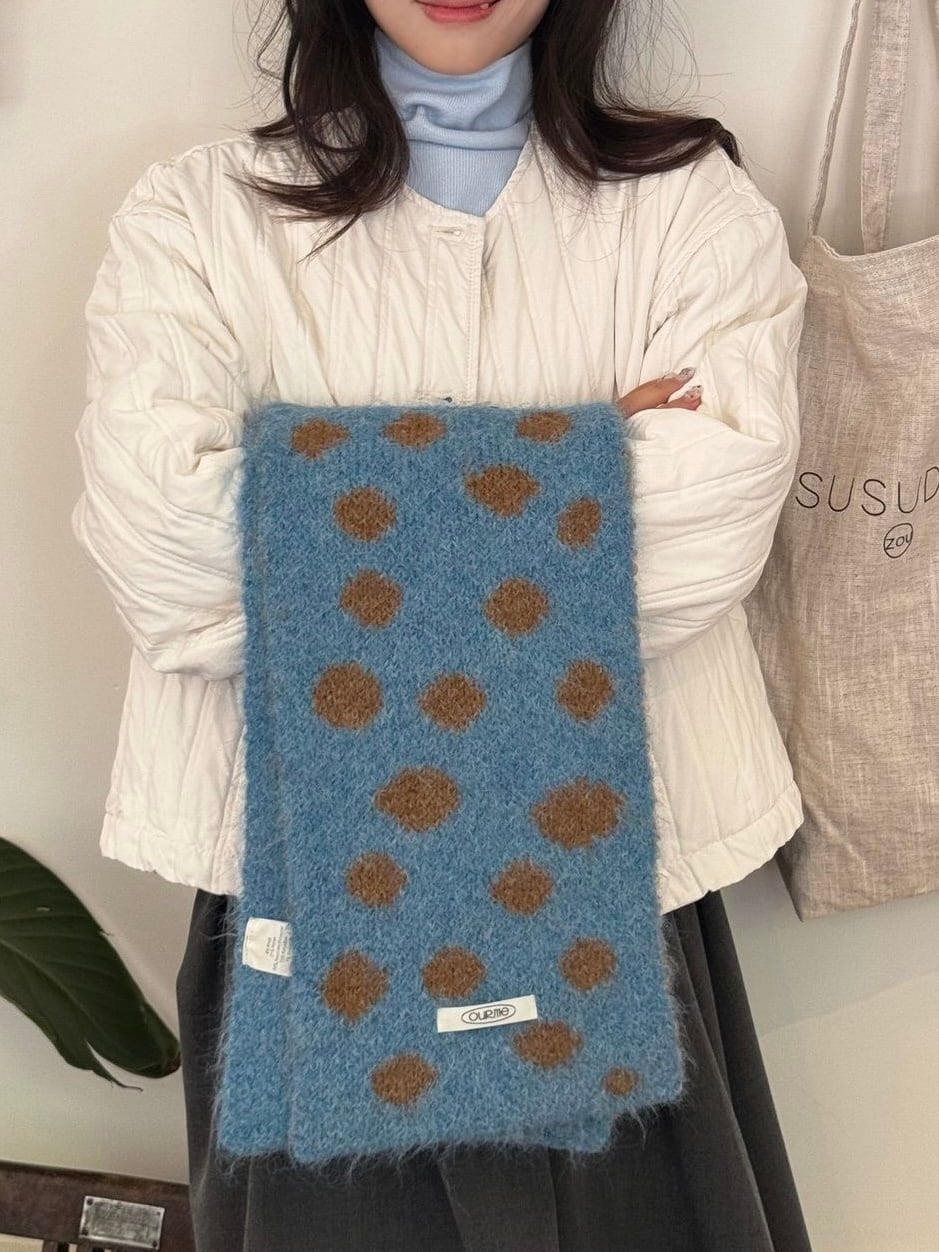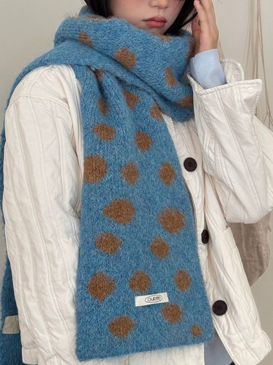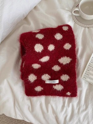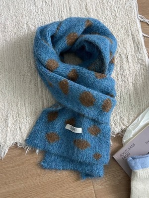 不規則な大きめのドット柄がポップで可愛らしいマフラー。