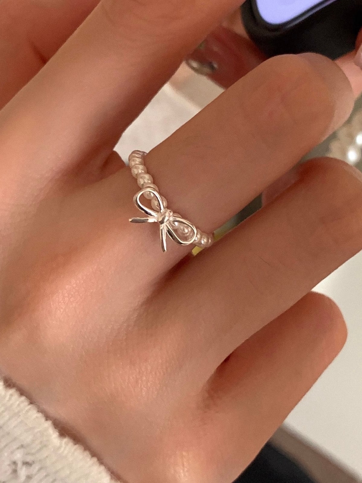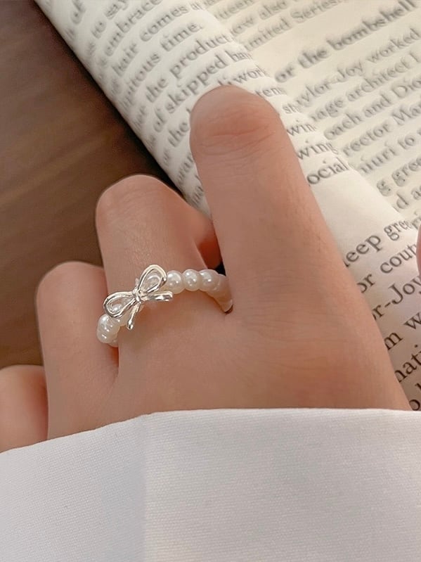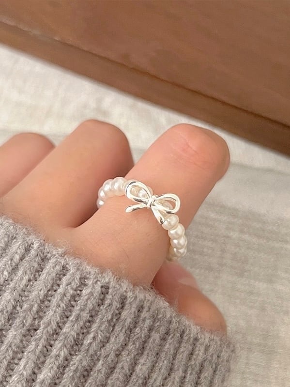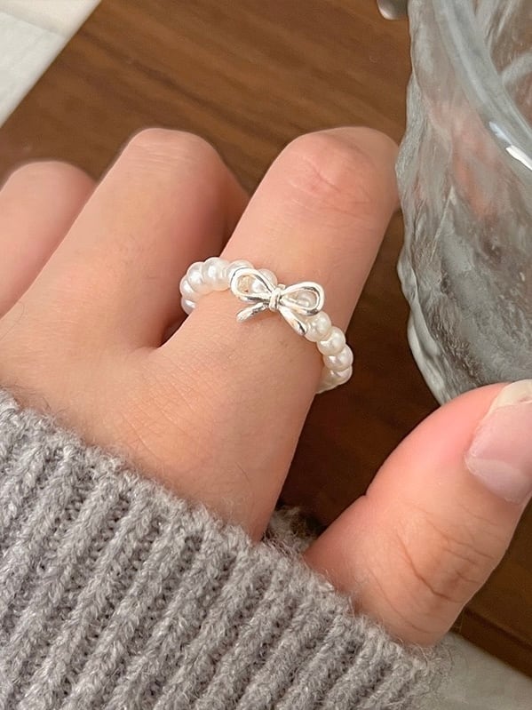 シルバーリボンのモチーフがポイントのリング。