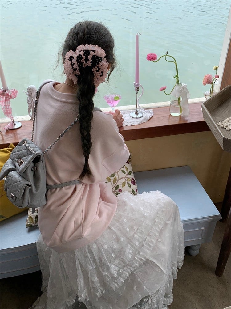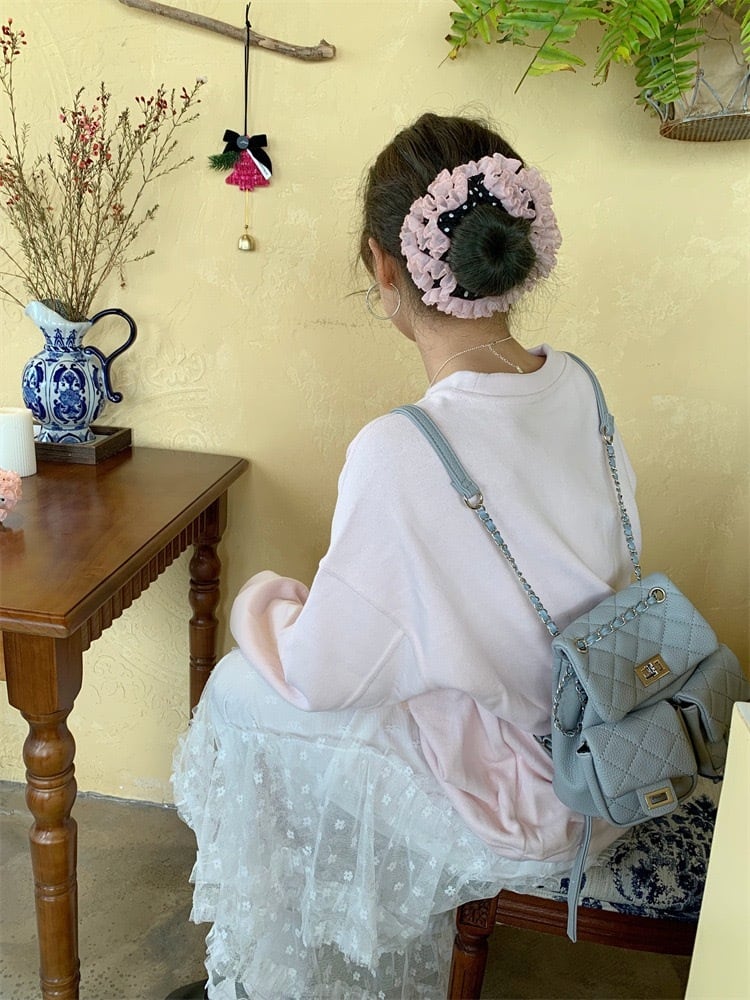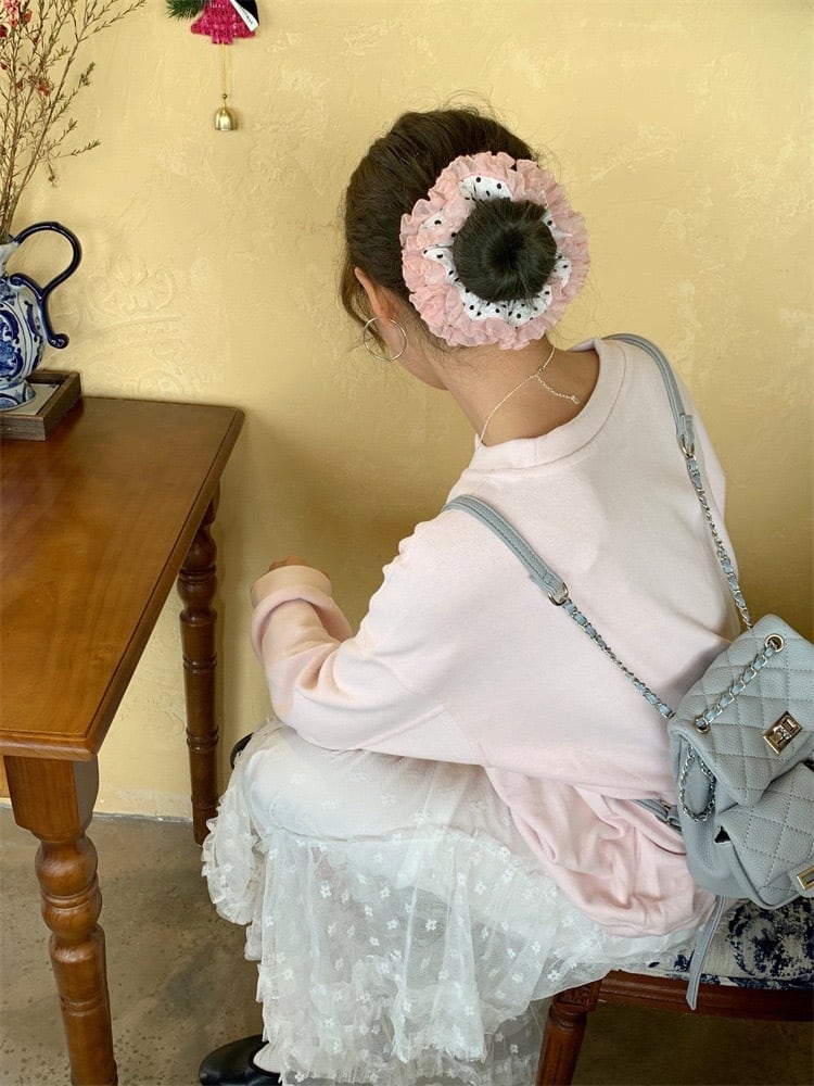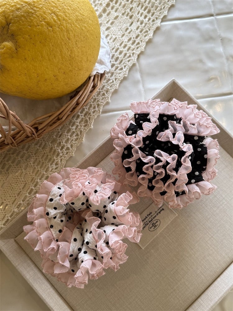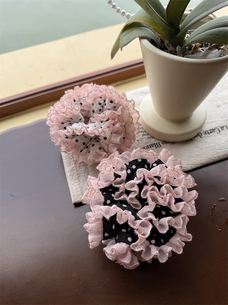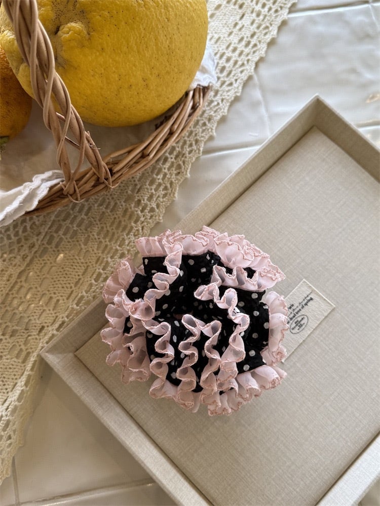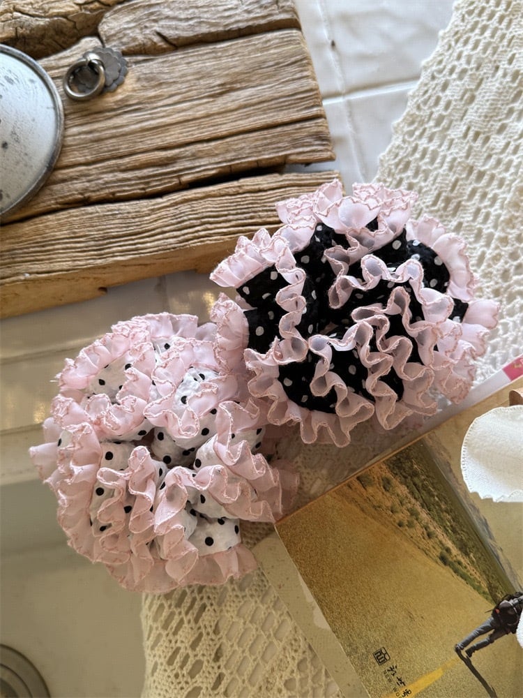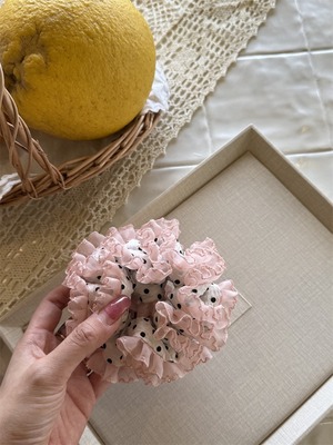 ドットとレースの組み合わせがガーリーなシュシュ。