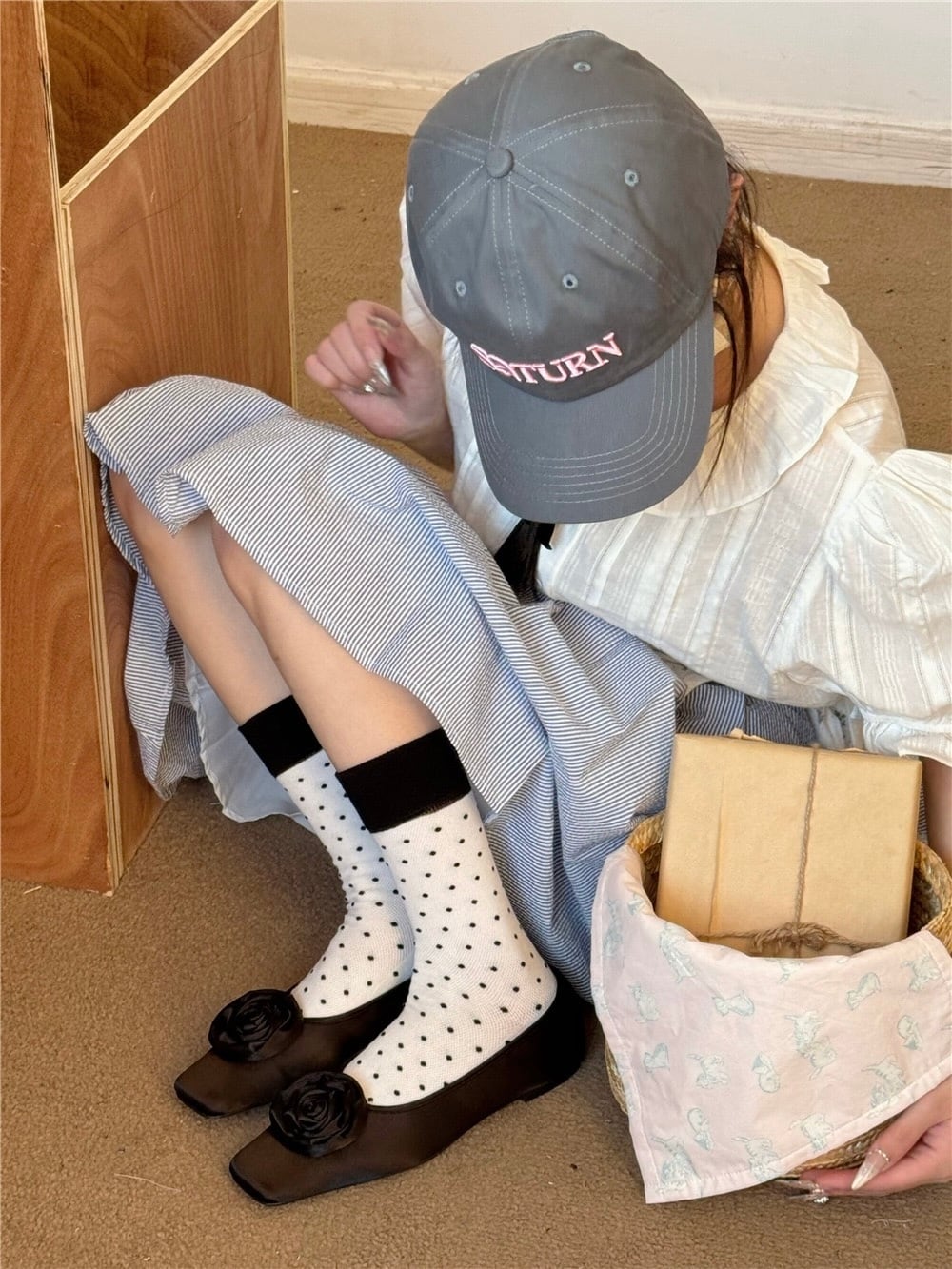 ドット柄が可愛らしくさりげないポイントになるアイテムです。