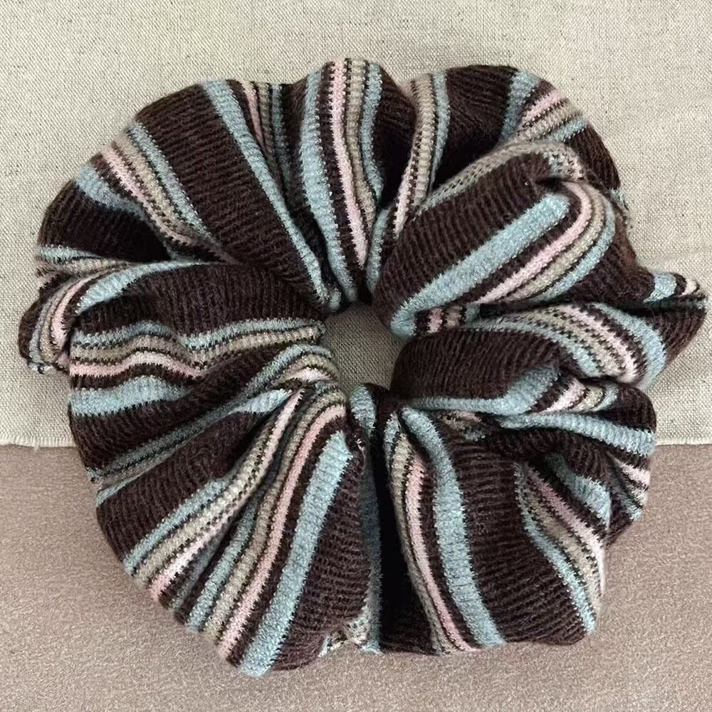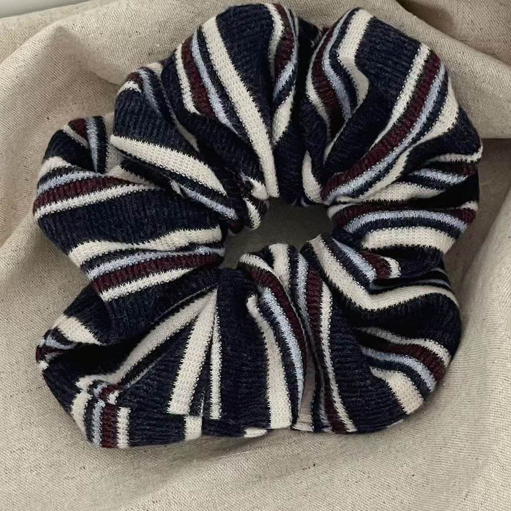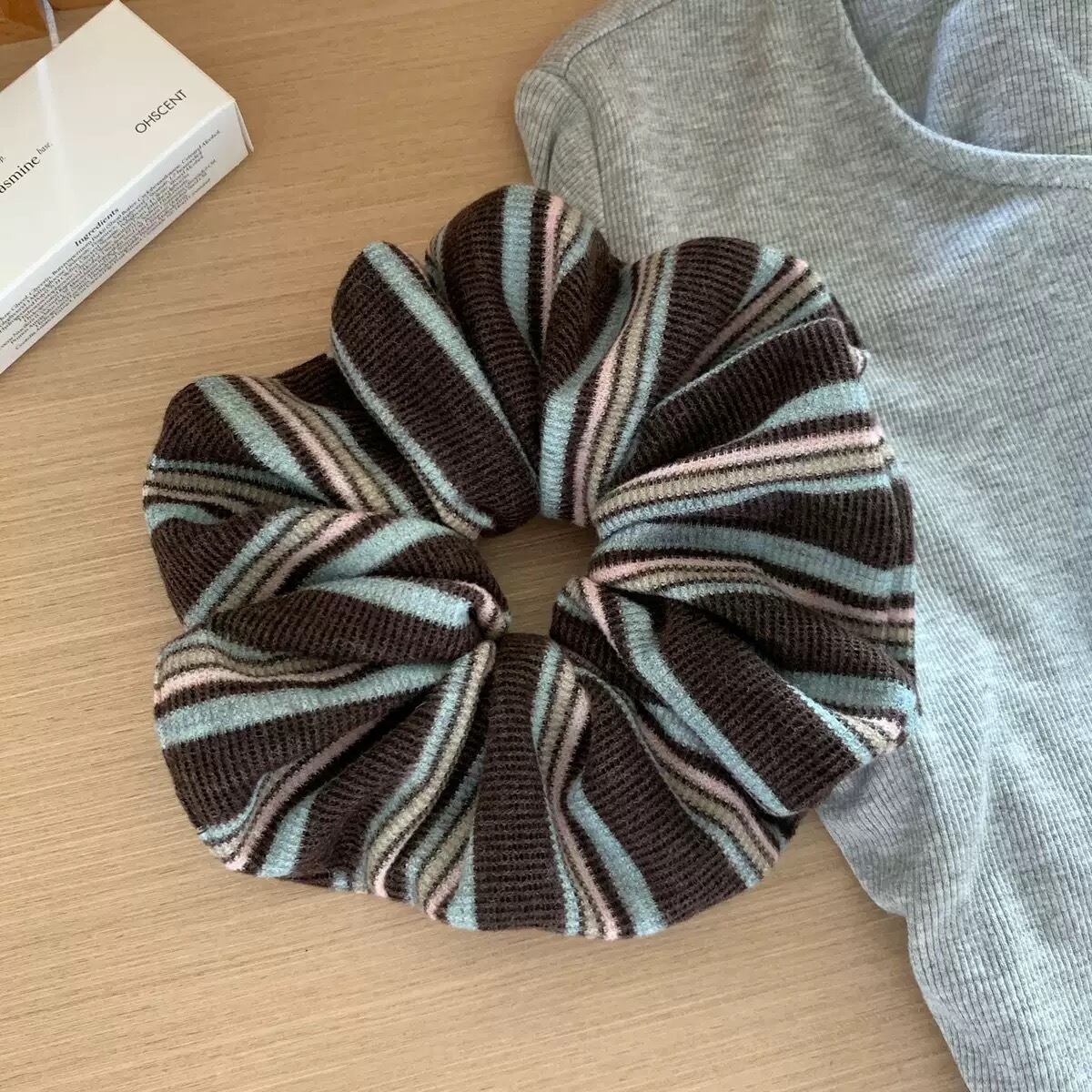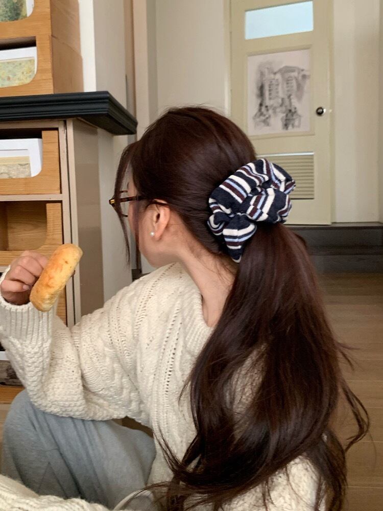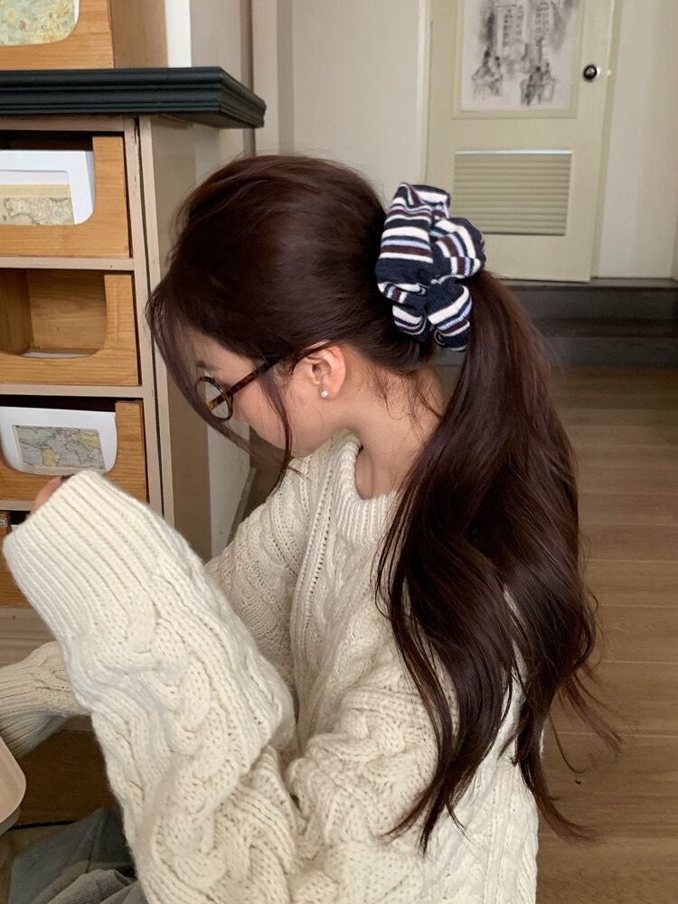 ボーダーの色味がお洒落なシュシュ。