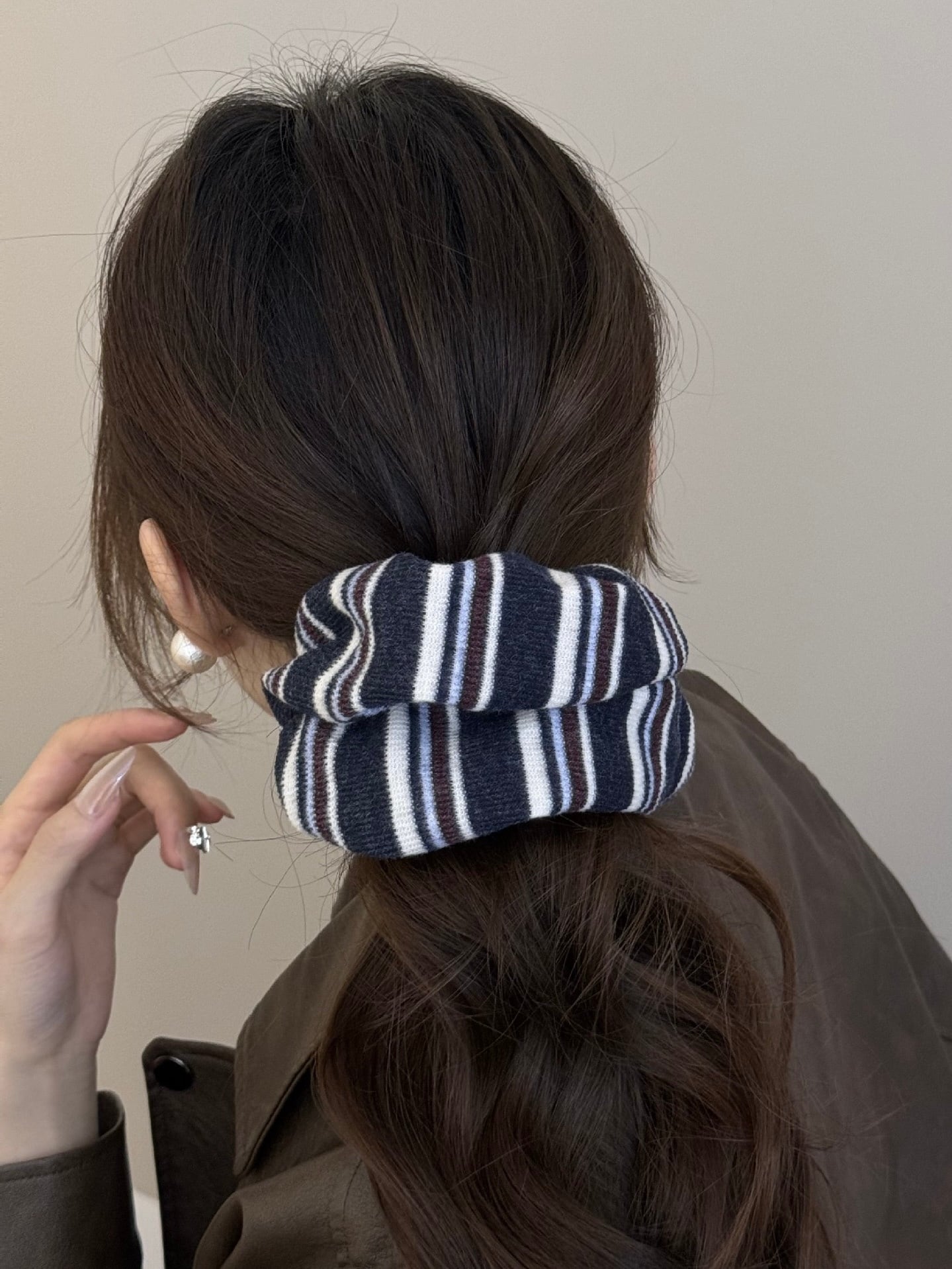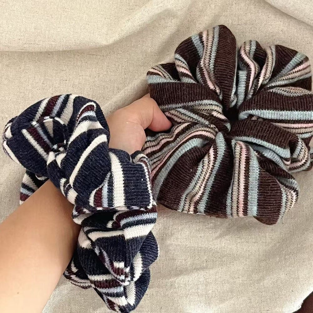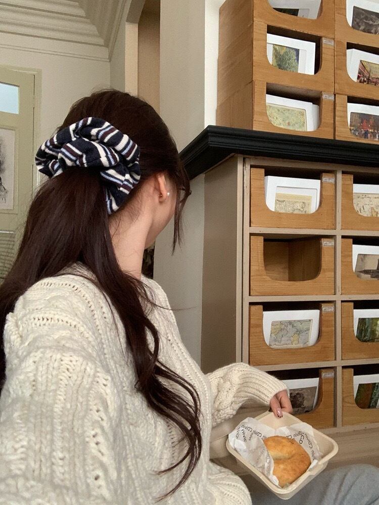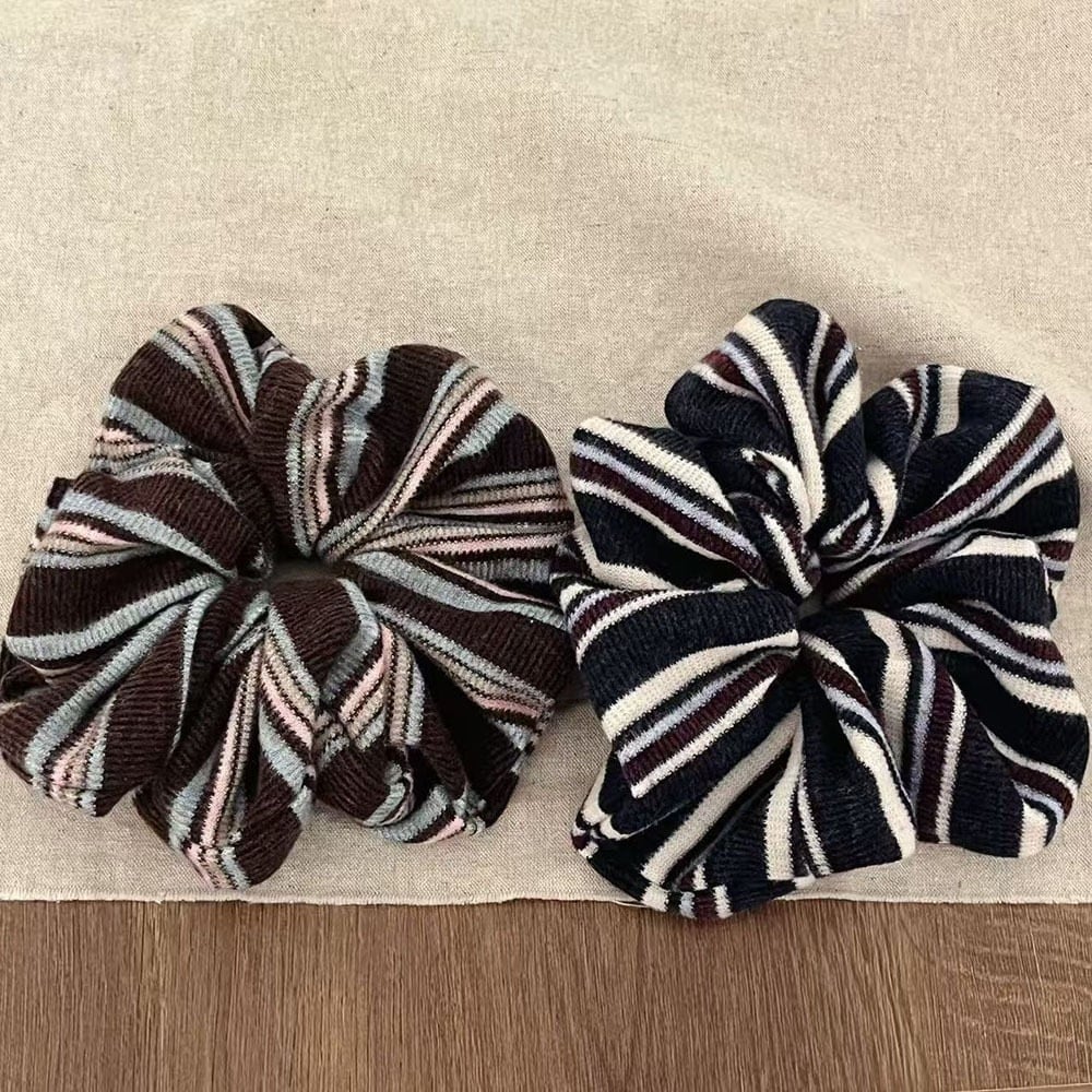 ボーダーの色味がお洒落なシュシュ。