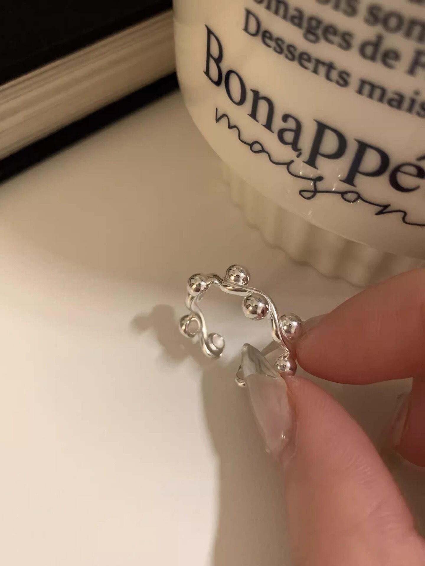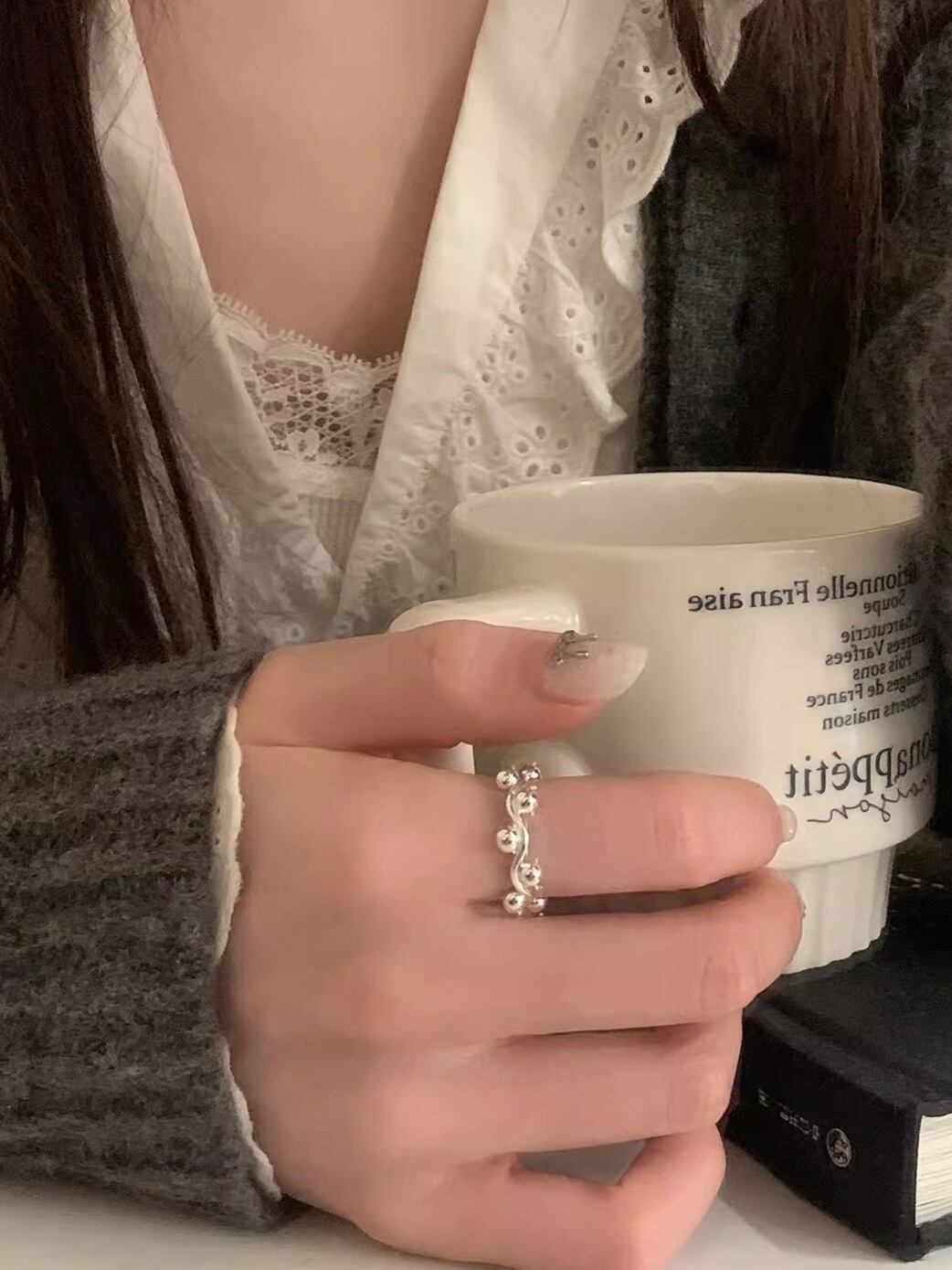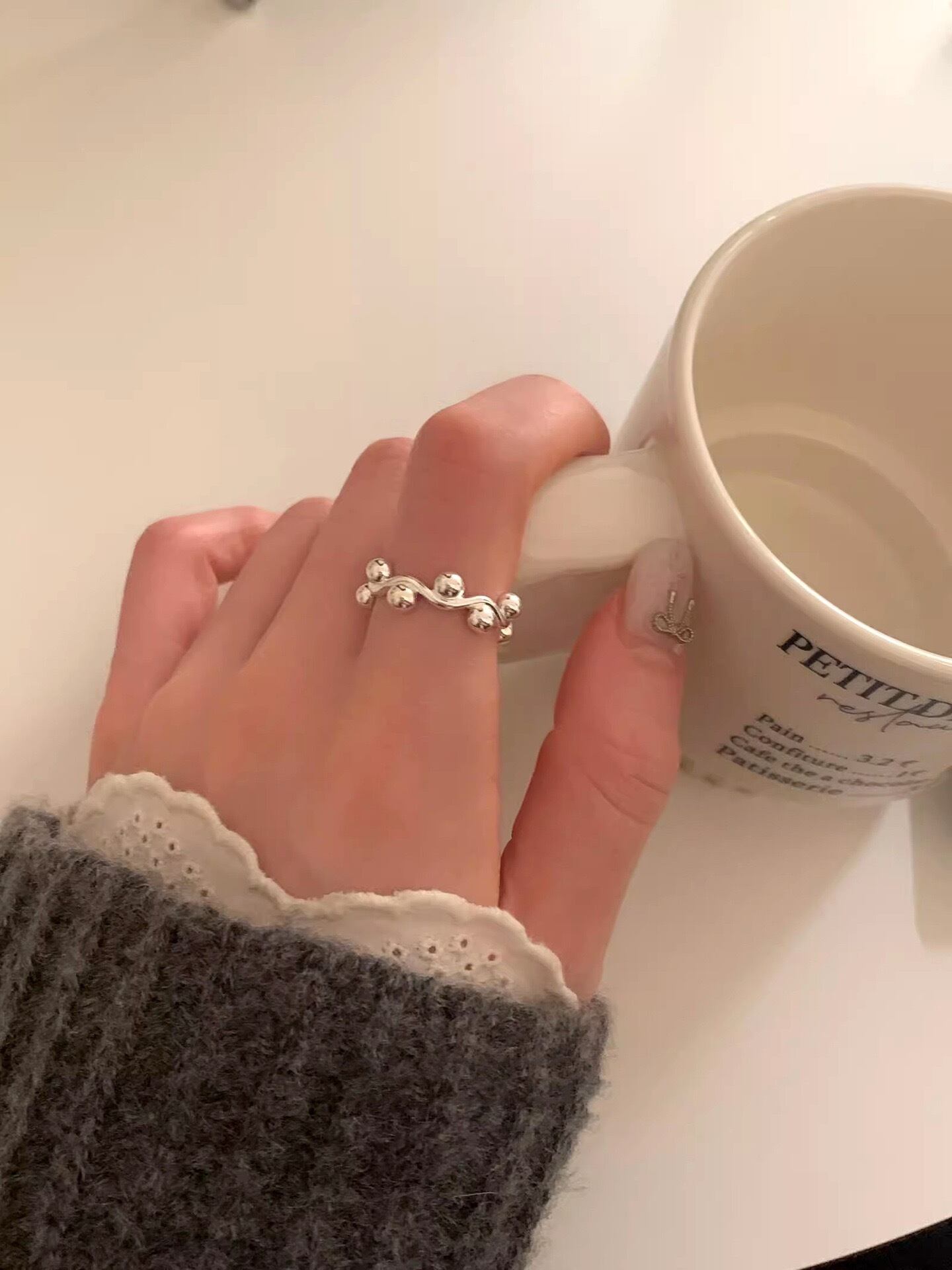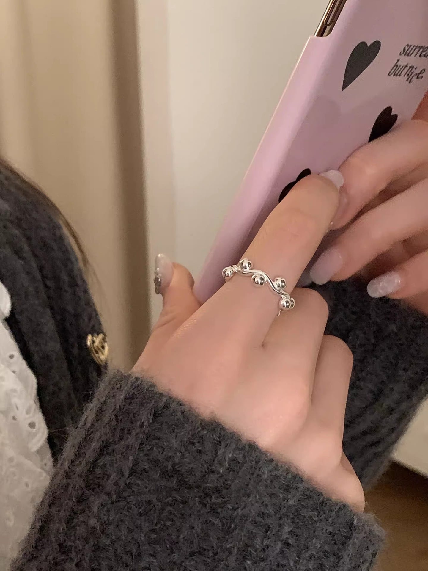 木の実が連なったようなデザインのリング。