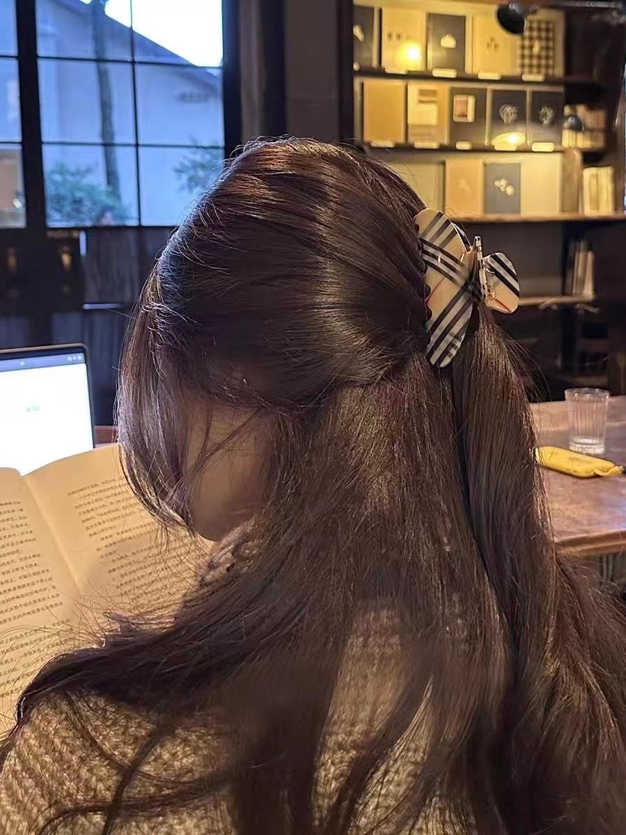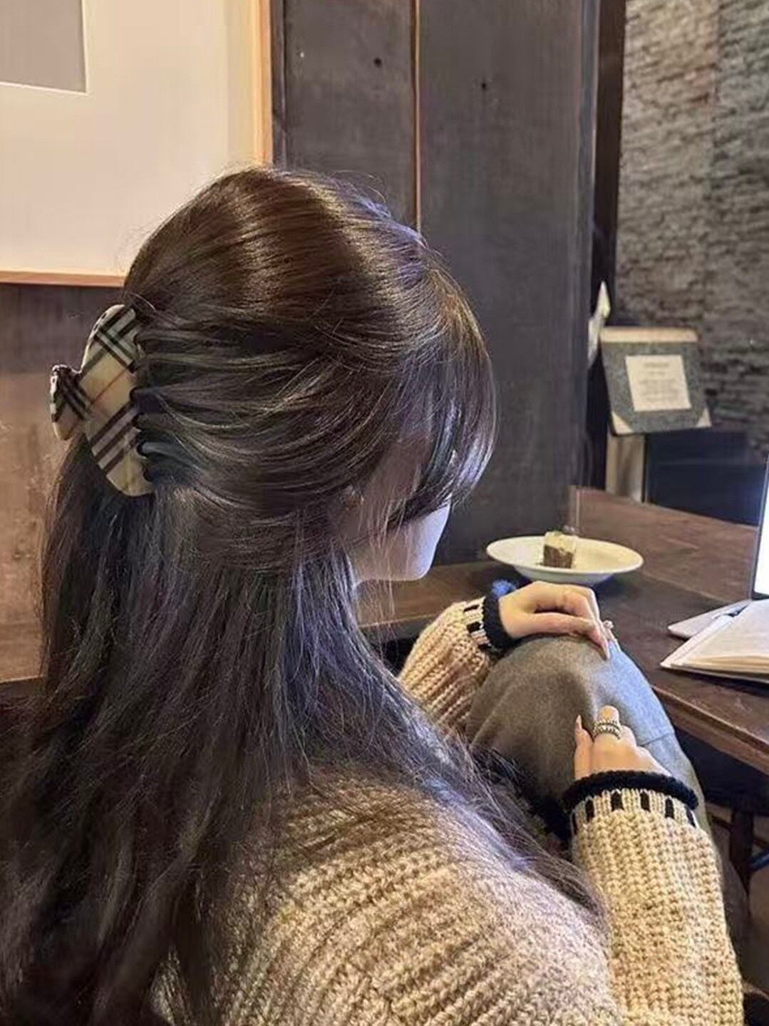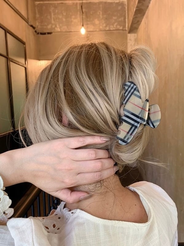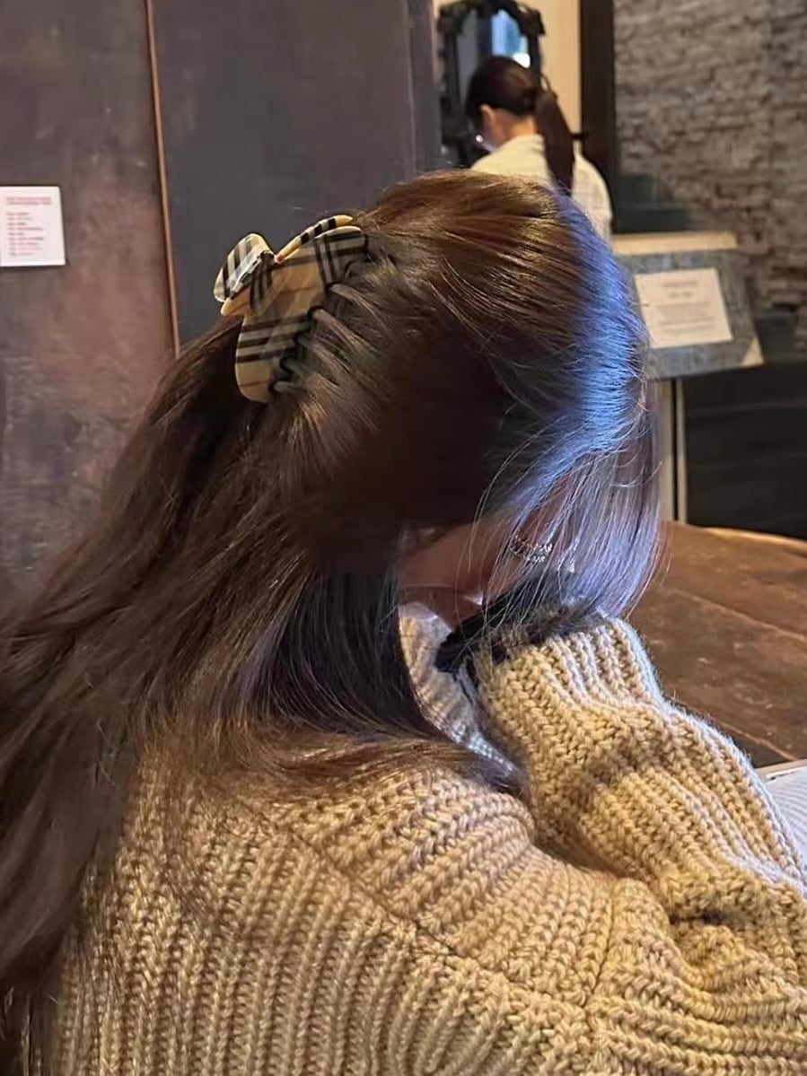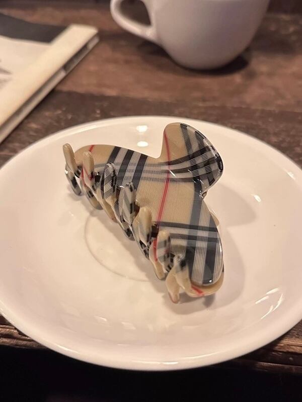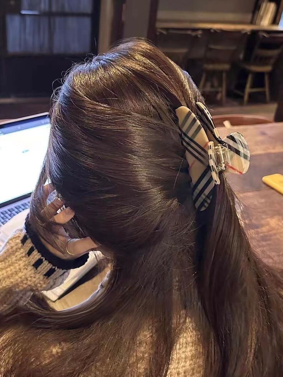 クラシカルなチェック柄が大人っぽいヘアクリップ。