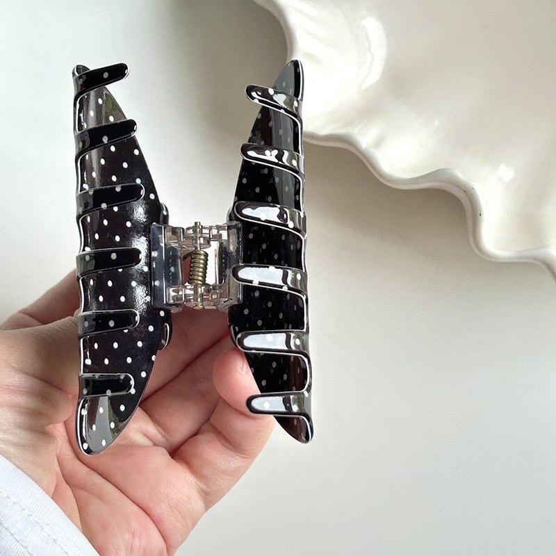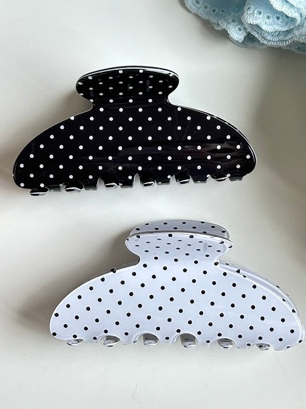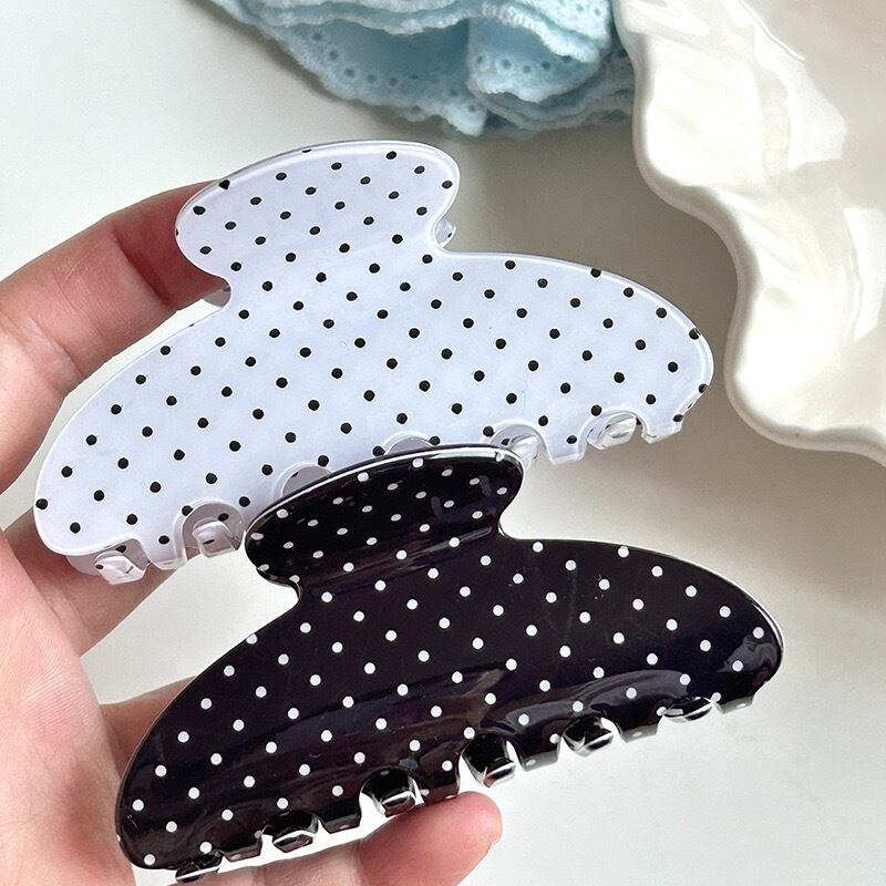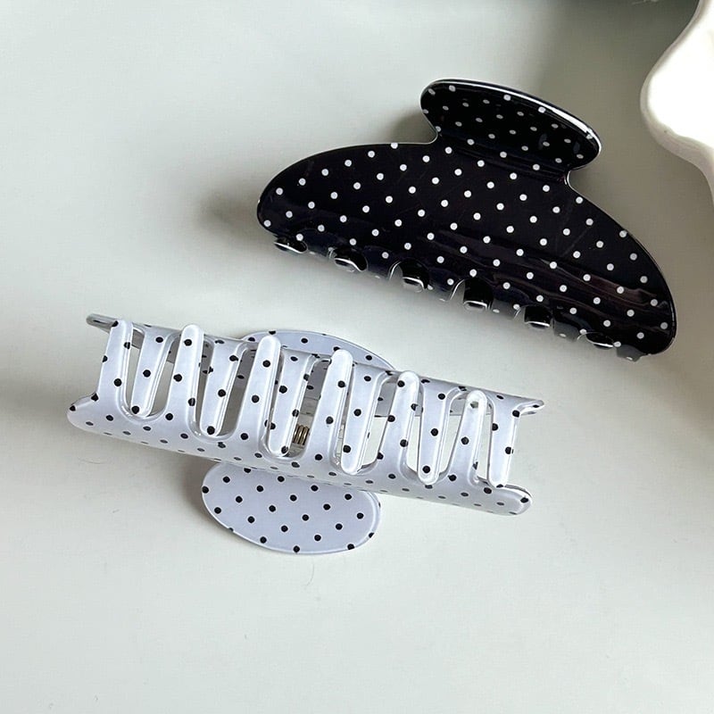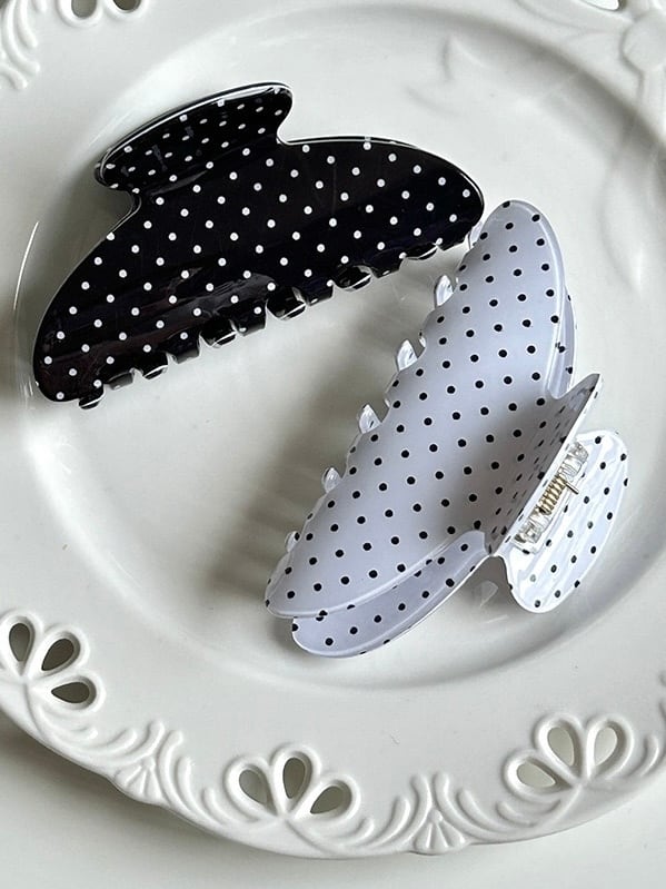 小さな水玉模様が可愛らしいヘアクリップ。
