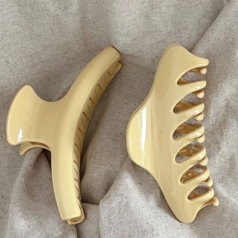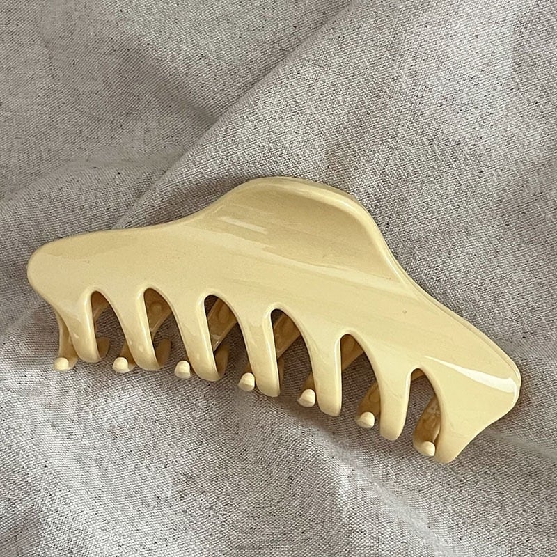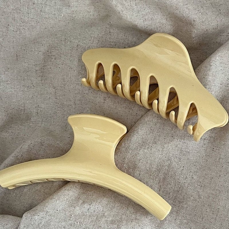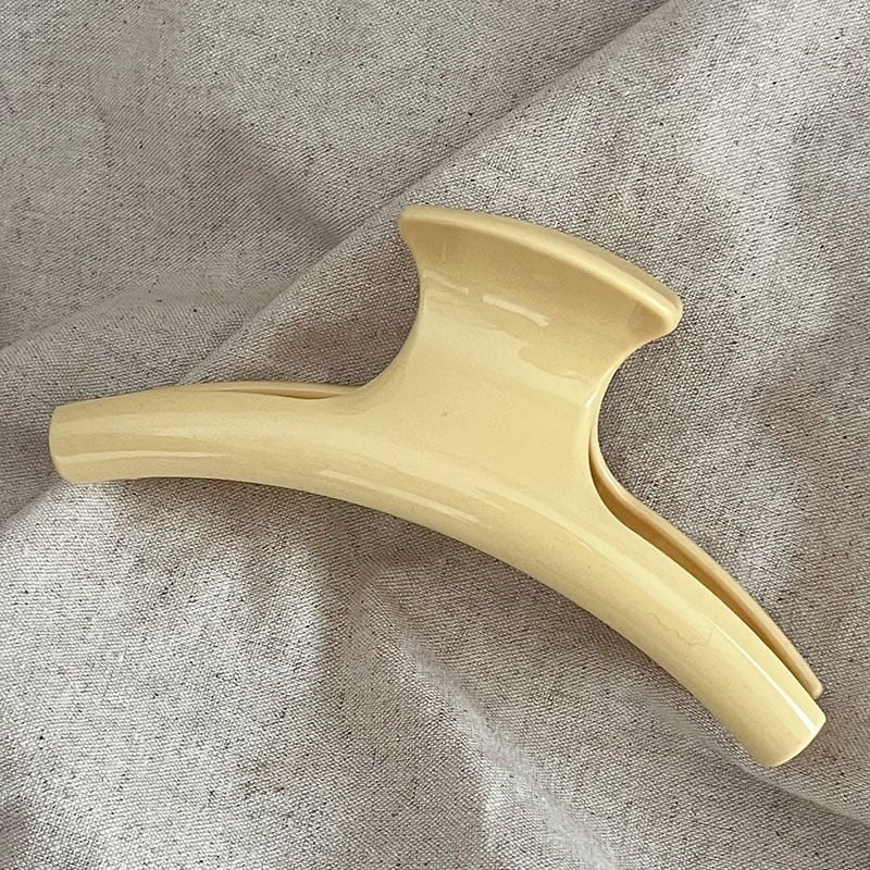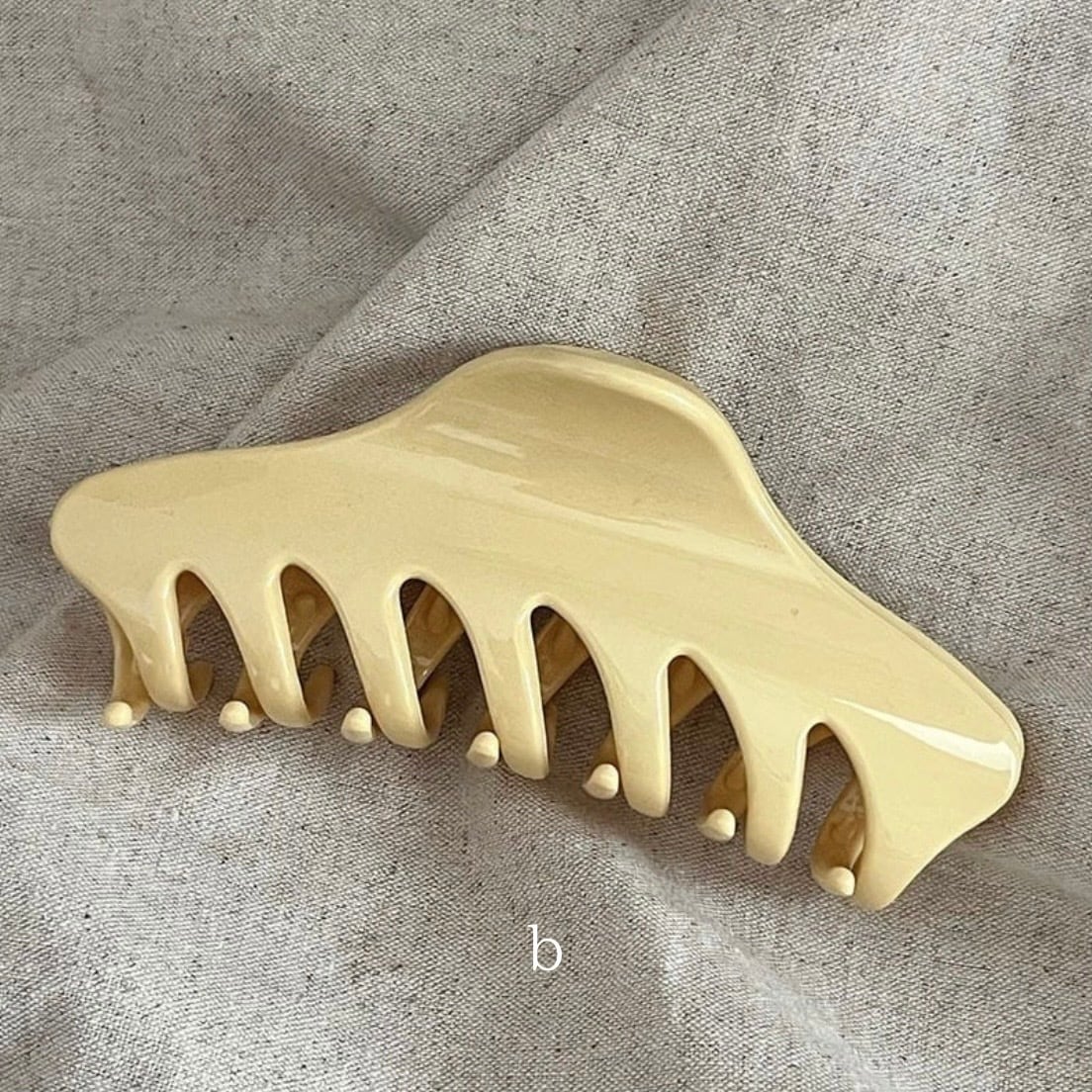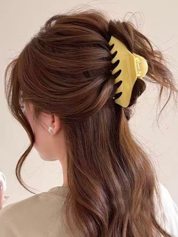 淡いクリームイエローのカラーが柔らかい印象のヘアクリップ。