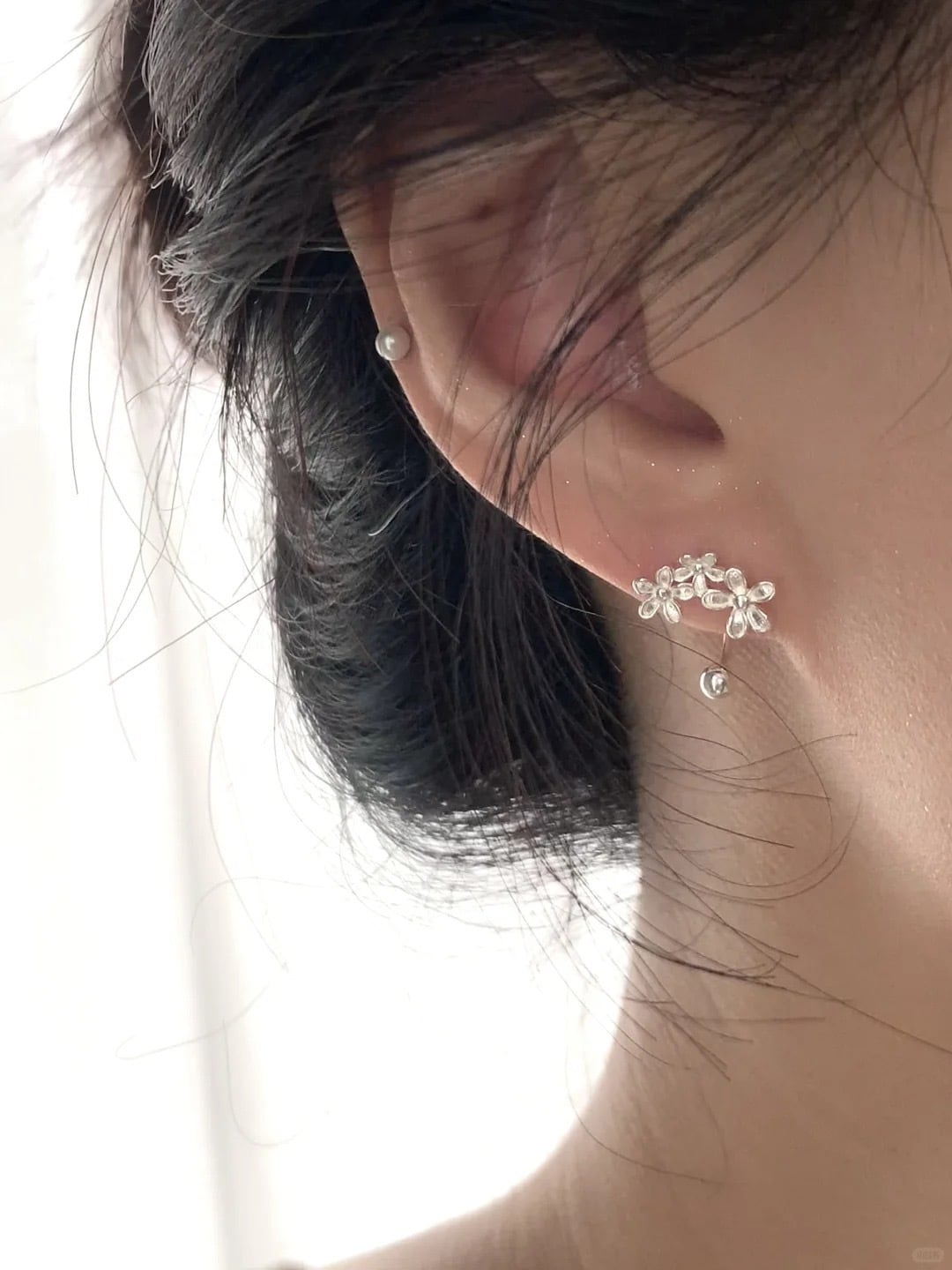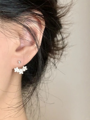 さりげないお花モチーフが愛らしいイヤージャケットピアス。