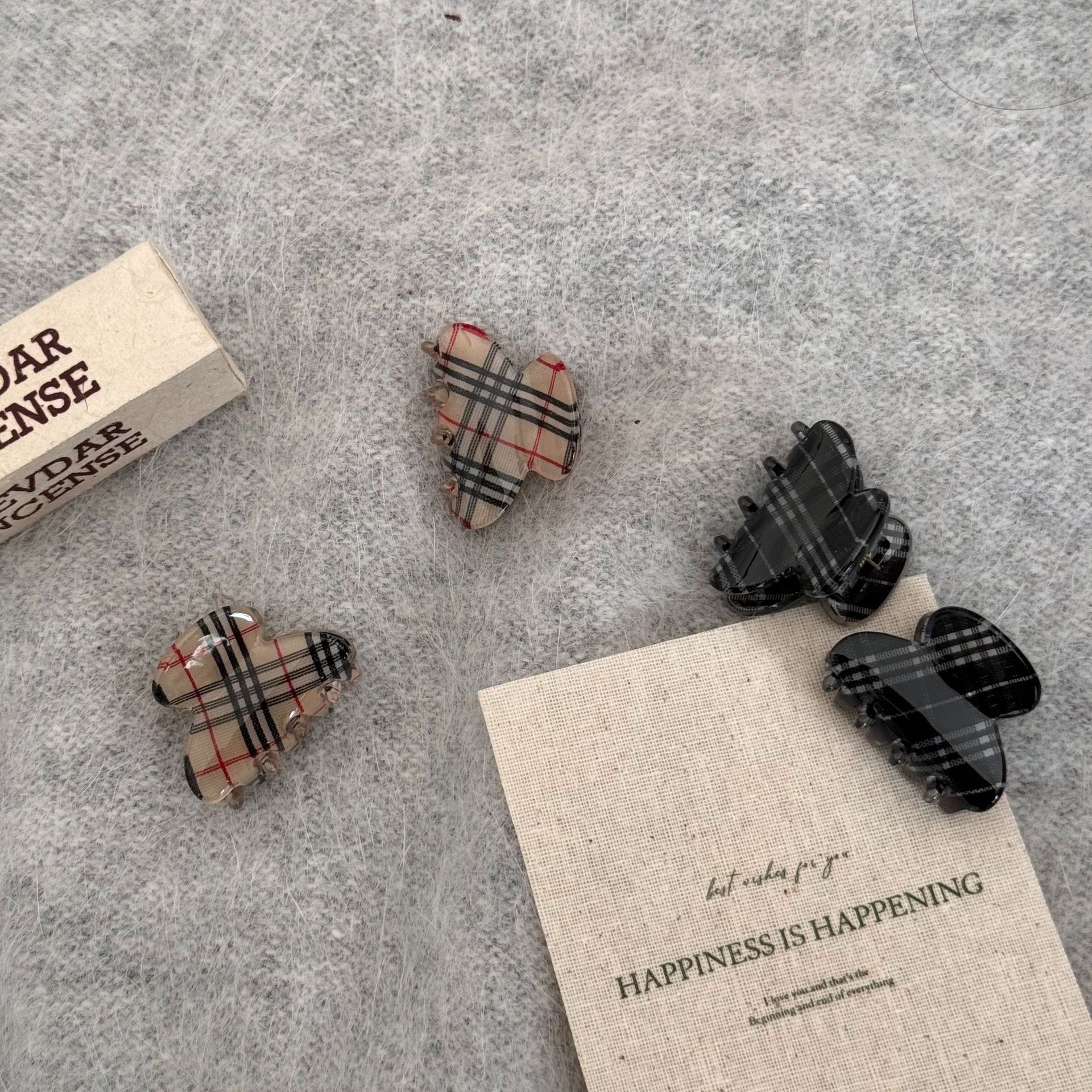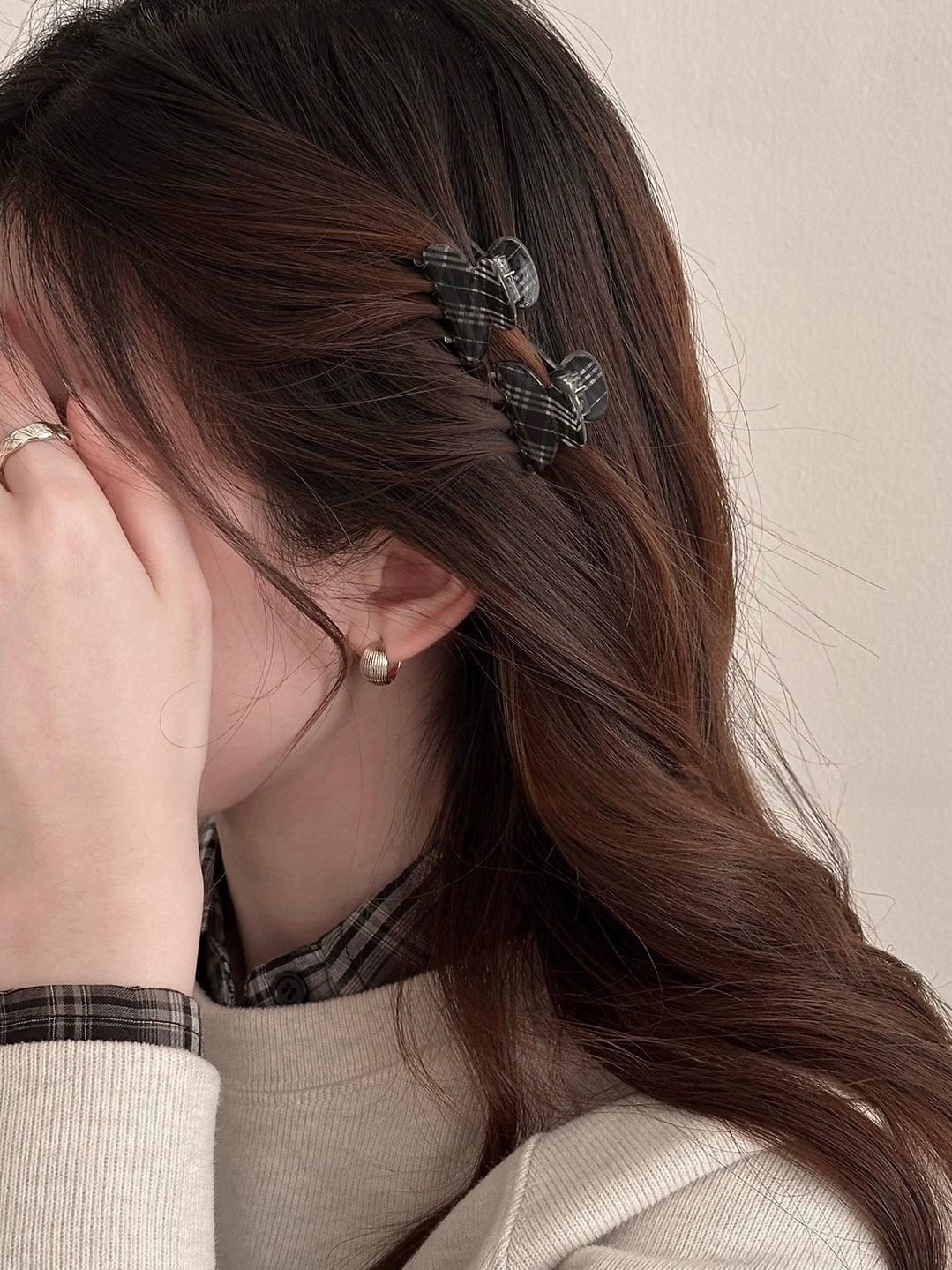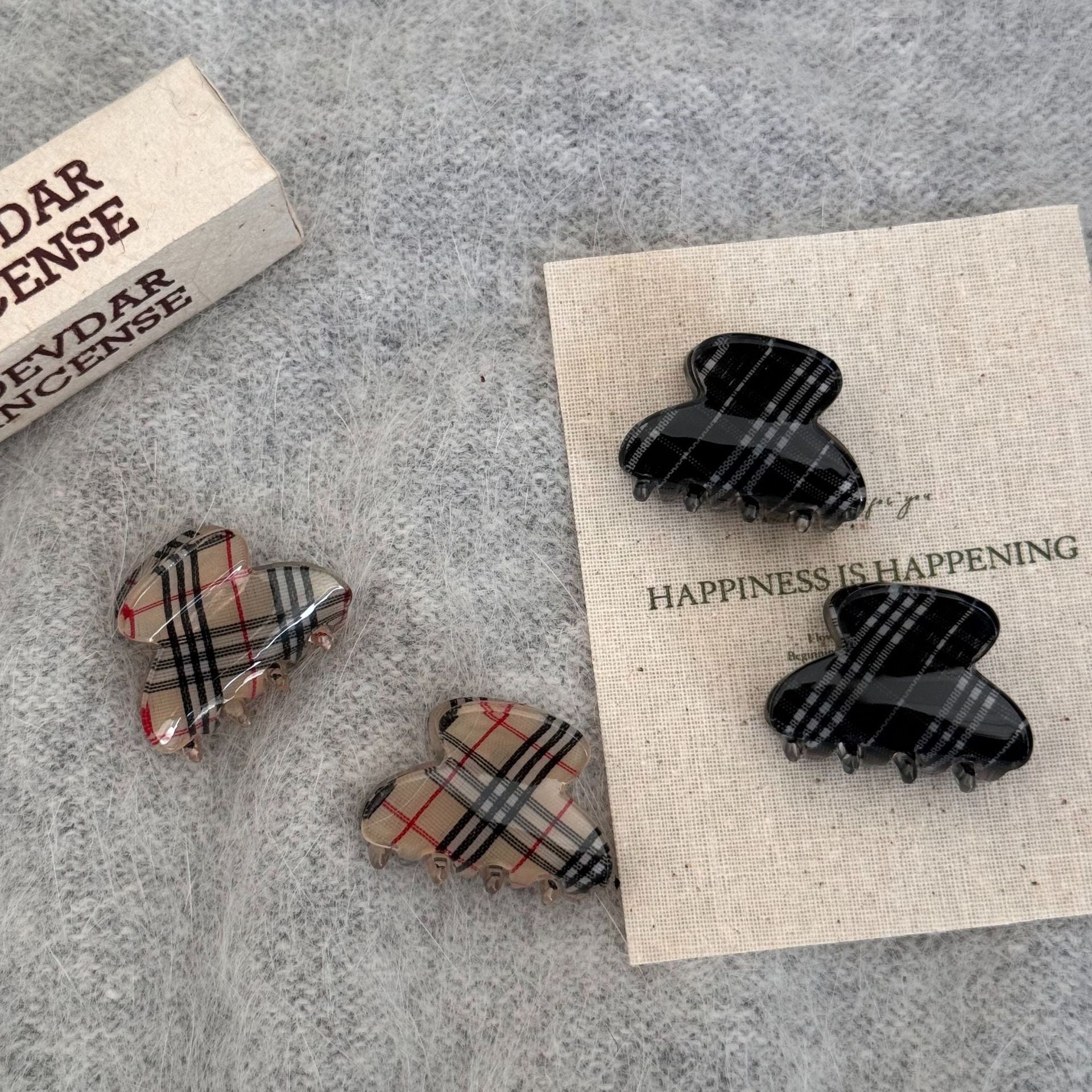 落ち着いたカラーのチェック柄で大人っぽく着用していただけるミニクリップ。