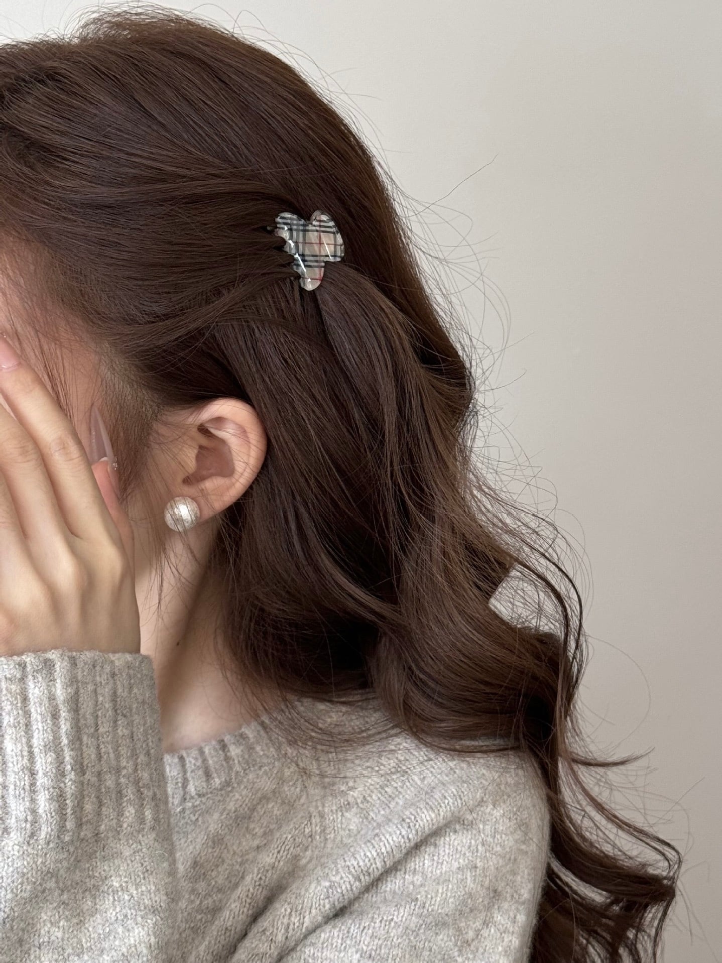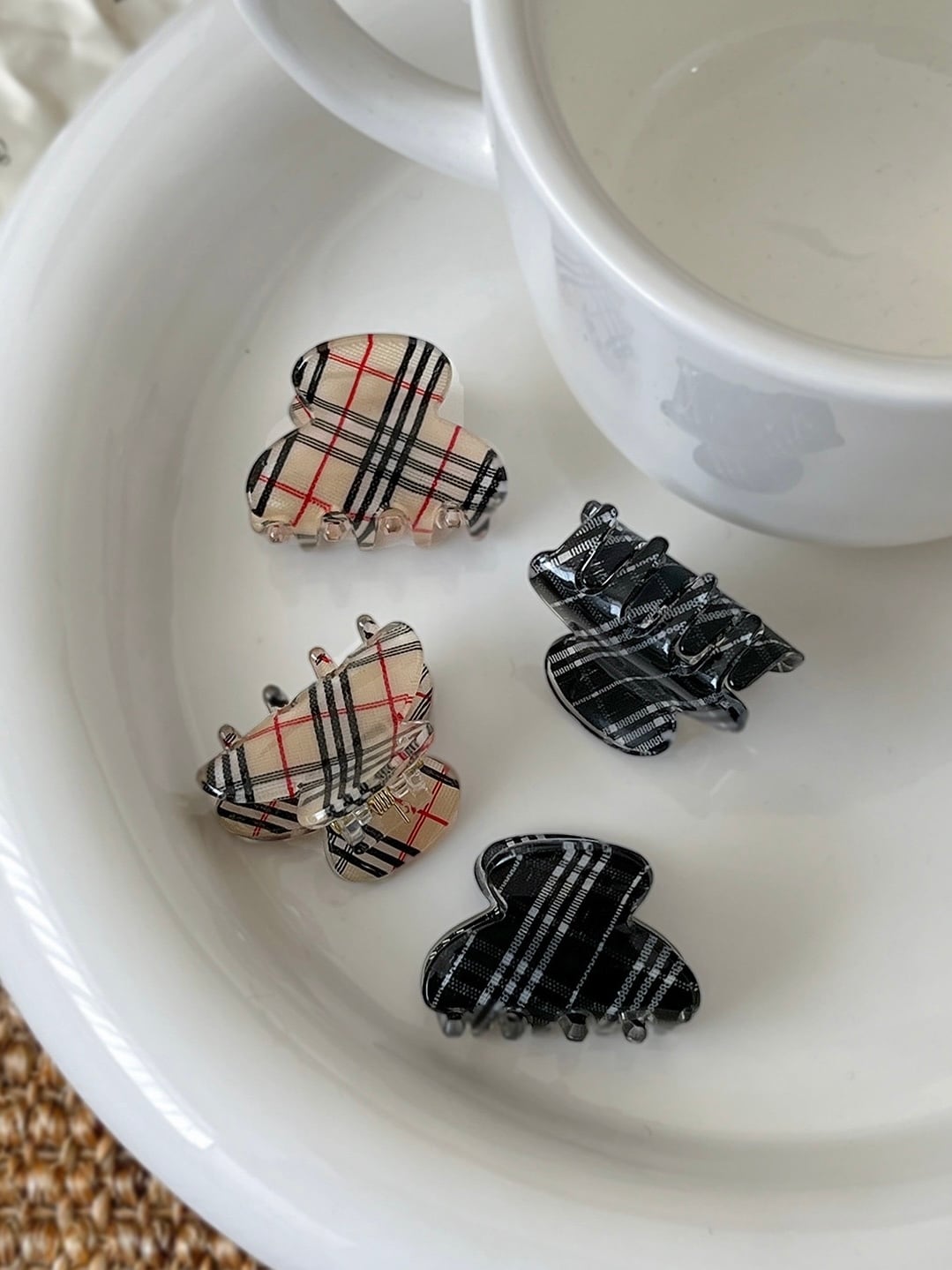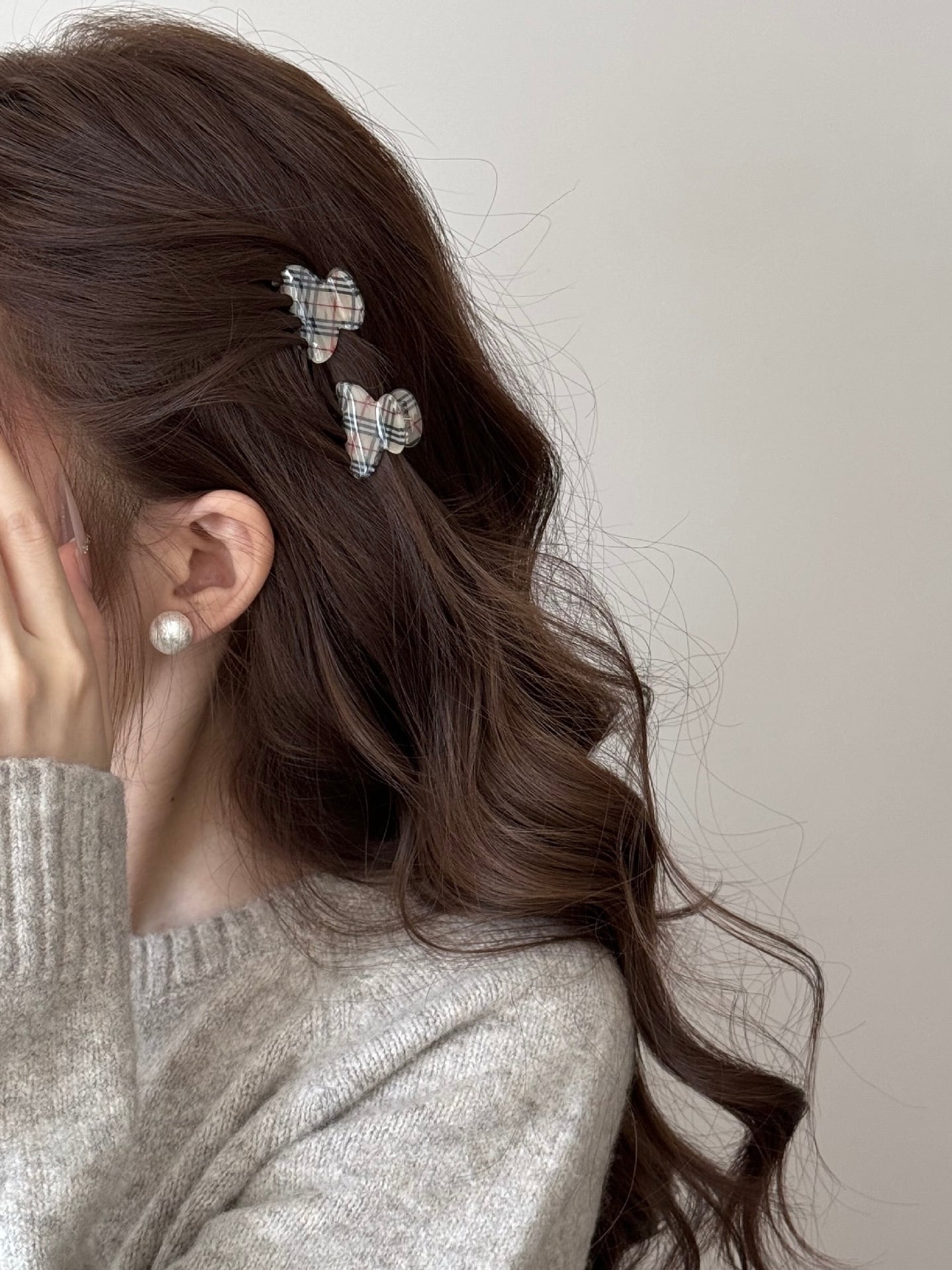 落ち着いたカラーのチェック柄で大人っぽく着用していただけるミニクリップ。