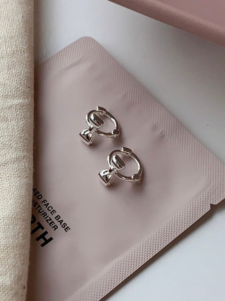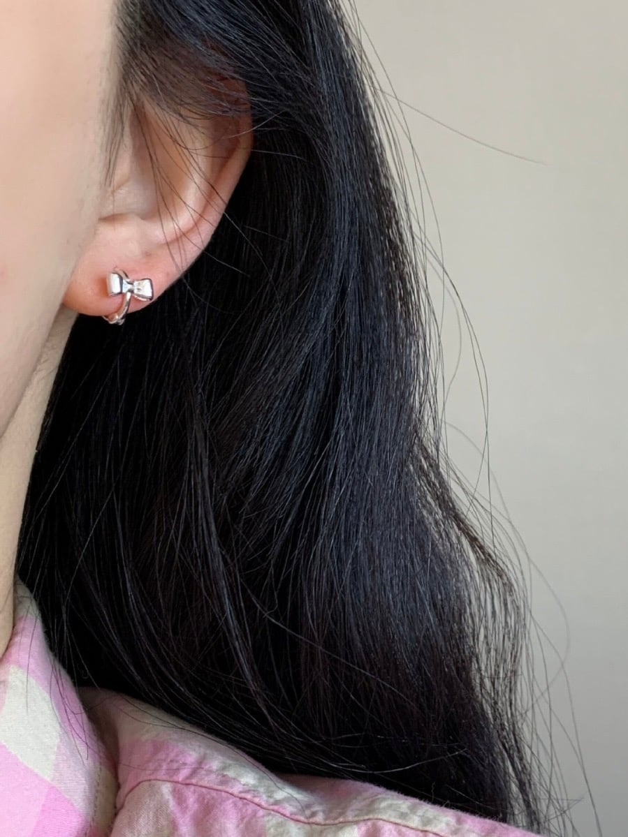 立体的なリボンモチーフがキュートなフープピアス。