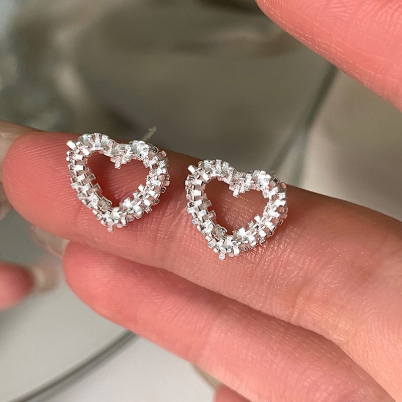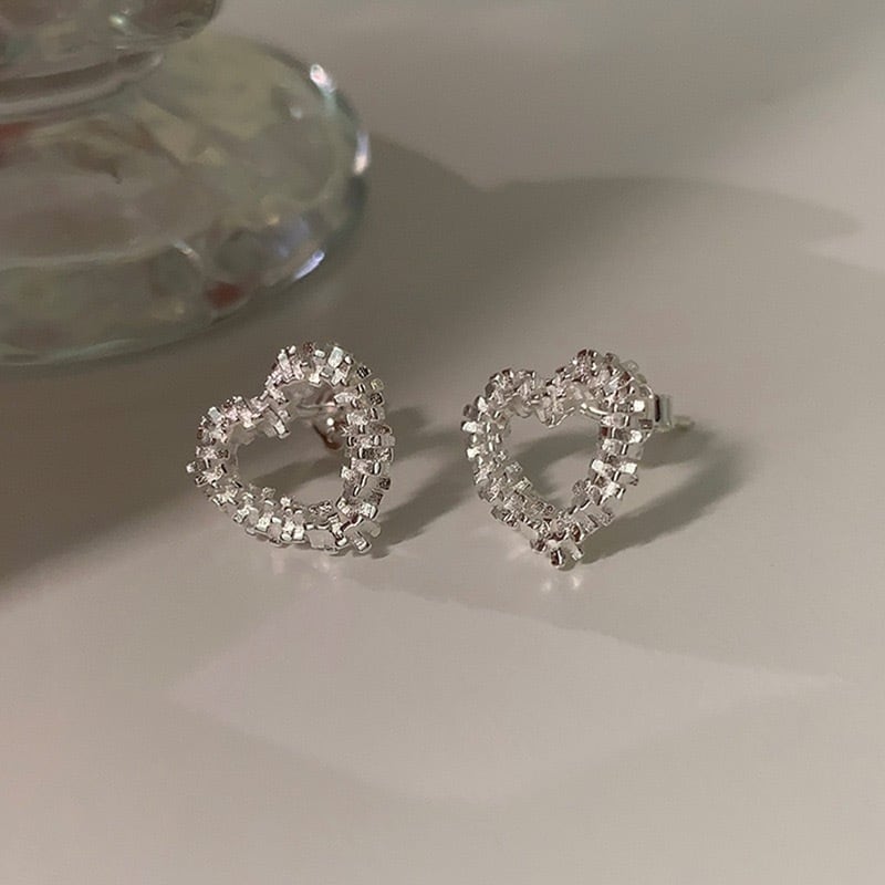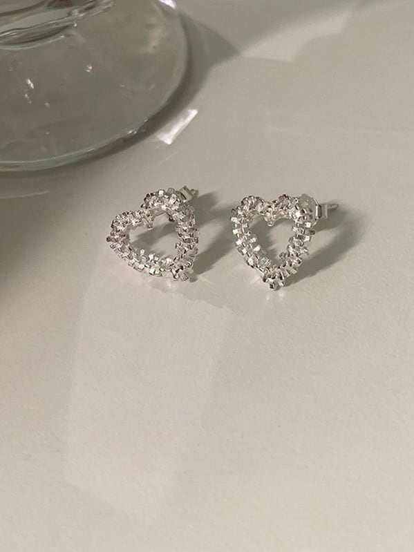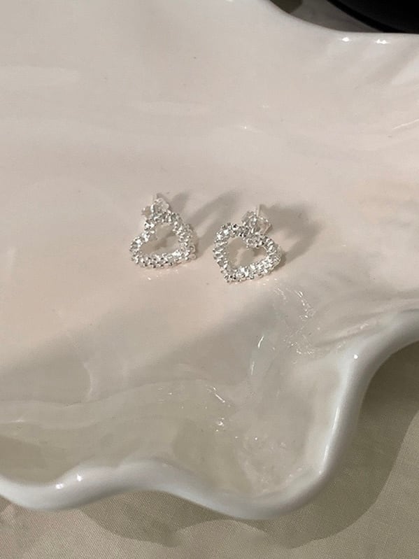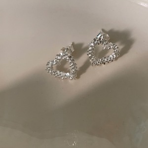 シルバーカラーの細かいビーズを積み重ねて立体感を演出したピアス。