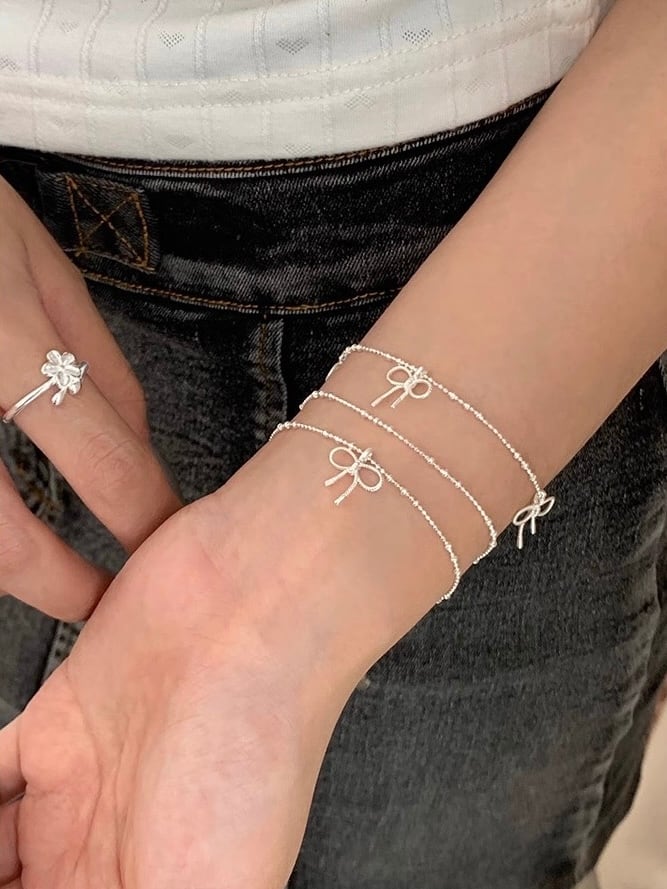 細身のリボンチャームが可愛らしいブレスレット。