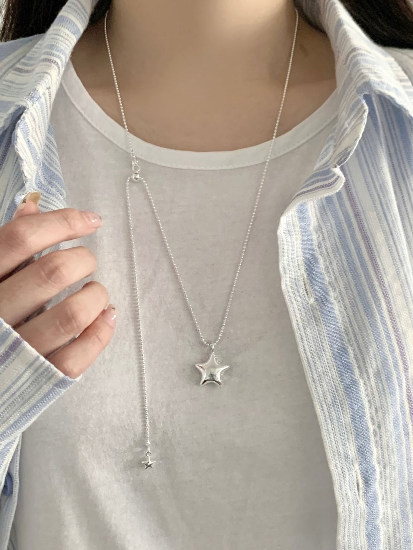 ぷっくりした立体感のある星がポイントのネックレス。
