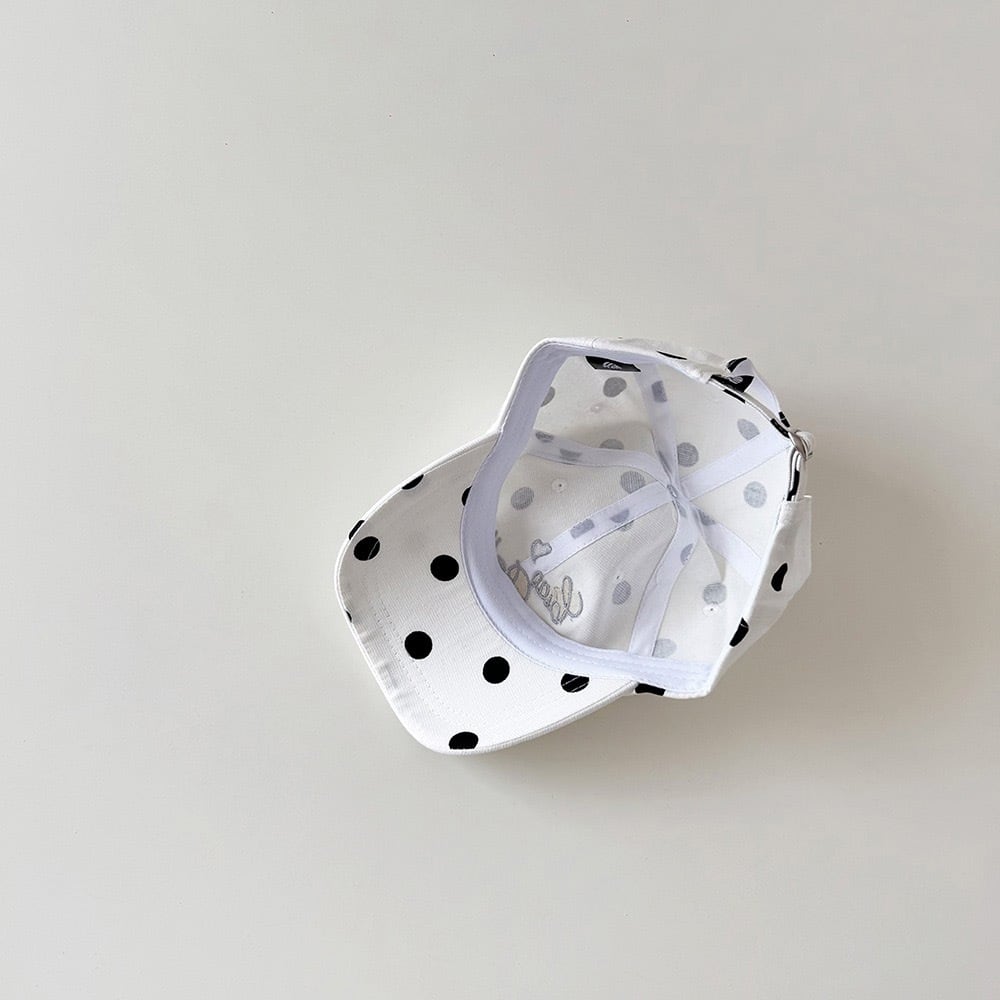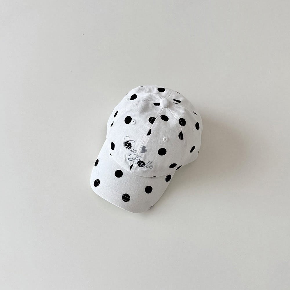 キャップのカジュアルさもありながら、大きめのドット柄で可愛らしさもあるキャップ。