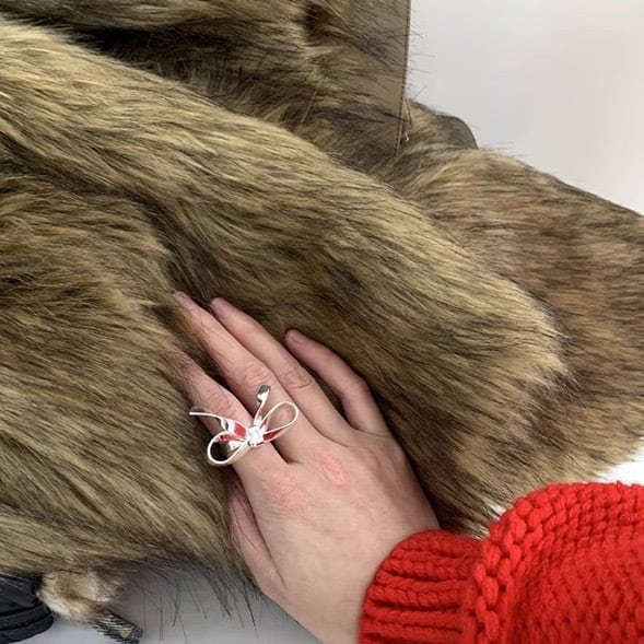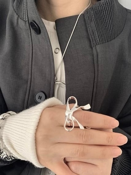 大きいリボンがガーリーなムードのリング。