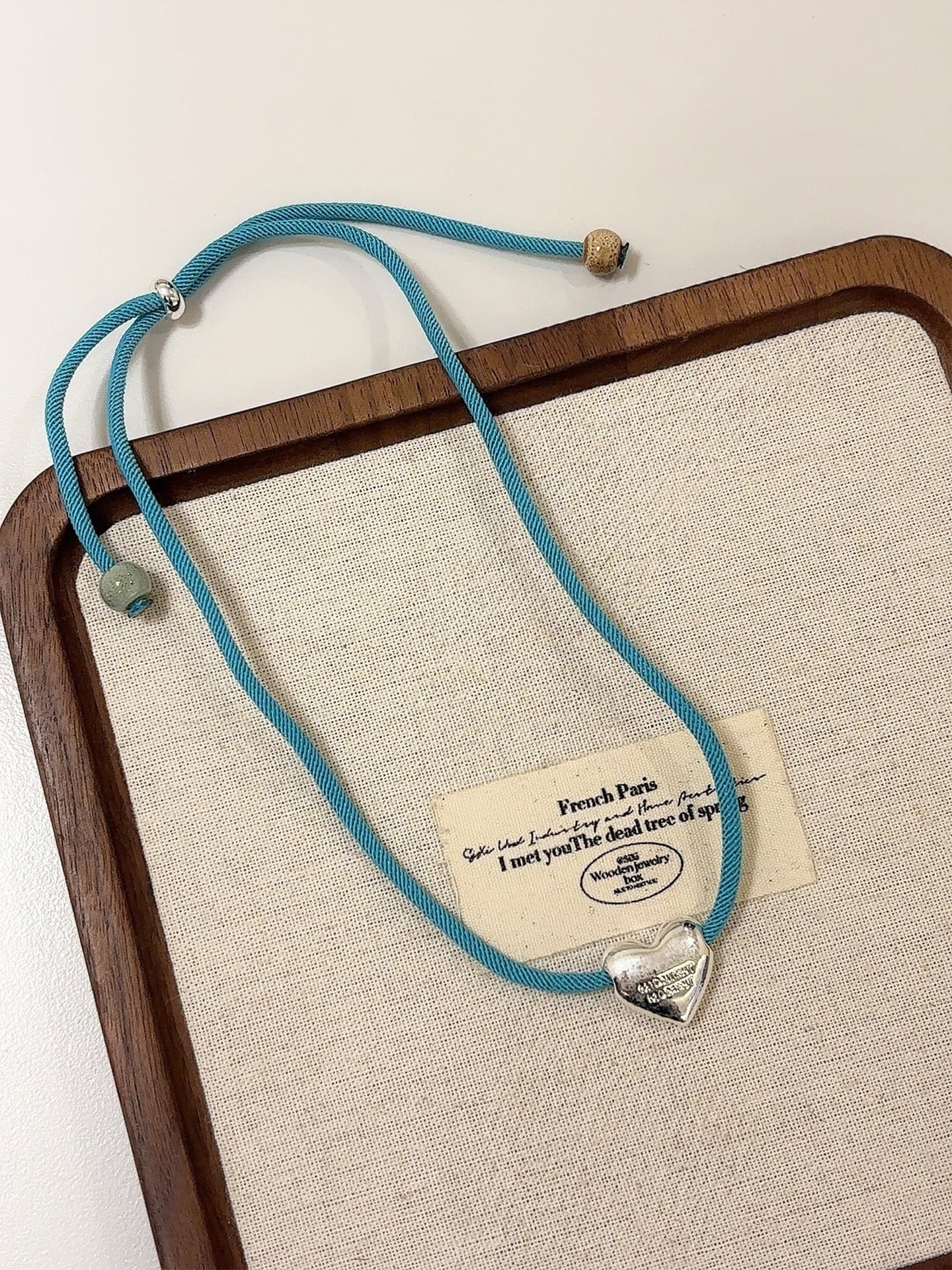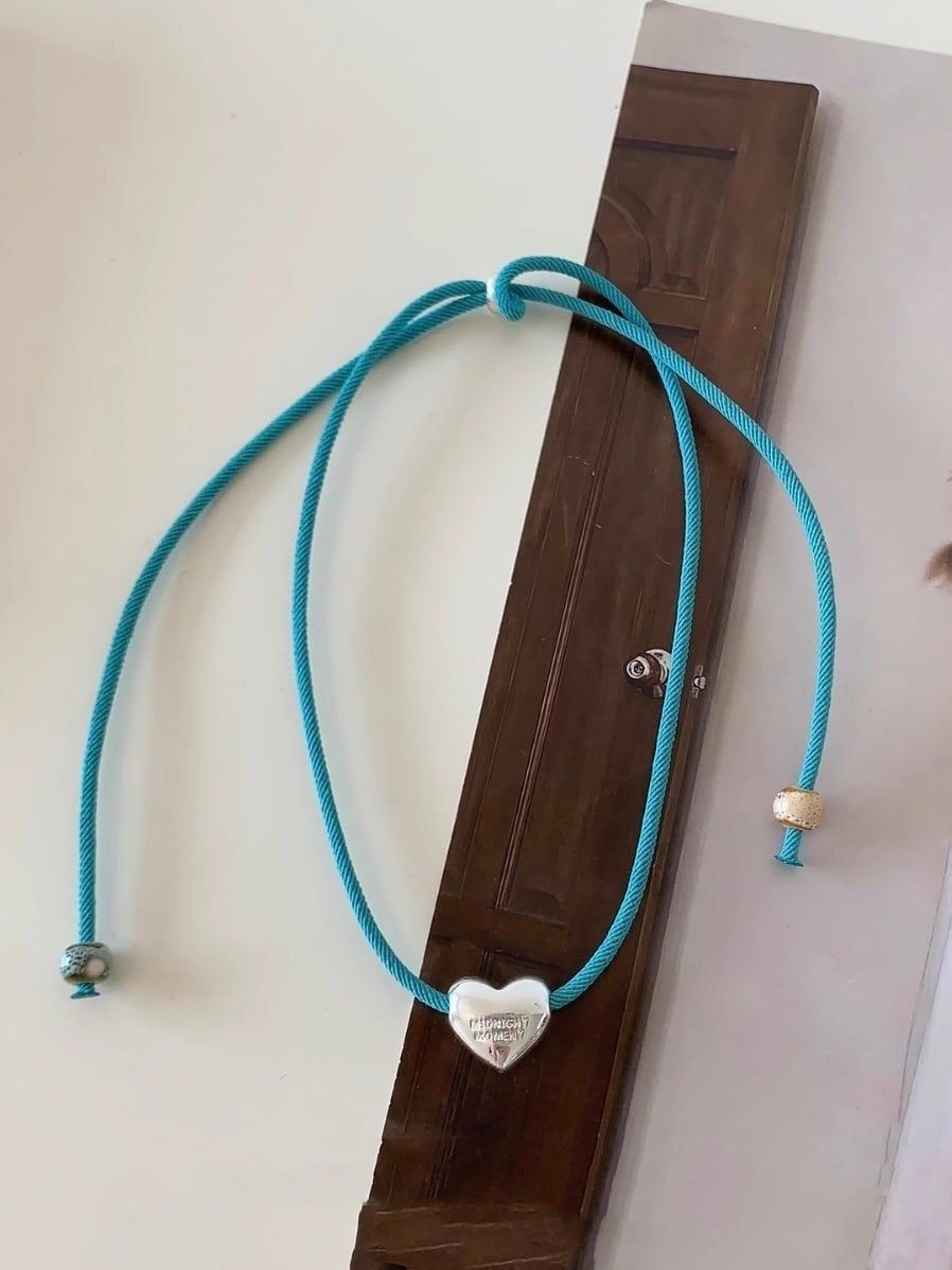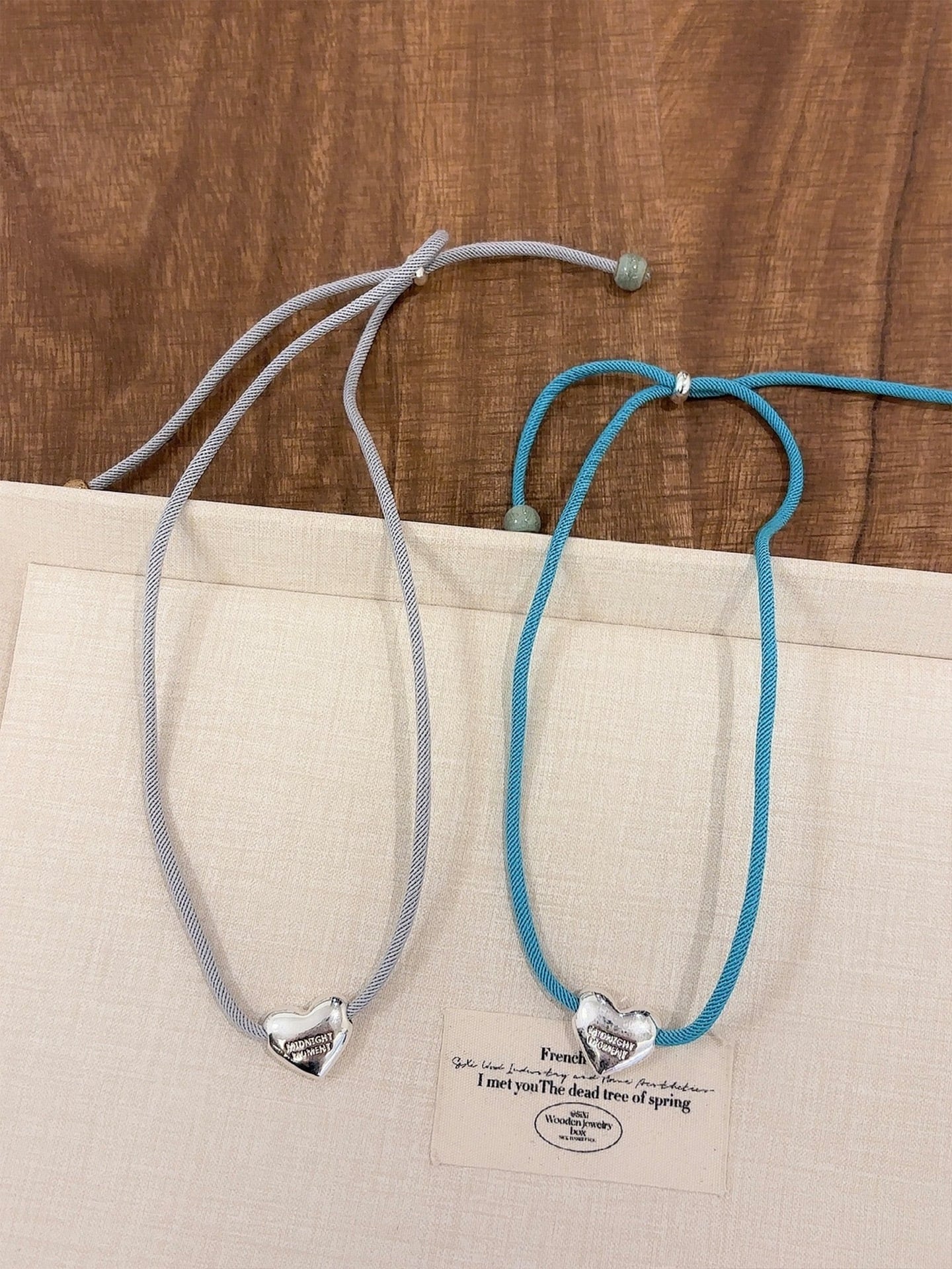 シルバーカラーのハートペンダントに太めの紐がカジュアルで使いやすいコードネックレス。