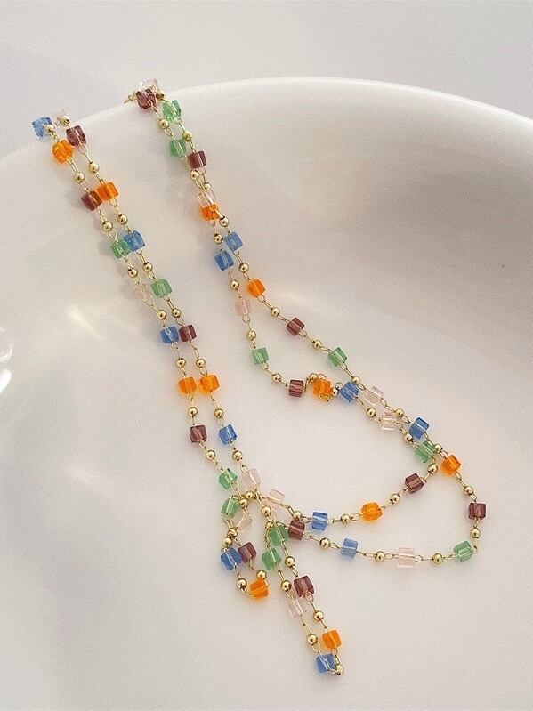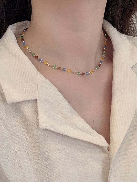 カラフルなビーズが夏らしいネックレスです。