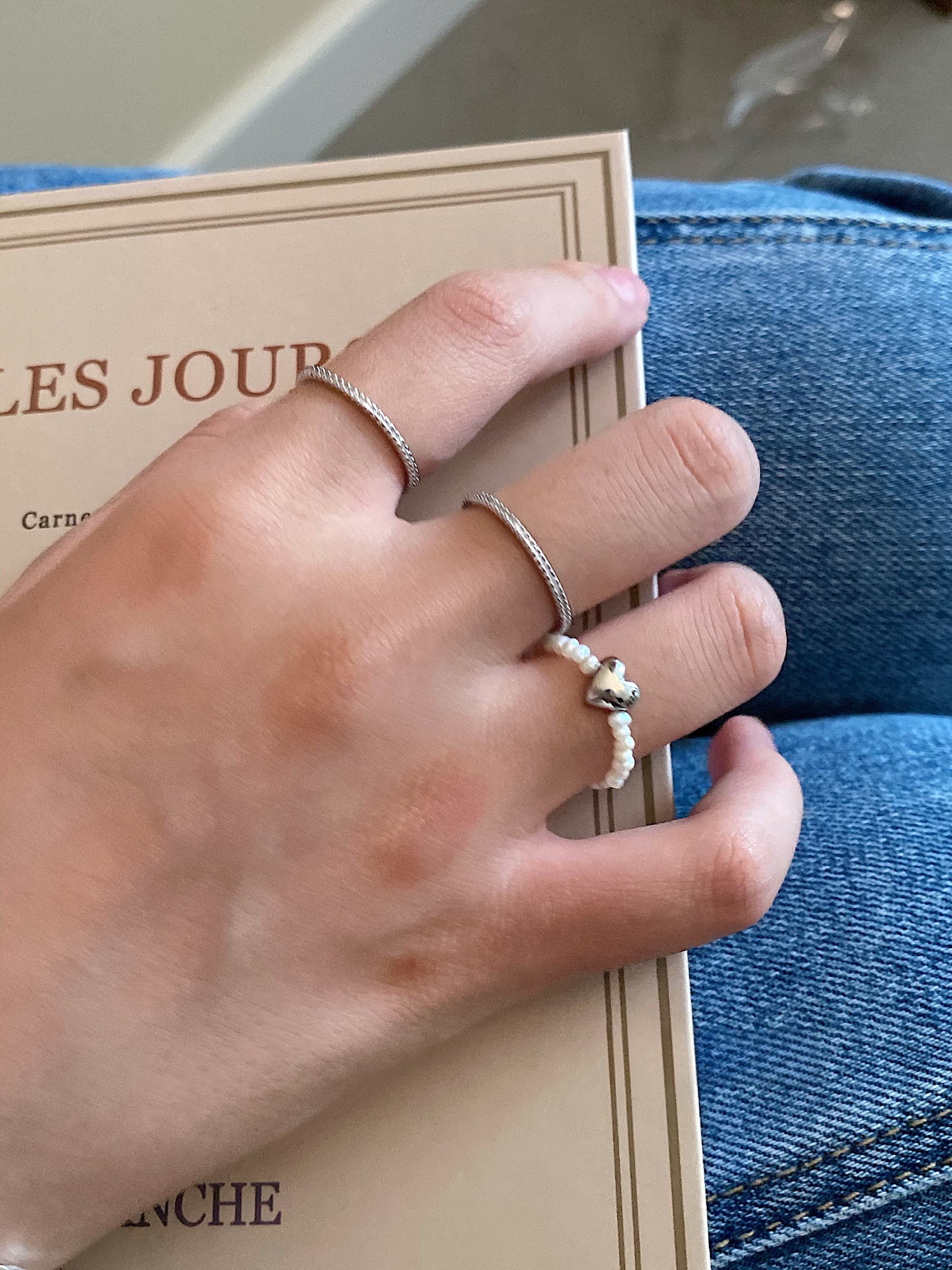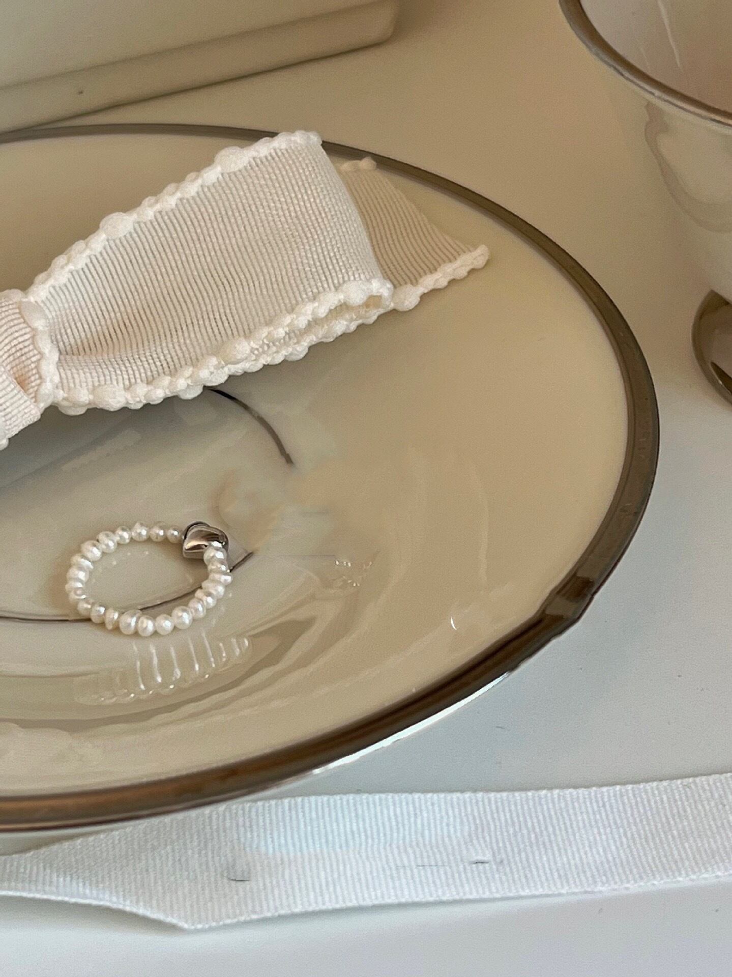 シルバーのハートとパールで大人っぽくかわいいリングです。