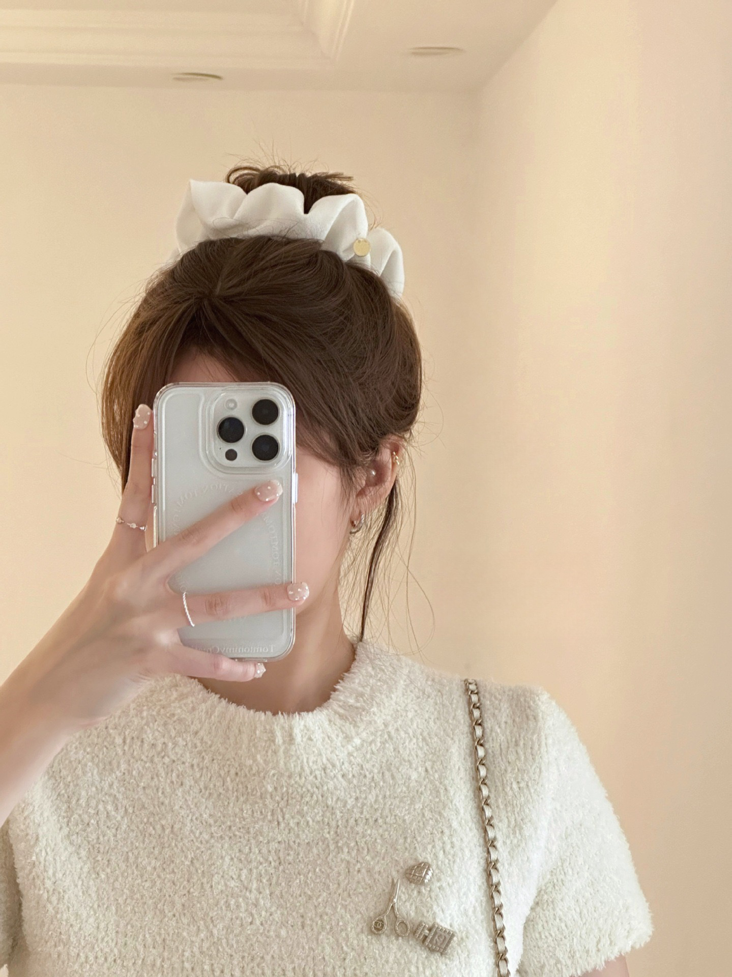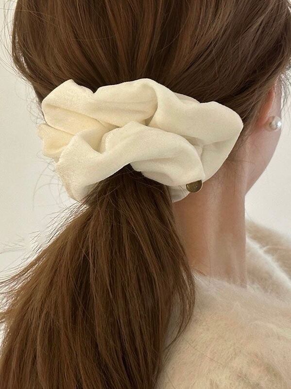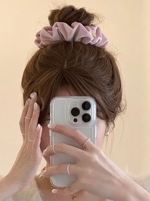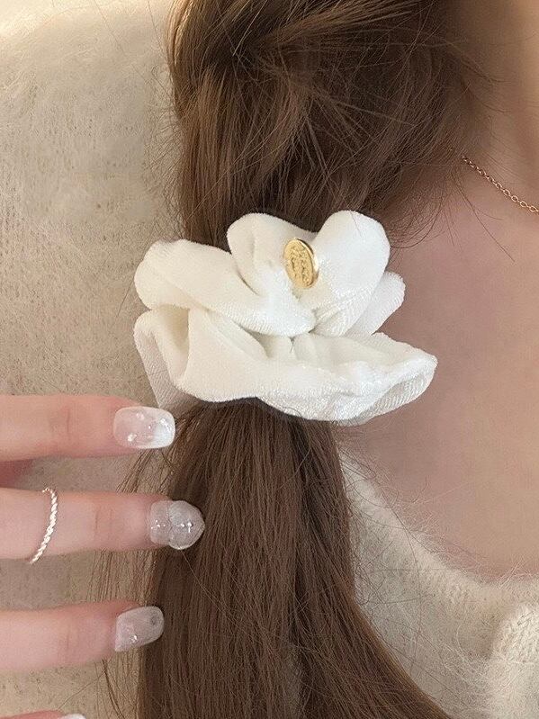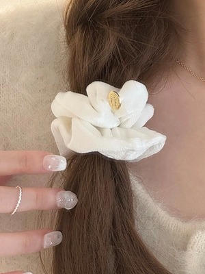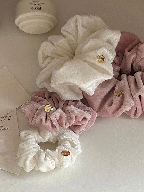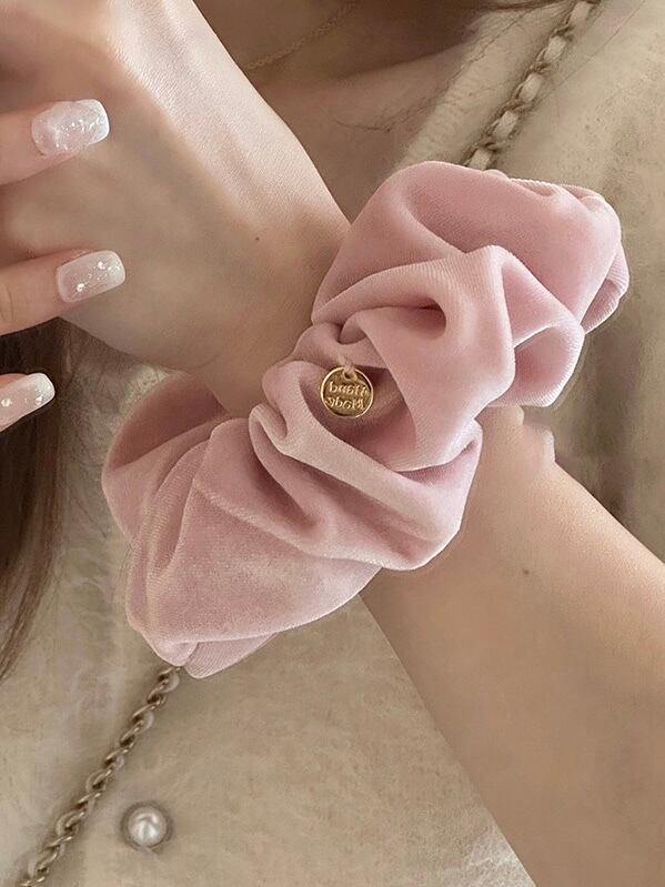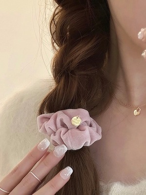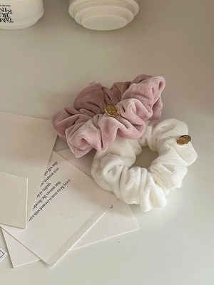 ゴールドのチャームがついたベロア素材のシュシュです。