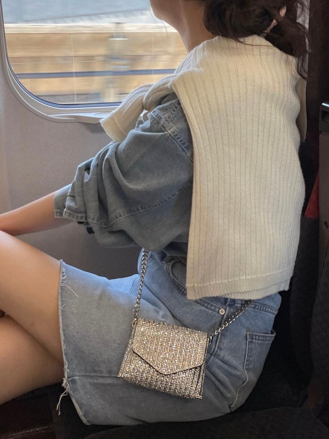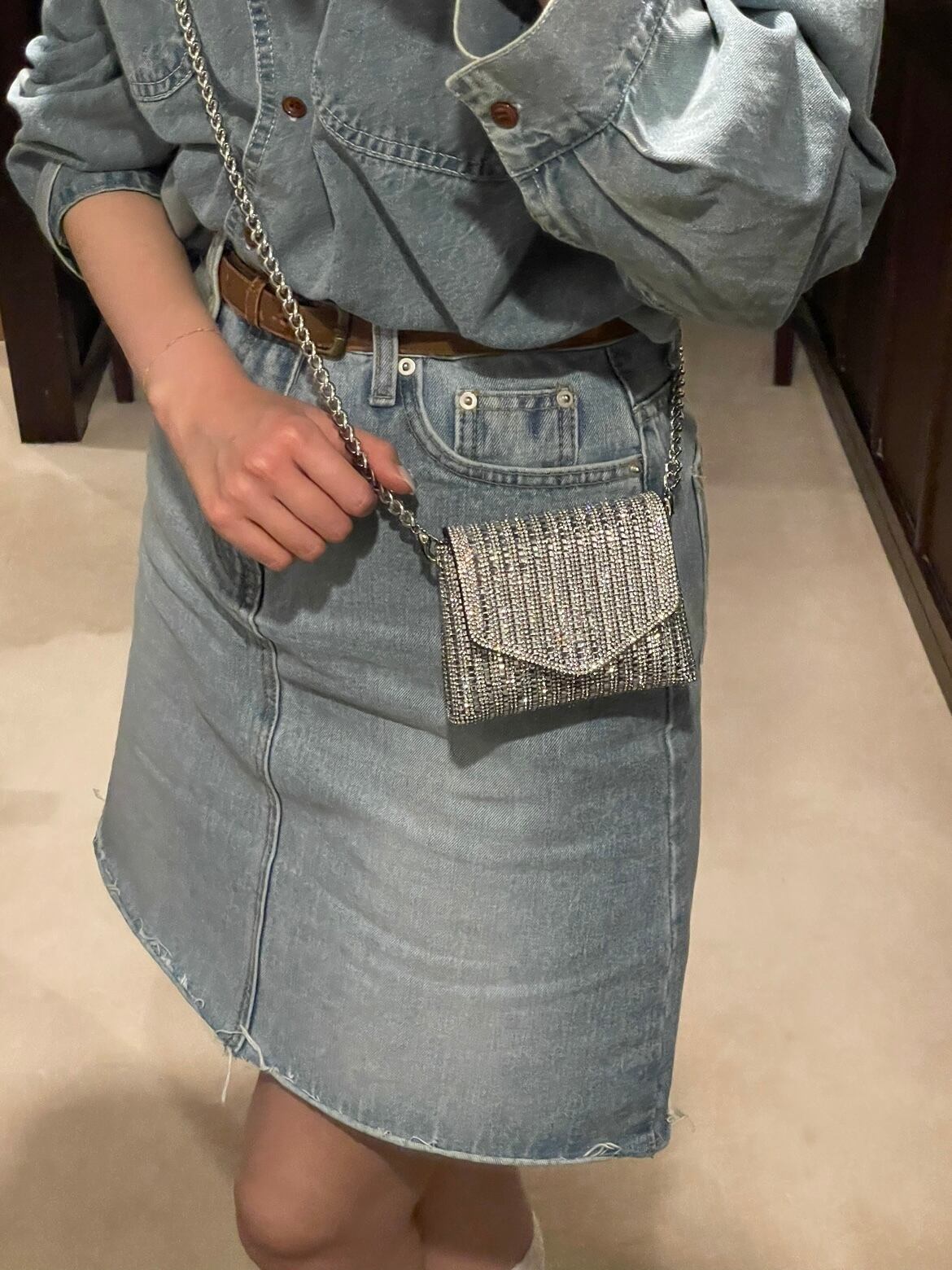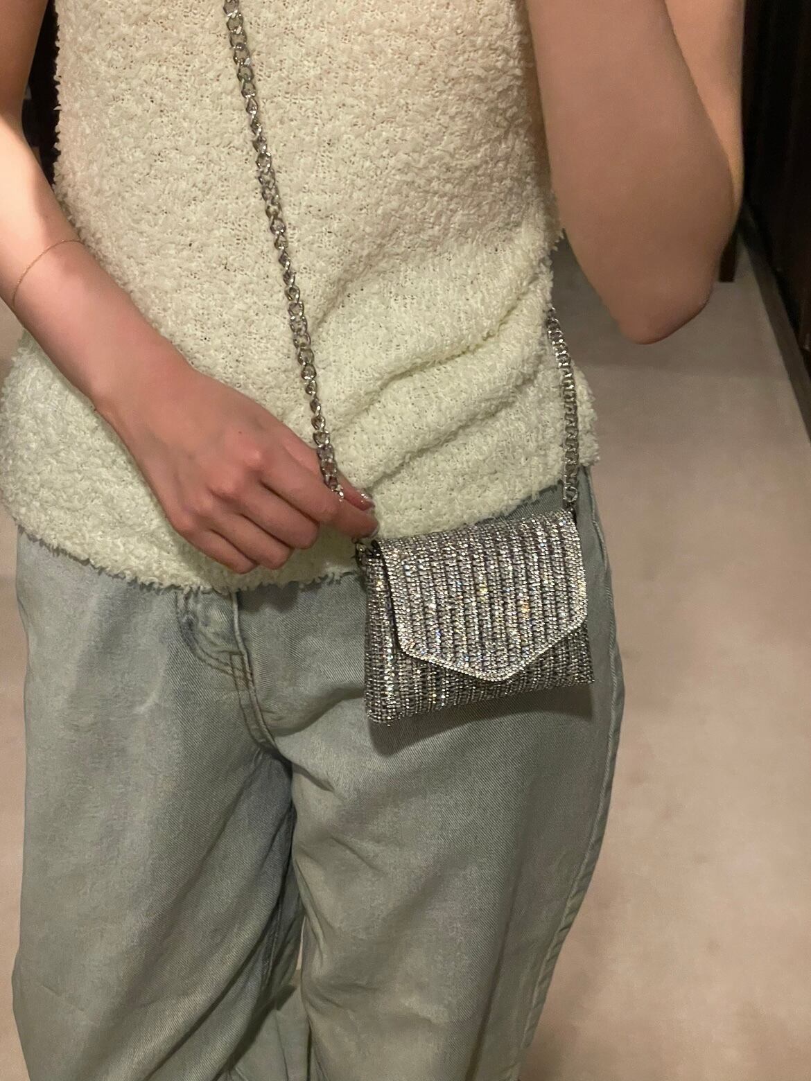 コーデのワンポイントになるキラキラバッグです。