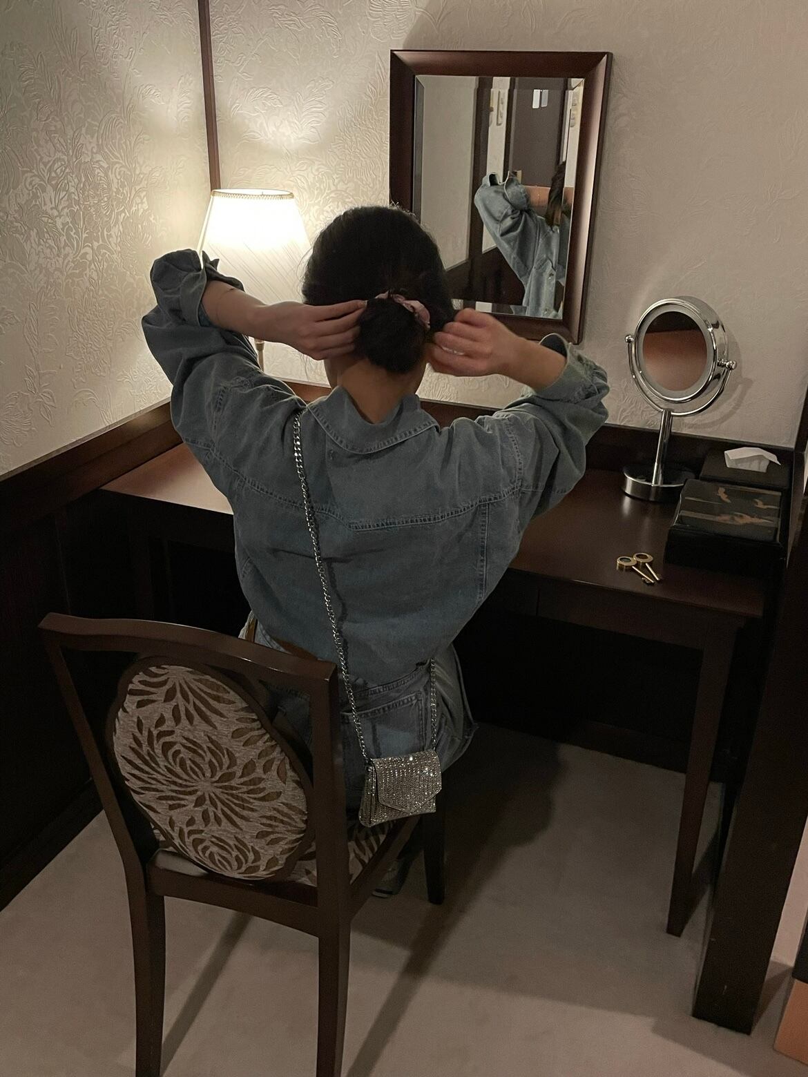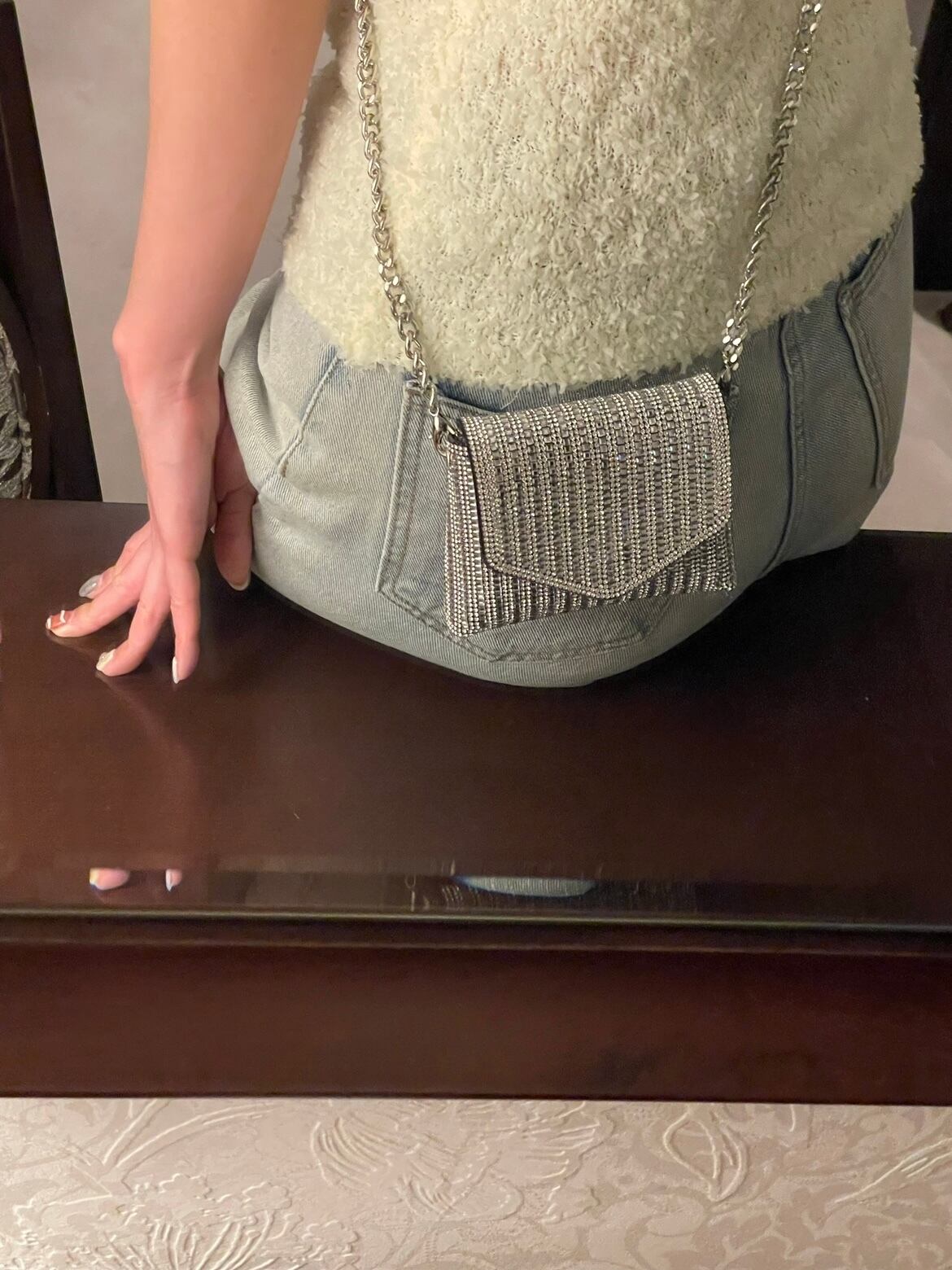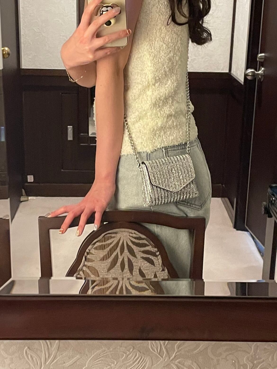 コーデのワンポイントになるキラキラバッグです。