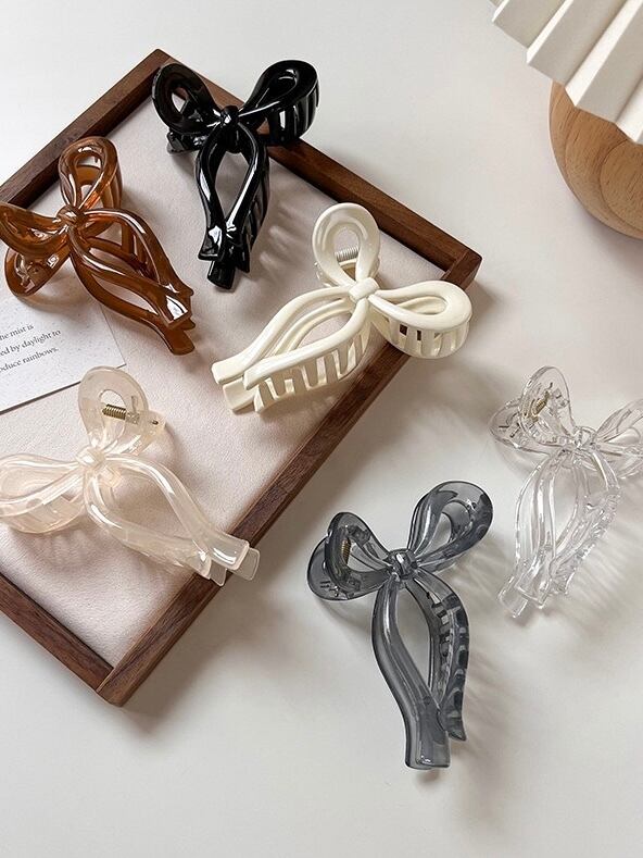 大人可愛いカラーで甘くなりすぎないリボンモチーフのヘアクリップです。
