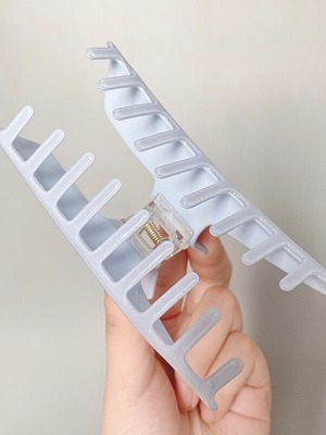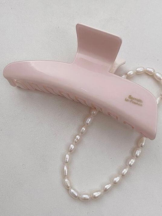 さりげないラメとロゴが可愛く、淡い色味が優しい印象を与えてくれるヘアクリップです。