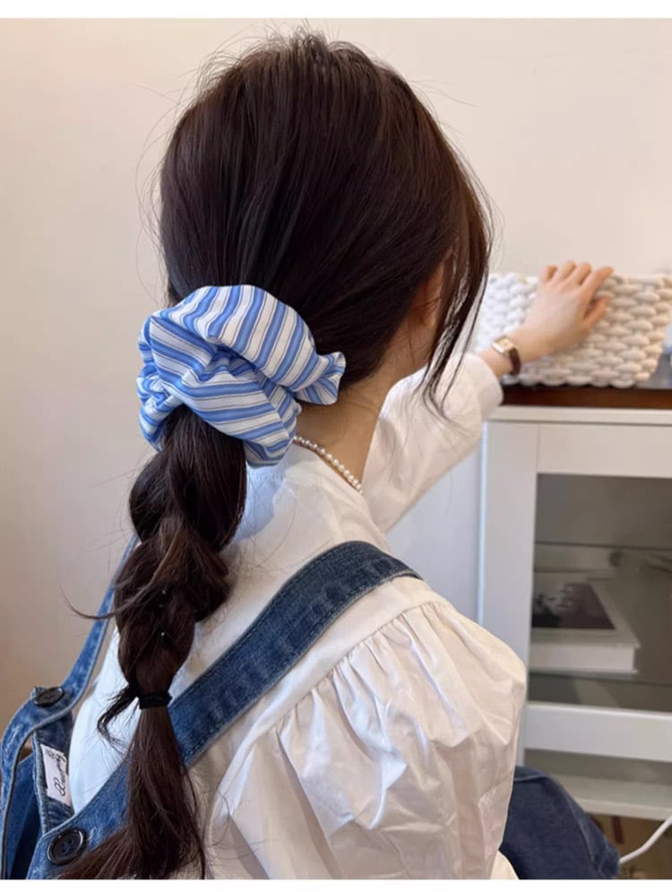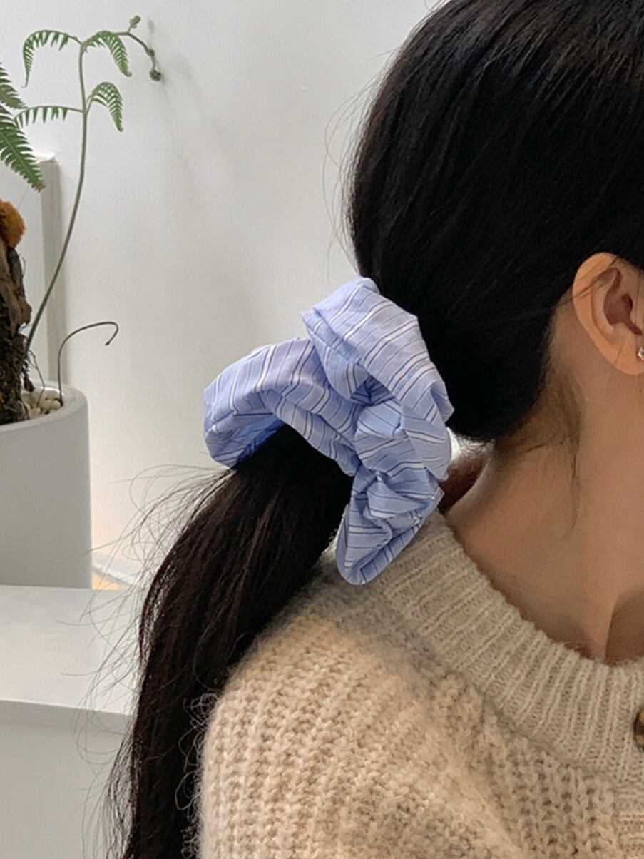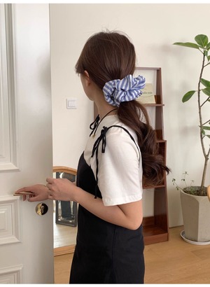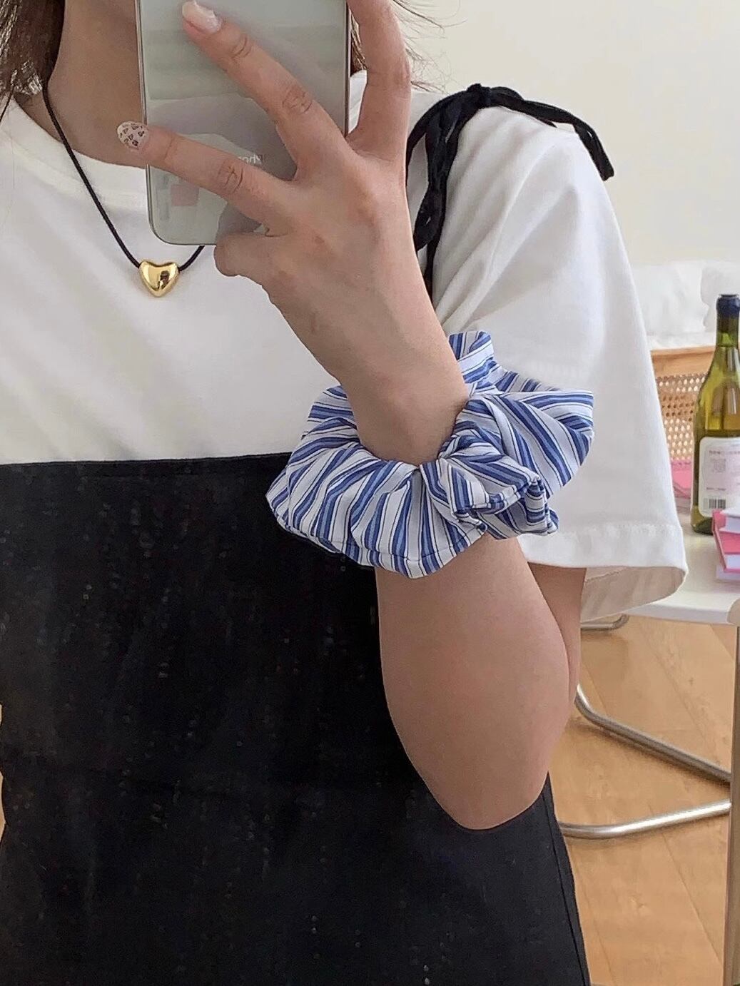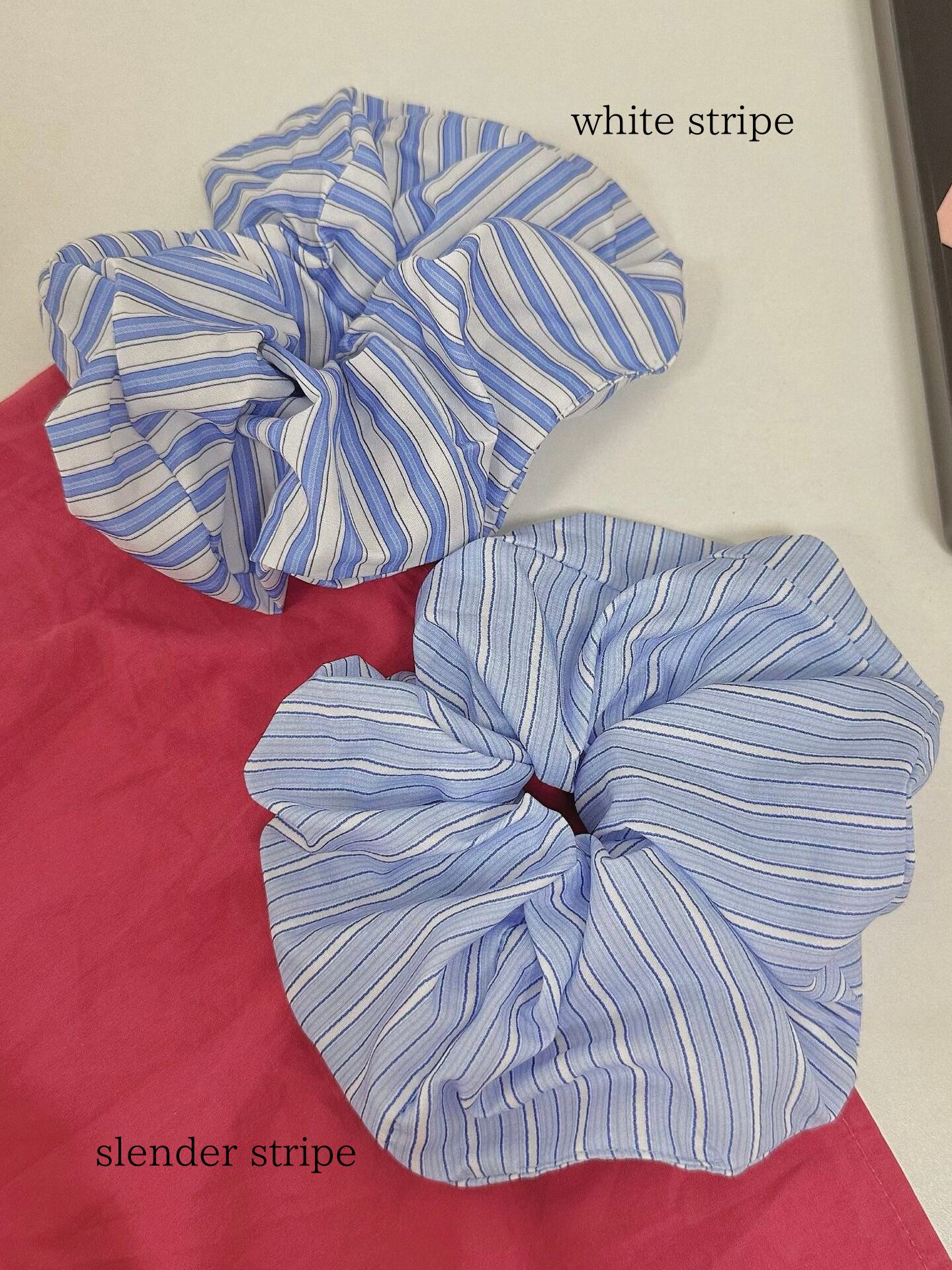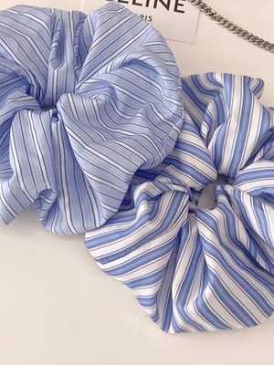 夏らしい色合いと流行りのストライプがバランスの良いシュシュです。