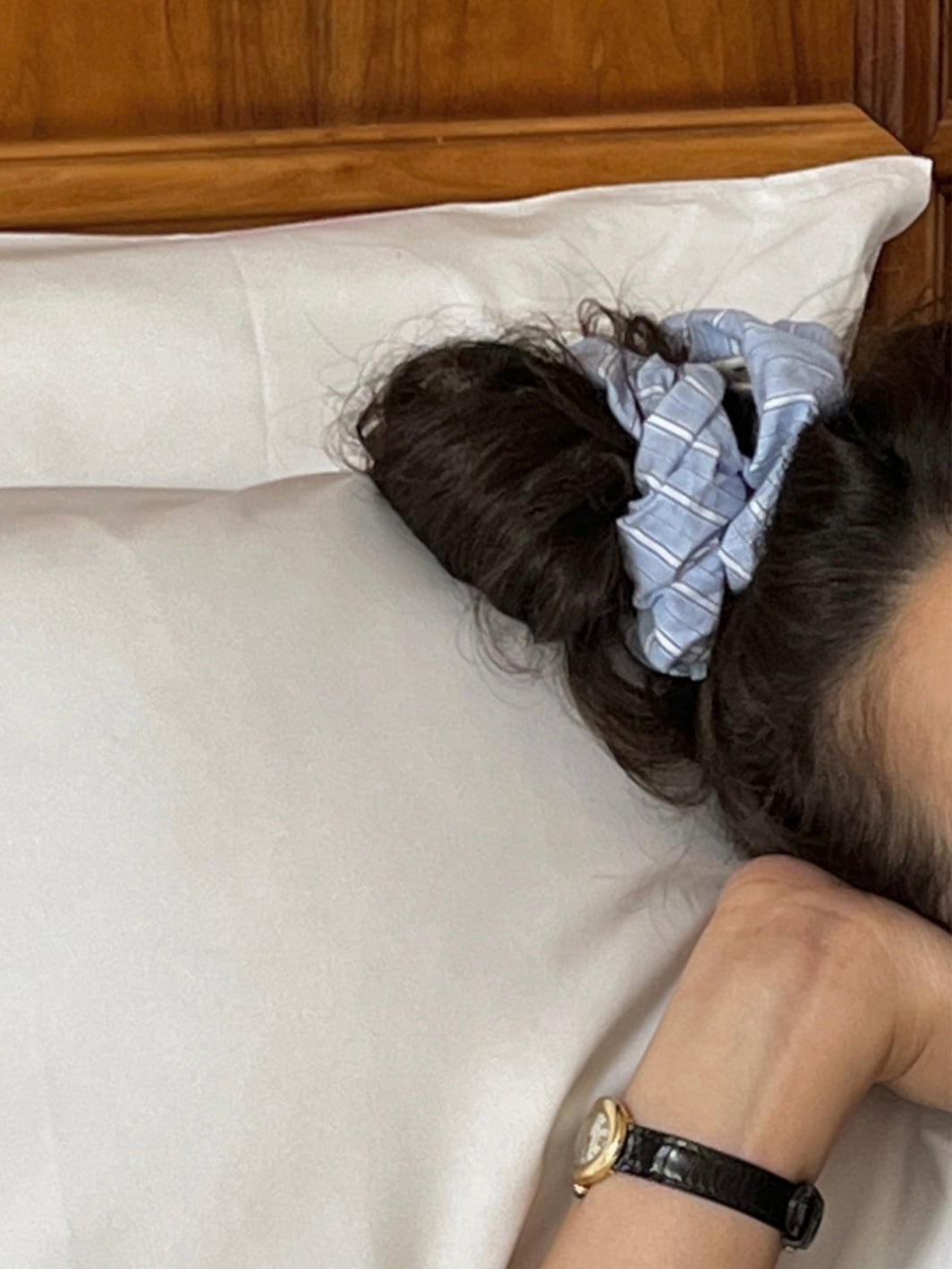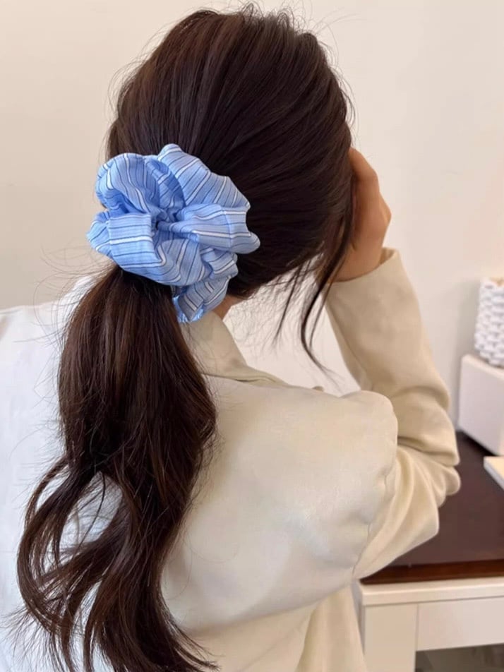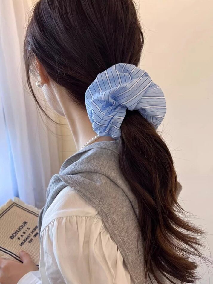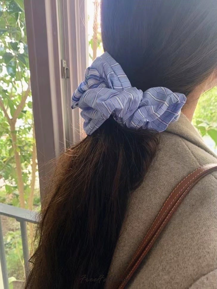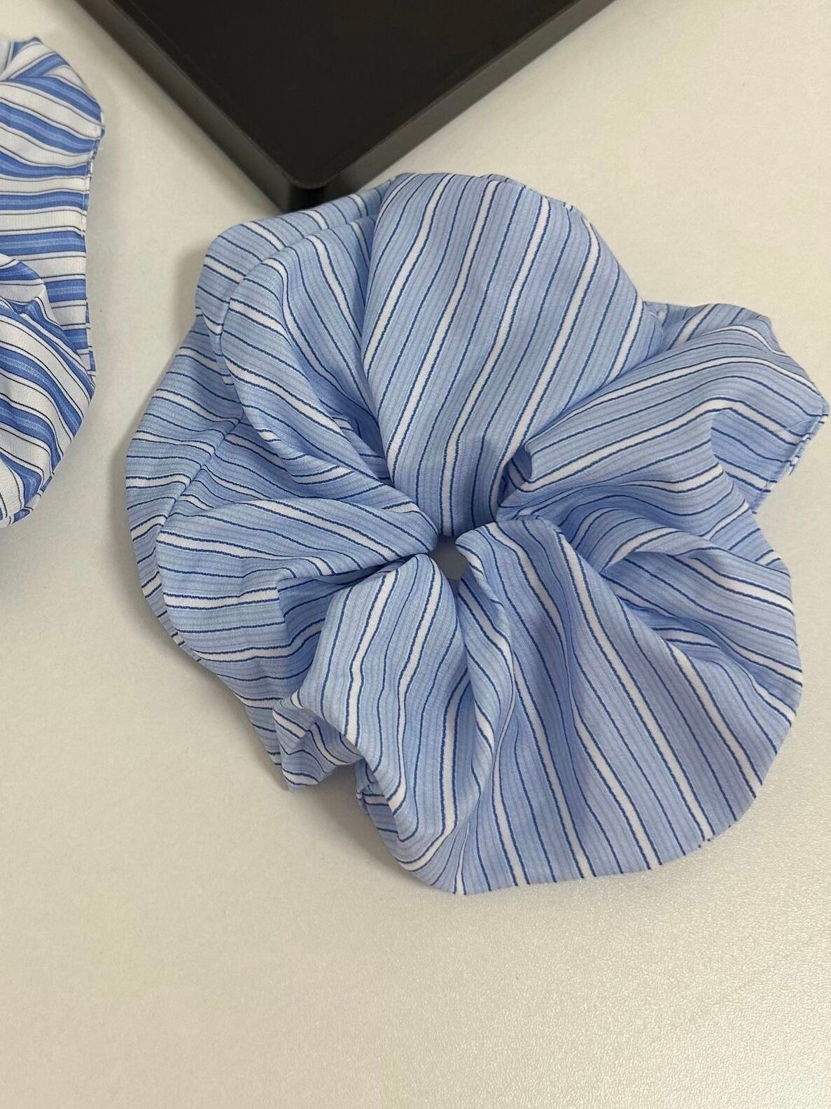 夏らしい色合いと流行りのストライプがバランスの良いシュシュです。