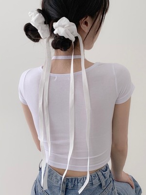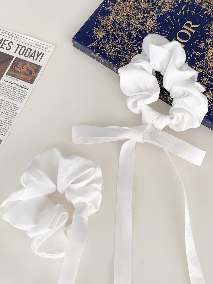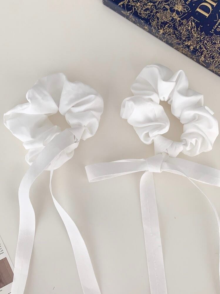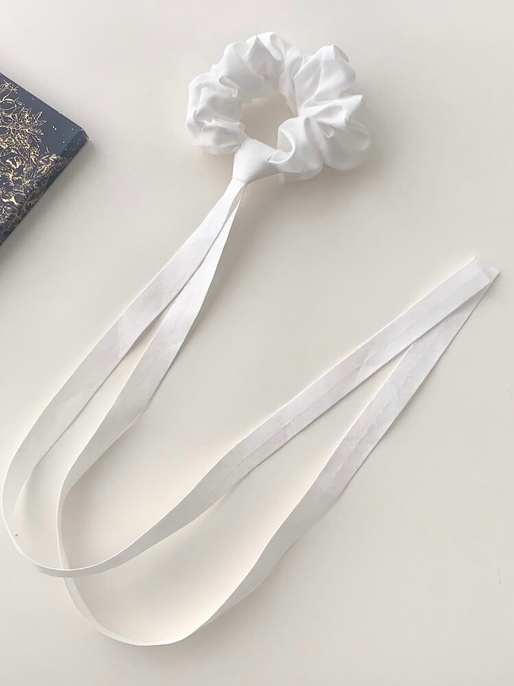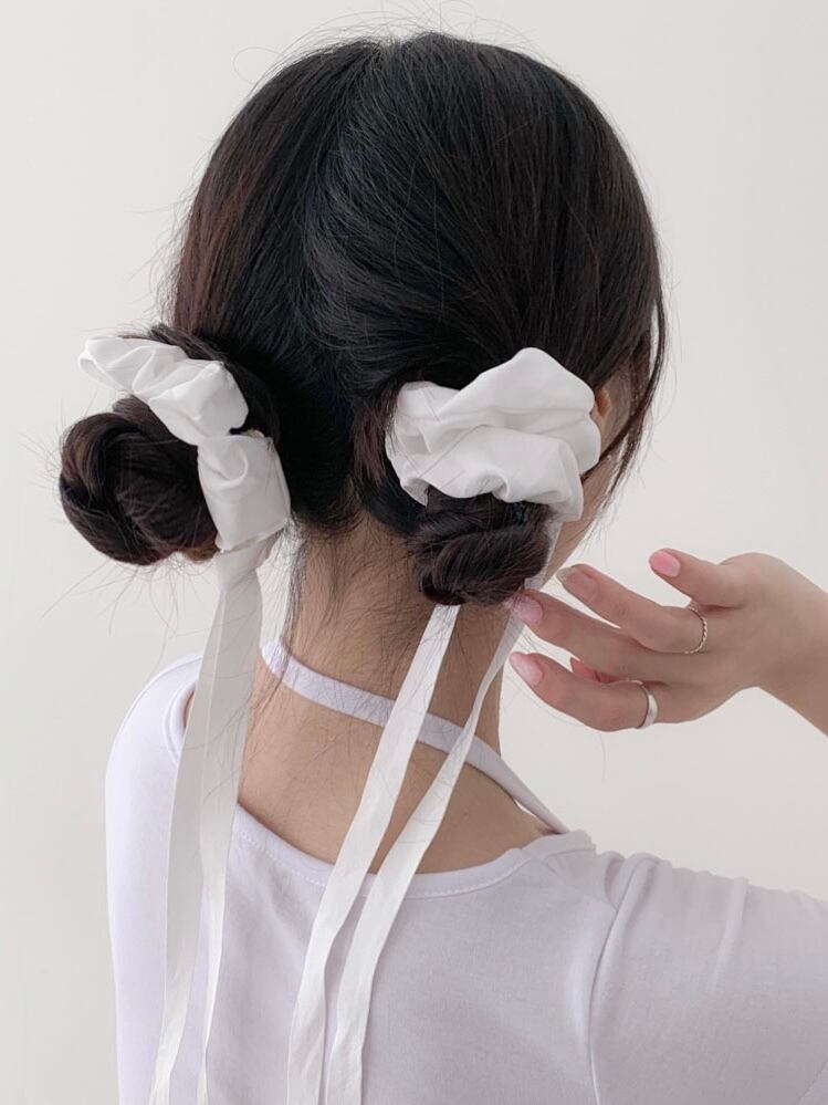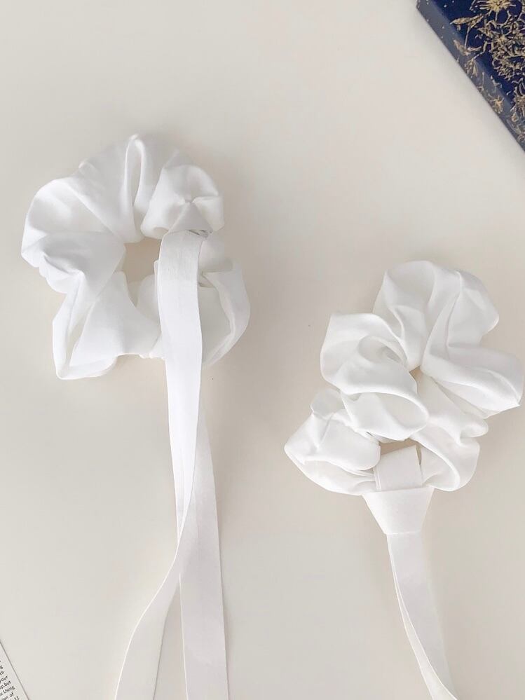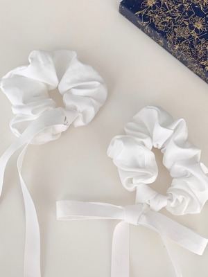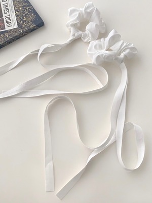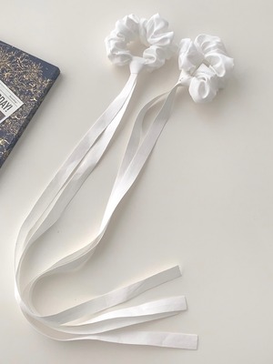 リボンがついていて様々なアレンジに使えるシュシュです。