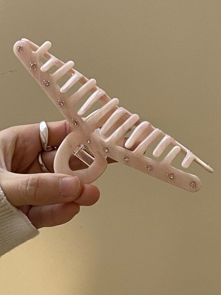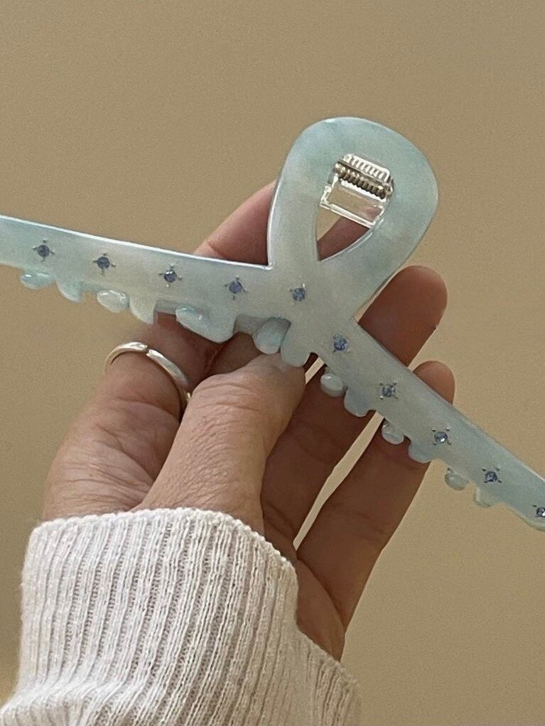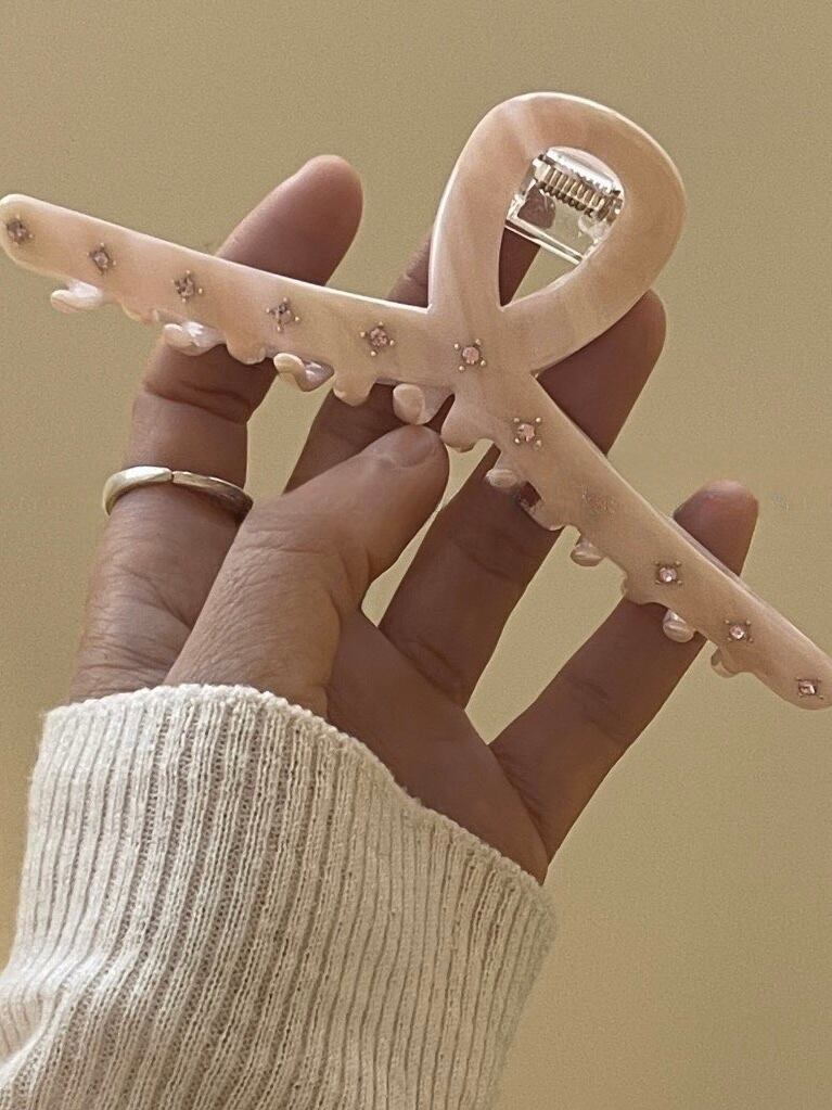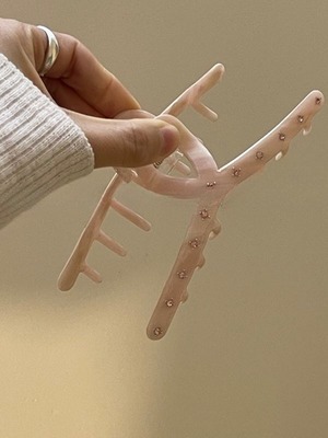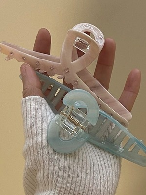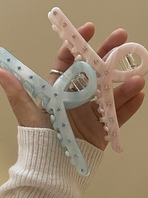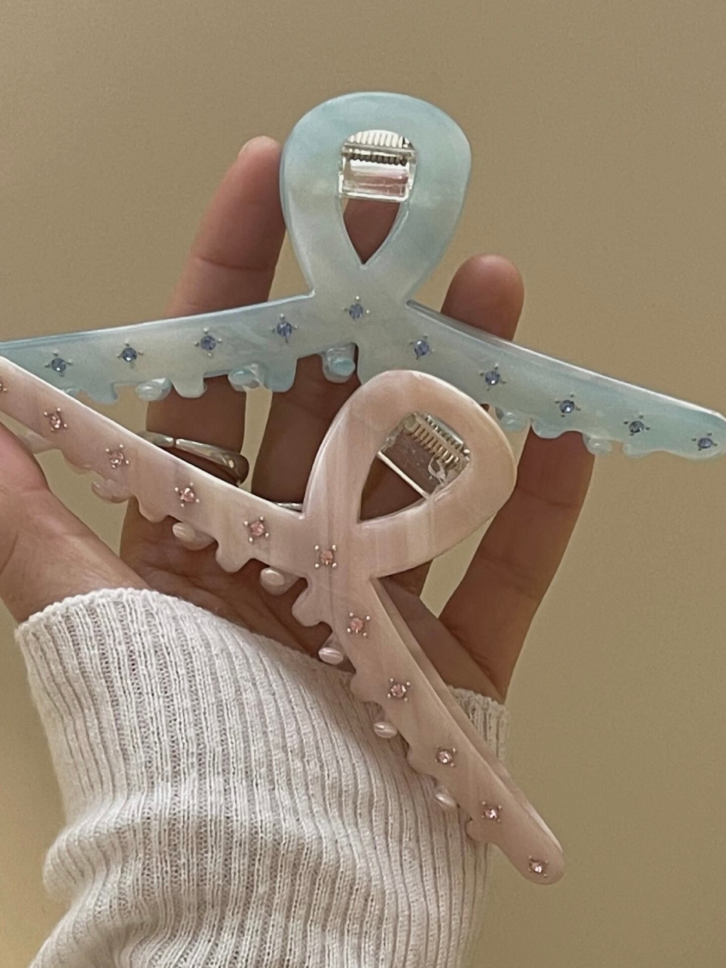 シャーベットカラーにラインストーンのデザインが夏らしいヘアクリップです。