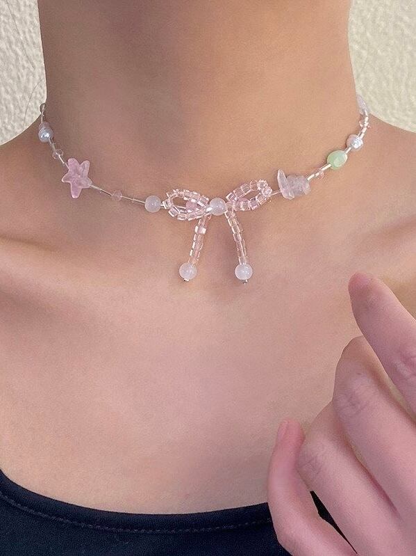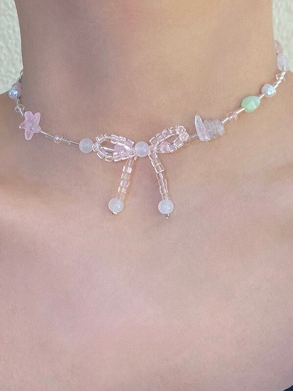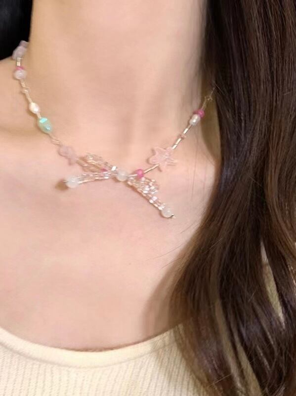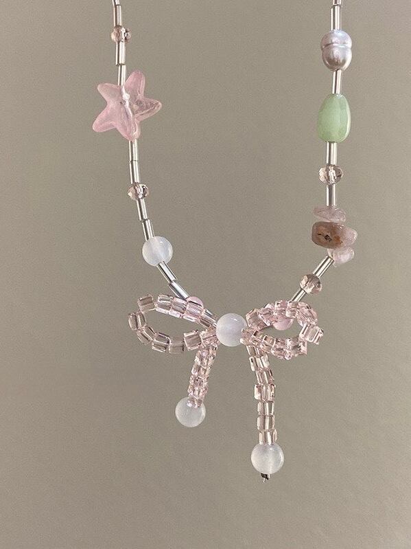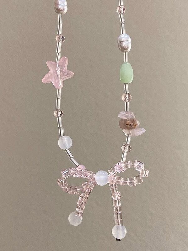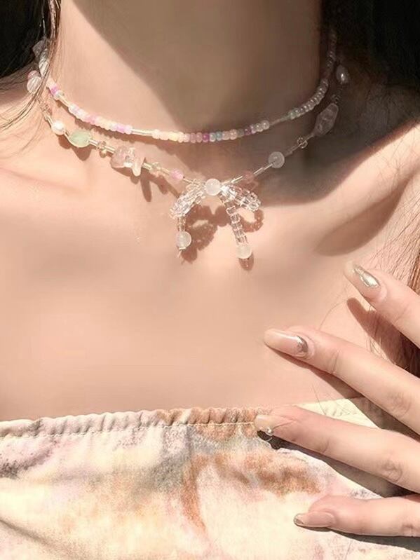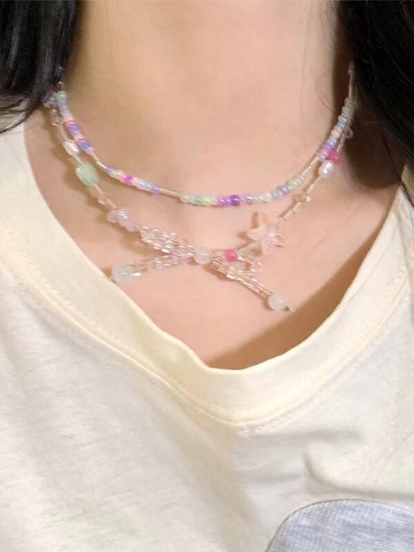 他のビーズネックレスと重ね付けをしても可愛いです。