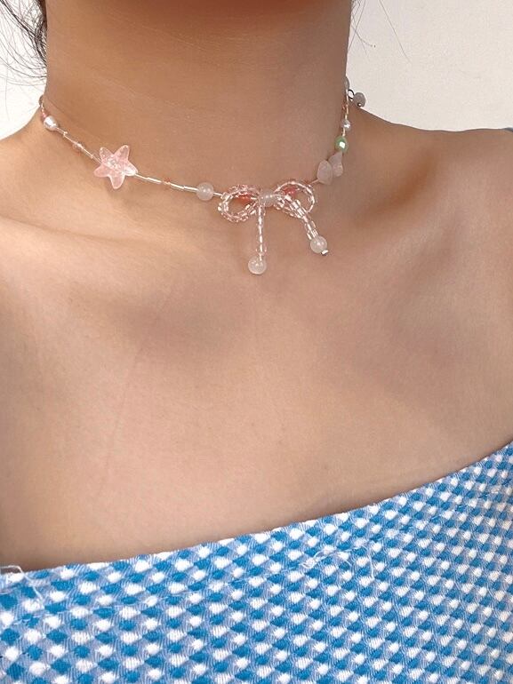 寂しくなりがちな夏の首元を明るい印象にしてくれます。