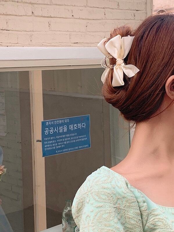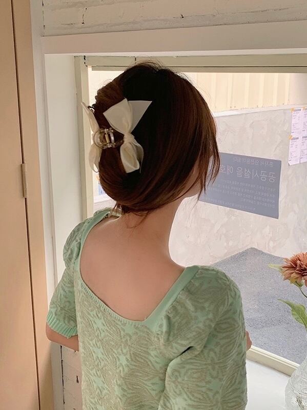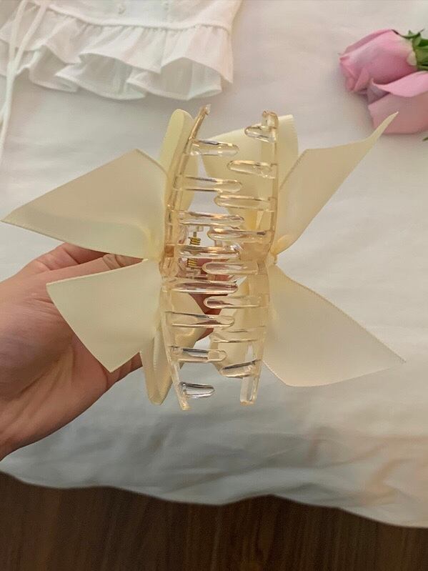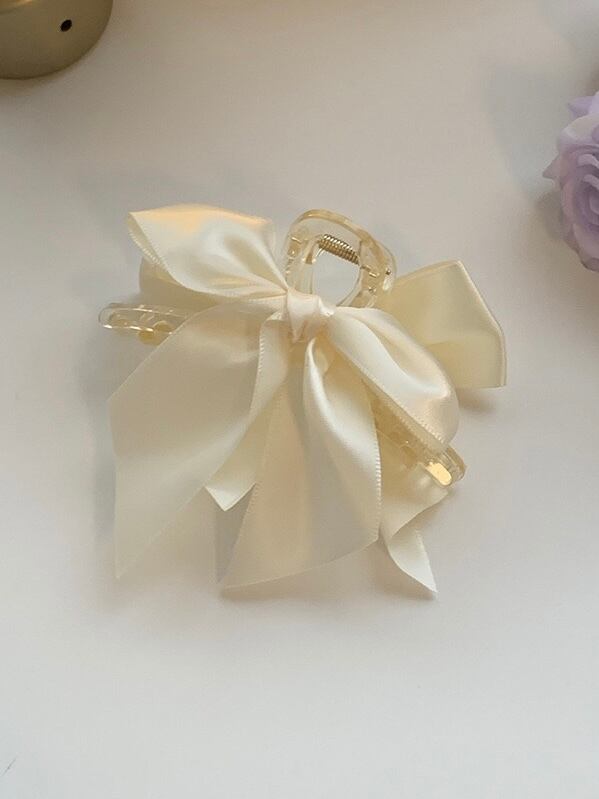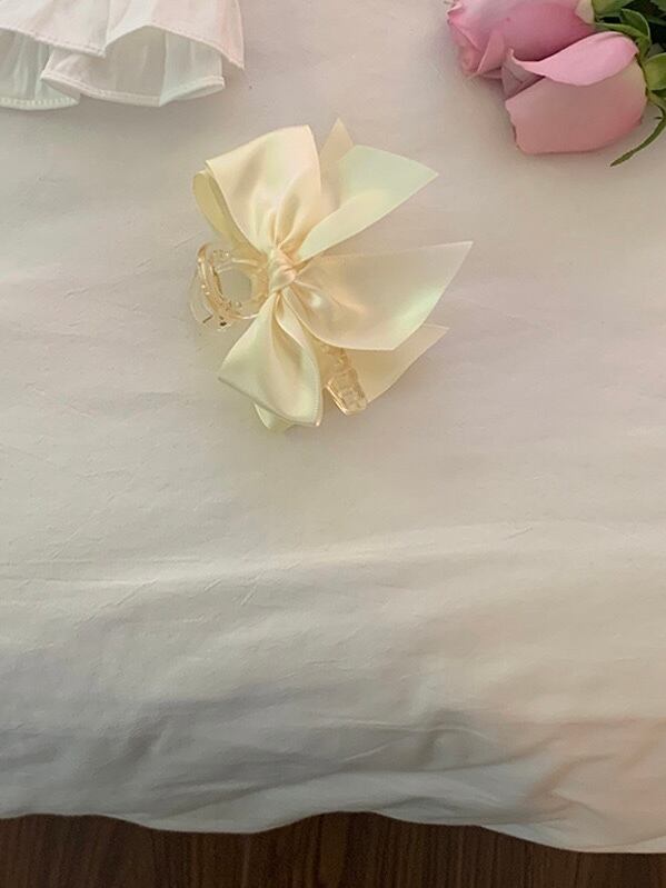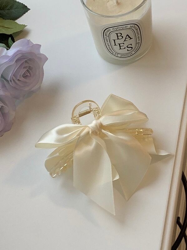 クリームカラーのサテンリボンがガーリーなヘアクリップです。