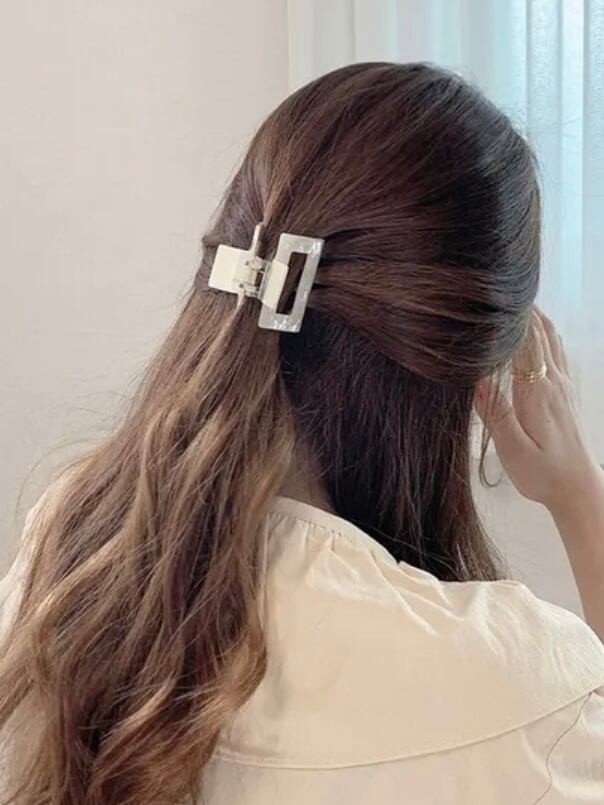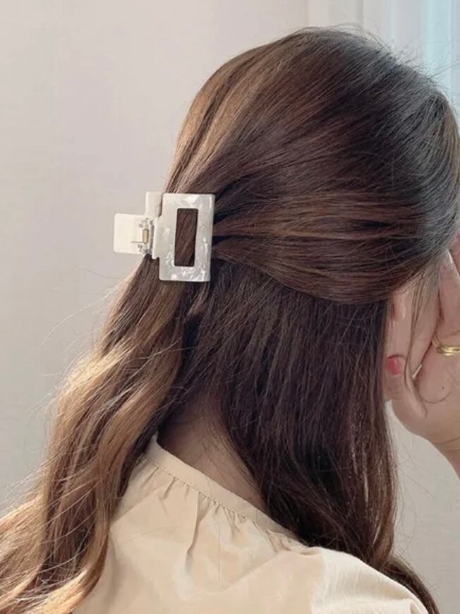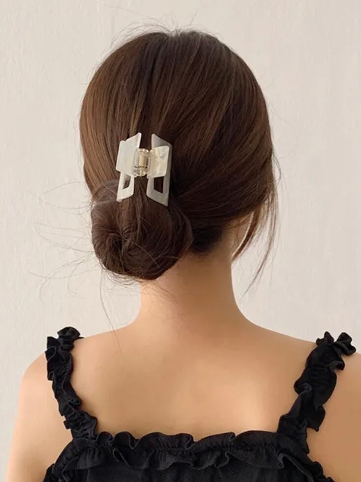 ミルキーなカラーが甘く可愛らしい印象を与えてくれるヘアクリップです。