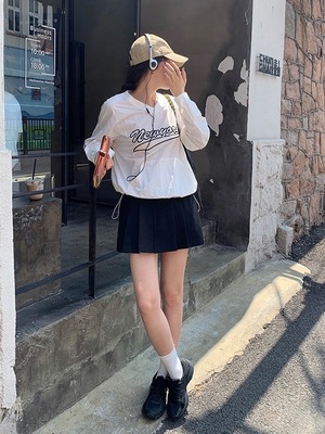 シャカシャカとした素材で、合わせ方によってカジュアルにもガーリーにも、スポーティにも演出できる万能なおしゃれアイテムです。