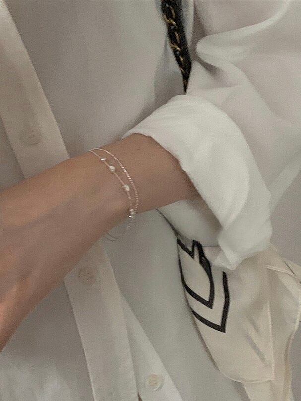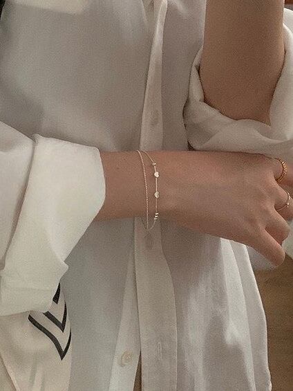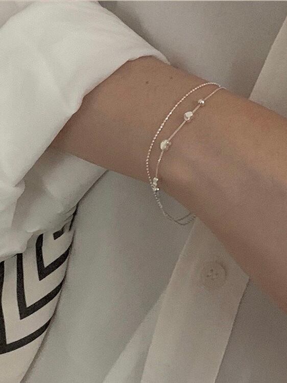 さりげないハートで甘くなりすぎない上品な2連ブレスレットです。