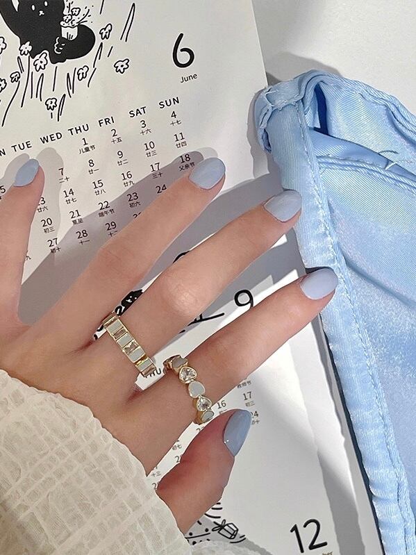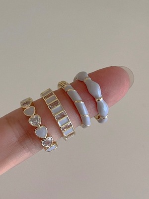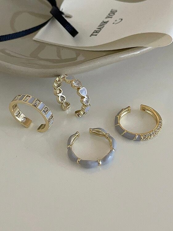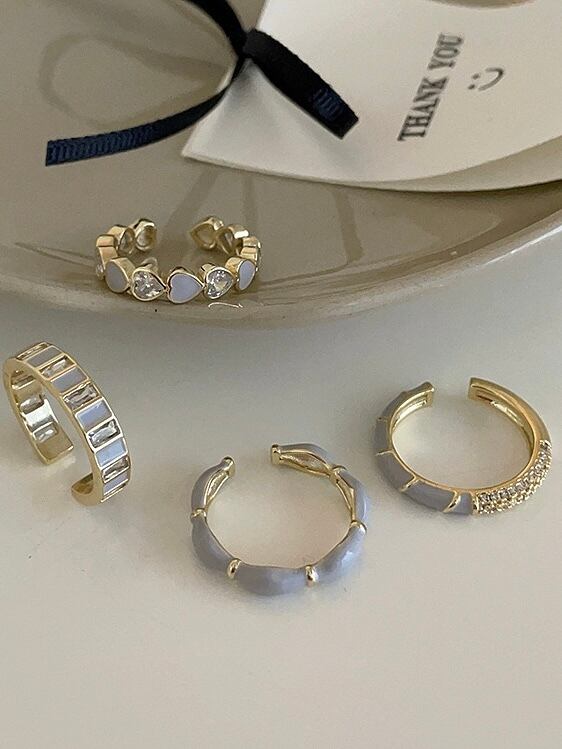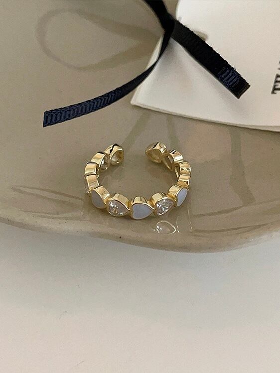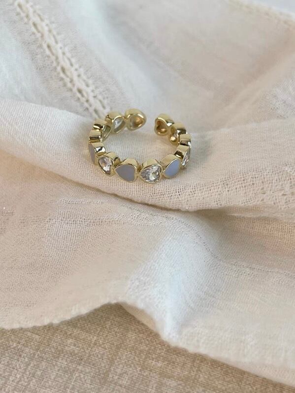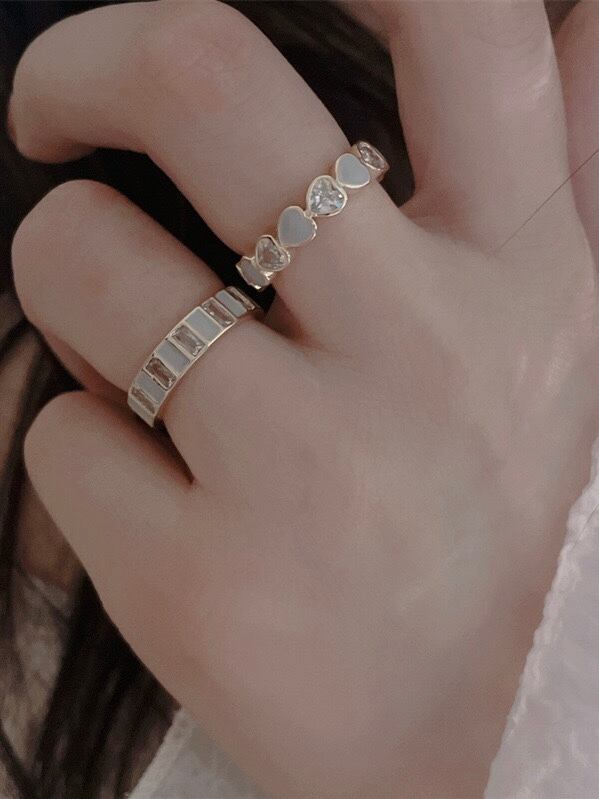 淡いブルーとシルバーのストーンのハートが連なったリングです。