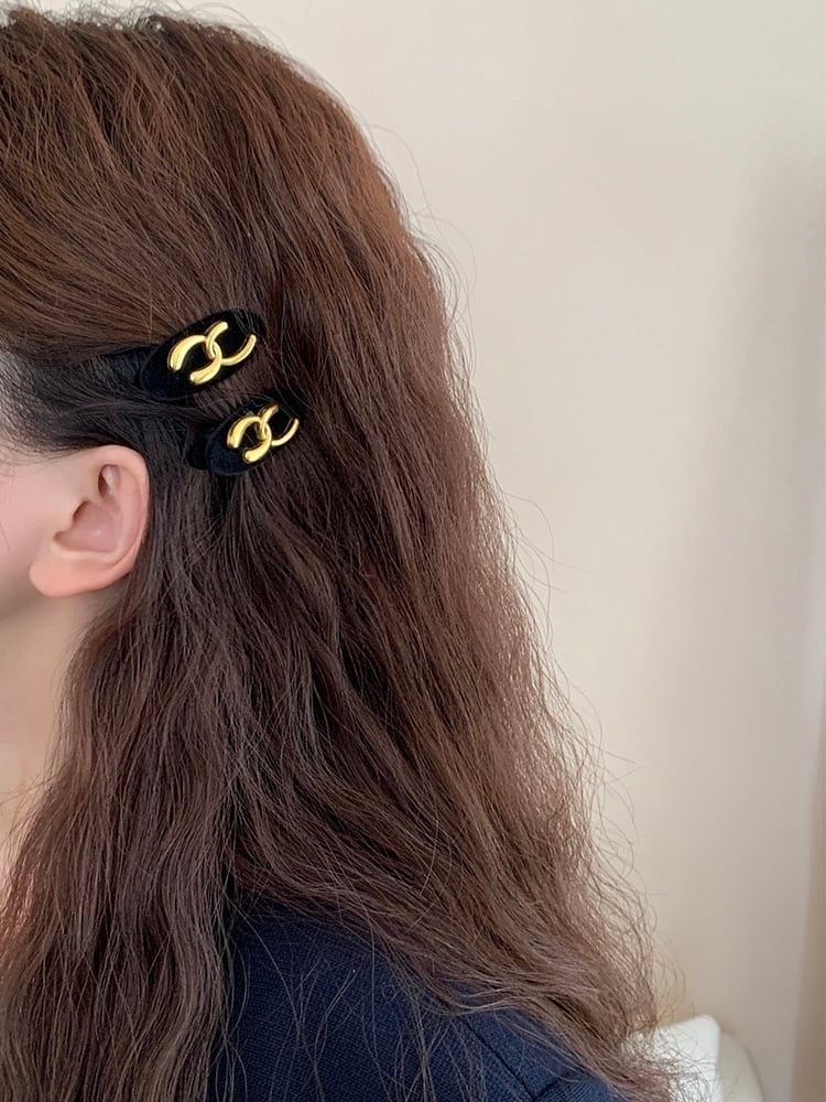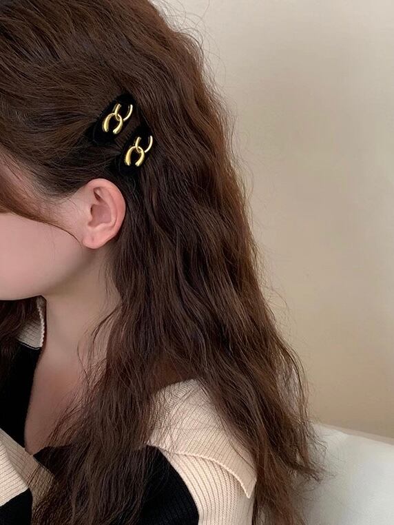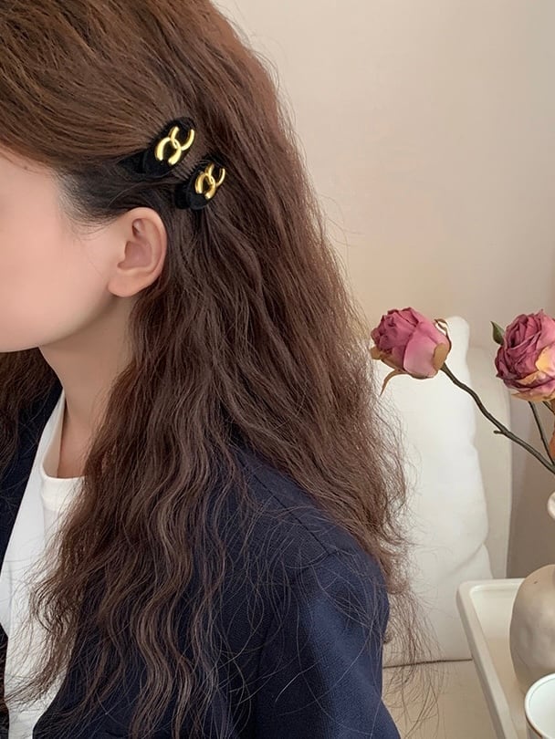 ゴールドのモチーフとベロアの組み合わせが高級感のあるヘアピンです。