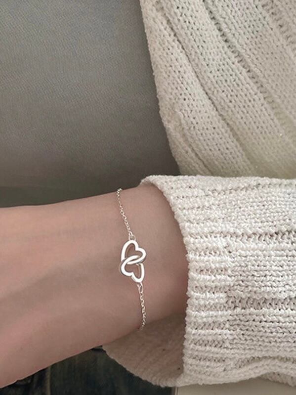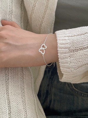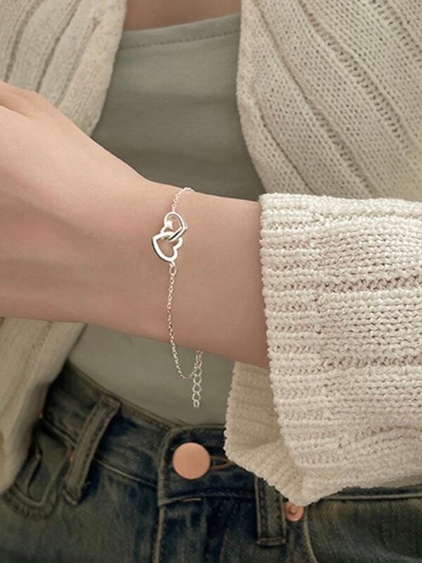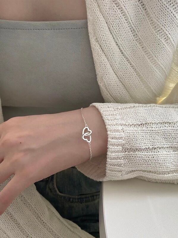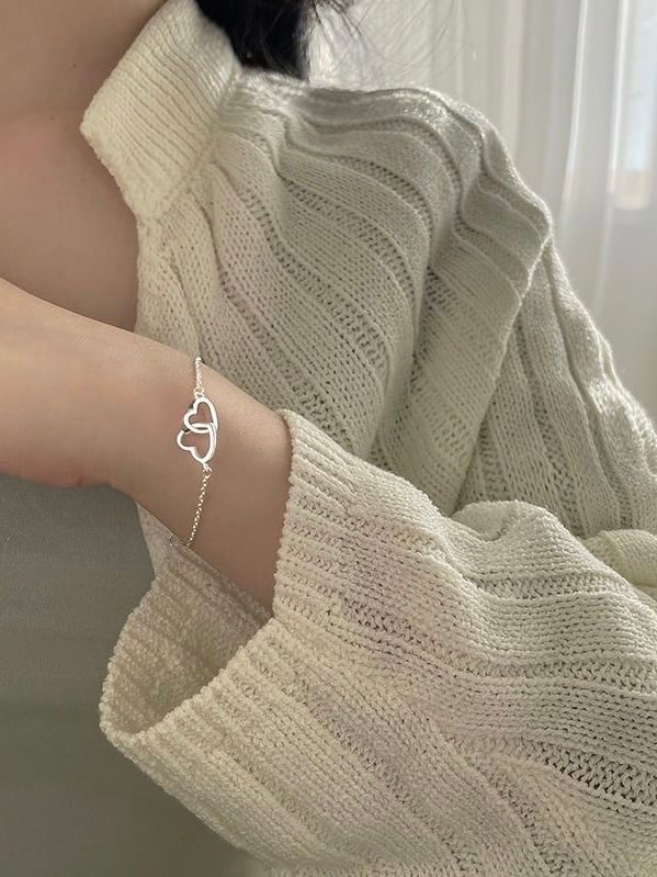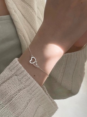 2つのハートを重ねた繊細なデザインのブレスレットです。