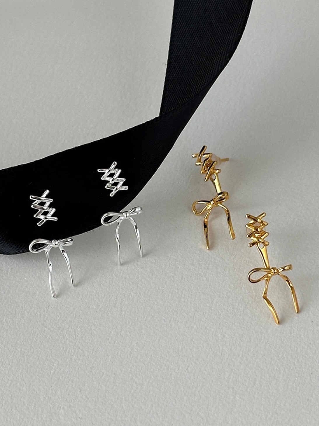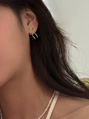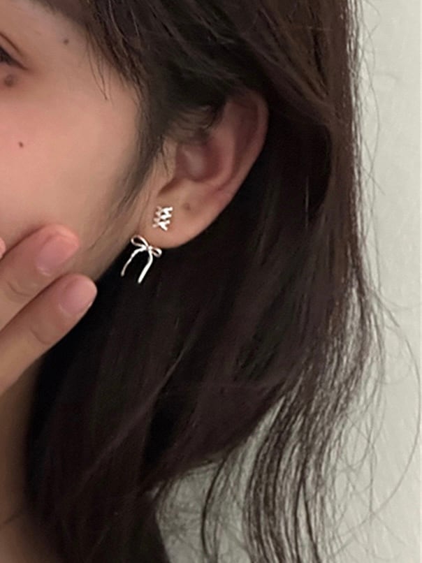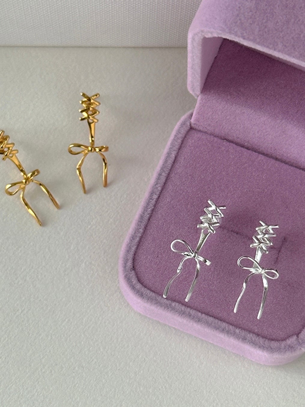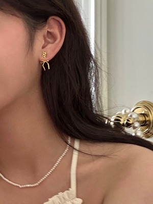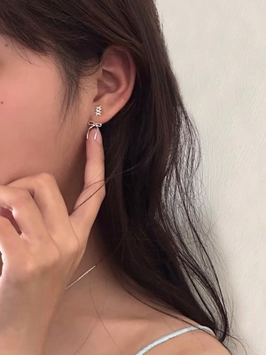 リボンが耳元から垂れているようなキュートなデザインのピアスです。
